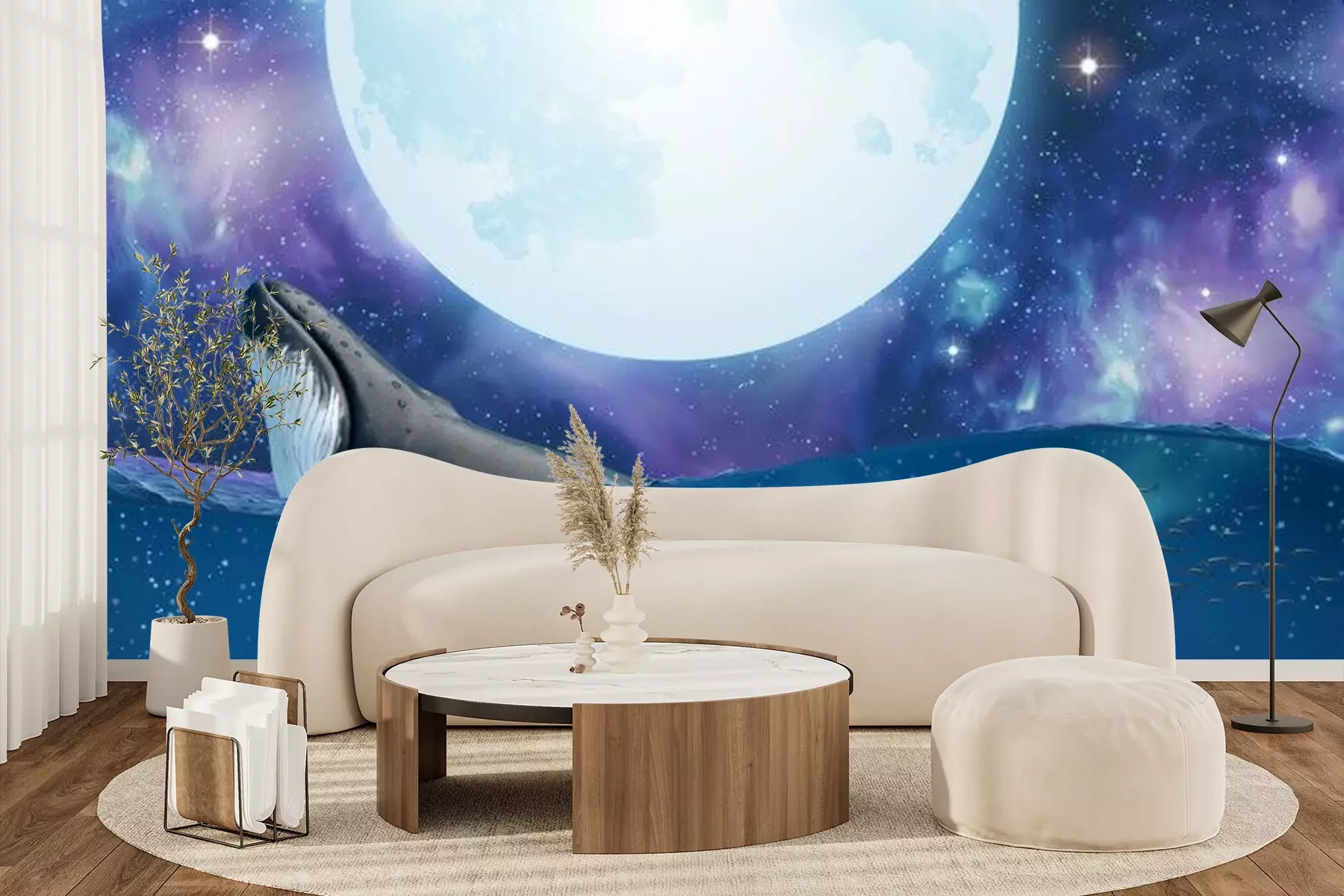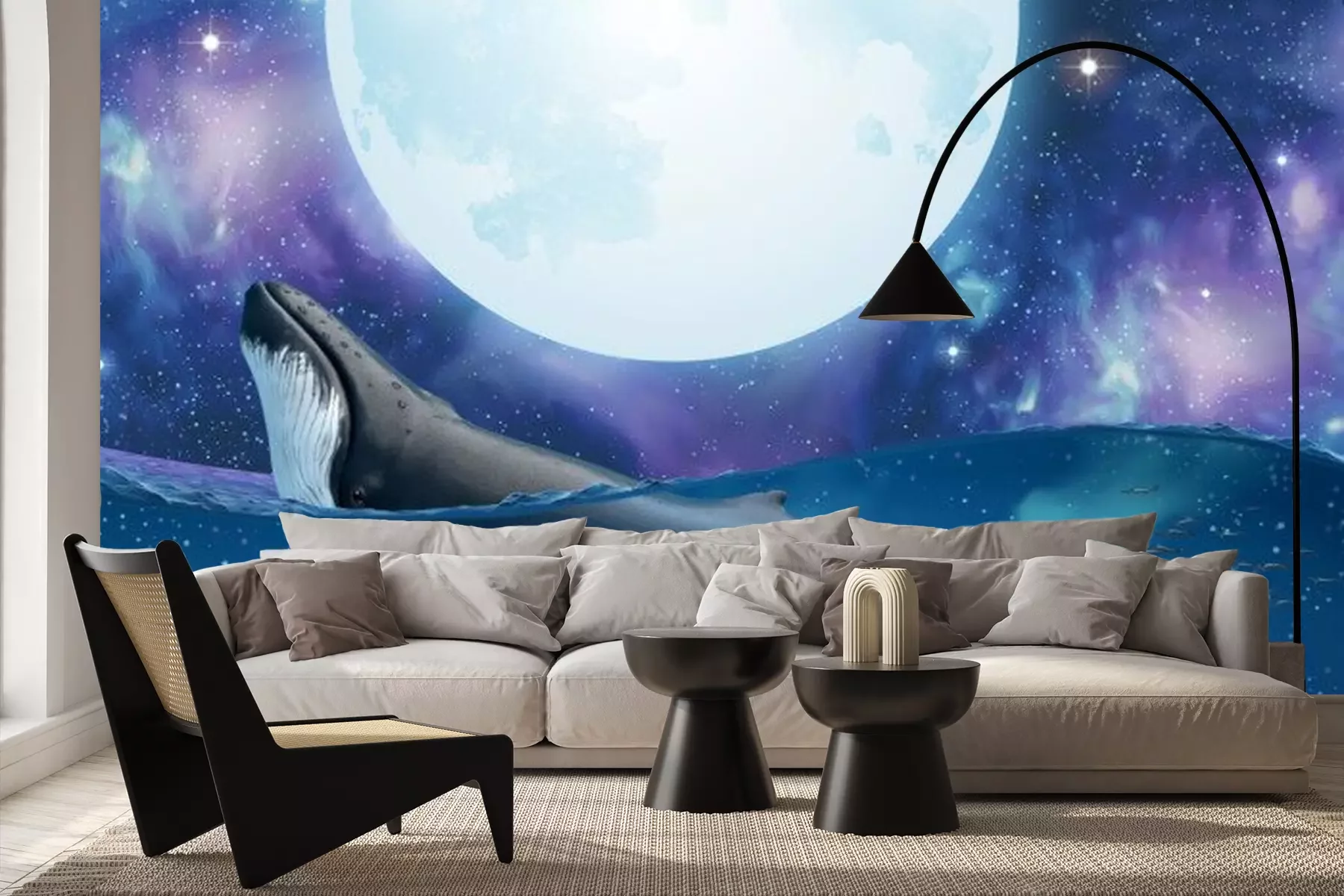 Fototapete Wal vor dem Hintergrund eines Sternenhimmels mit Vollmond