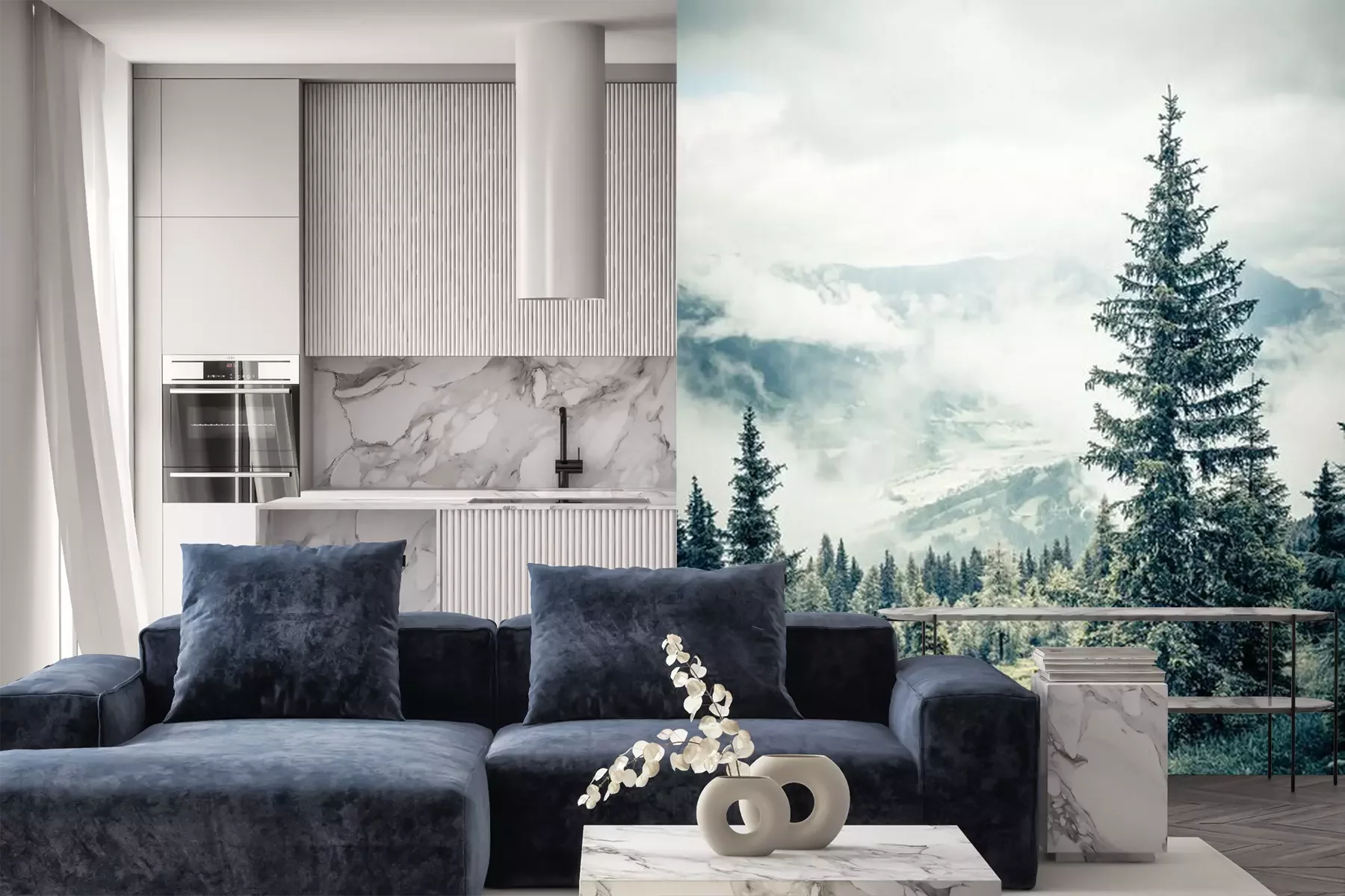 Das Material Premium+ besteht aus einer strukturierten Vinyl-Oberschicht und einem Trägermaterial (Vlies) mit einer Grammatur von 255 g/m², das kleine Unebenheiten der Wand zuverlässig kaschiert. Die feine Sandstruktur verleiht der Oberfläche eine luxuriöse Haptik, während das halbmatte Finish die Tiefe der Farben betont. Das Material ist dampfdurchlässig – so kann diese Fototapete auch in Küchen und Badezimmern eingesetzt werden. Die maximale Breite einer Tapetenbahn beträgt 100 cm. Bei größeren Abmessungen besteht die Fototapete aus mehreren gleich großen Bahnen. Der Kleber wird direkt auf die Wand aufgetragen, und die Fototapete wird auf Stoß angebracht, was für einen ästhetischen Effekt ohne sichtbare Fugen sorgt. Die Oberfläche ist pflegeleicht und kann bei Bedarf sanft mit einem feuchten Tuch abgewischt werden.