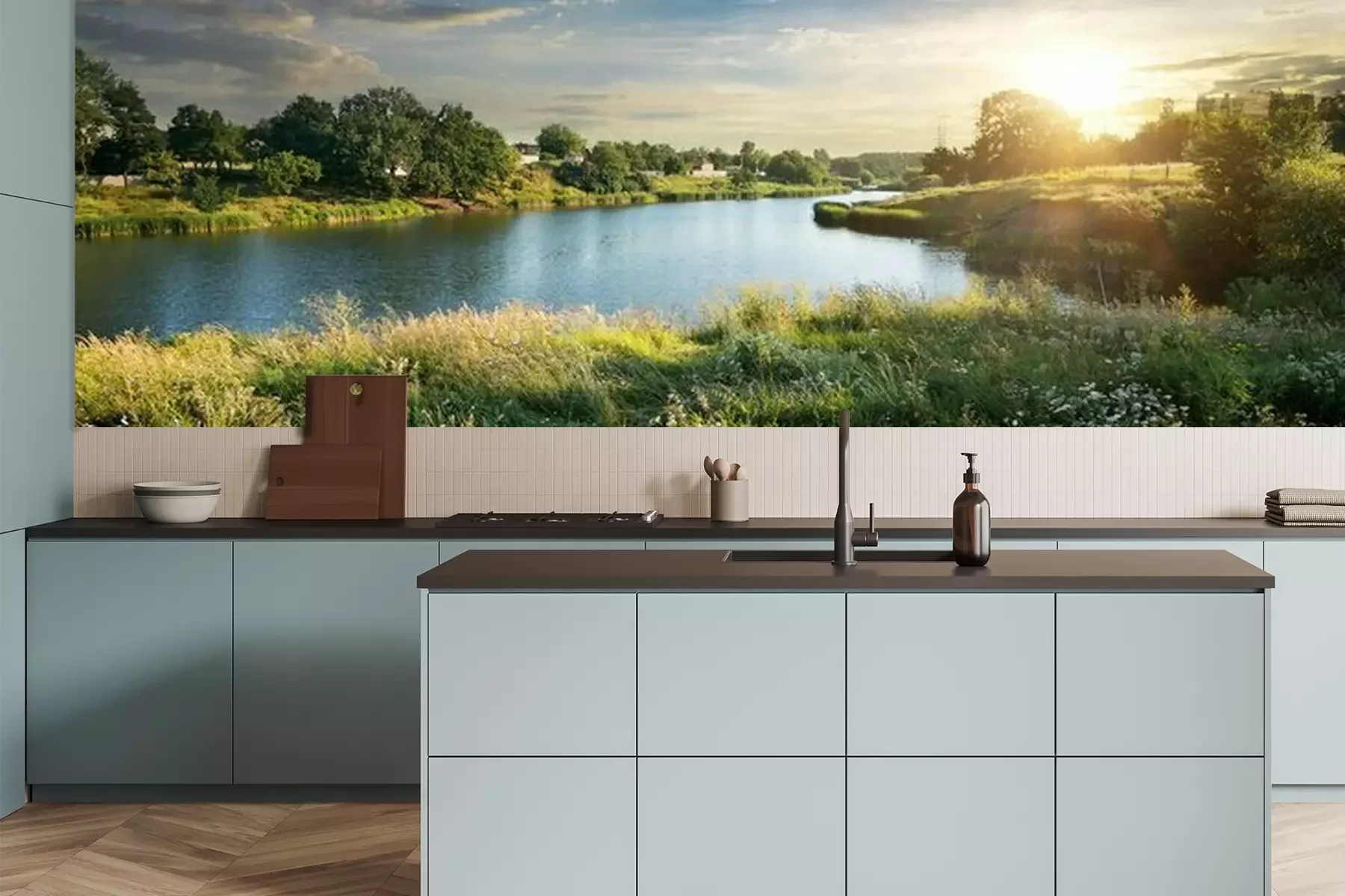 Flusslandschaft an einem sonnigen TagProblemlose Lieferung durch vertrauenswürdige Spediteure