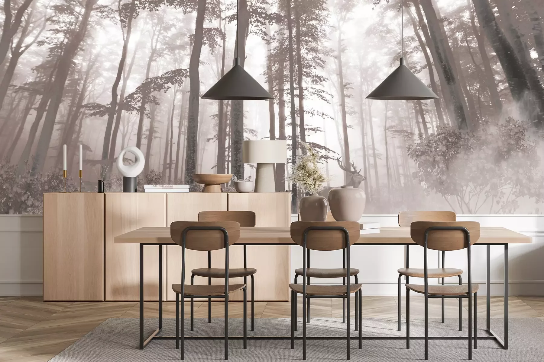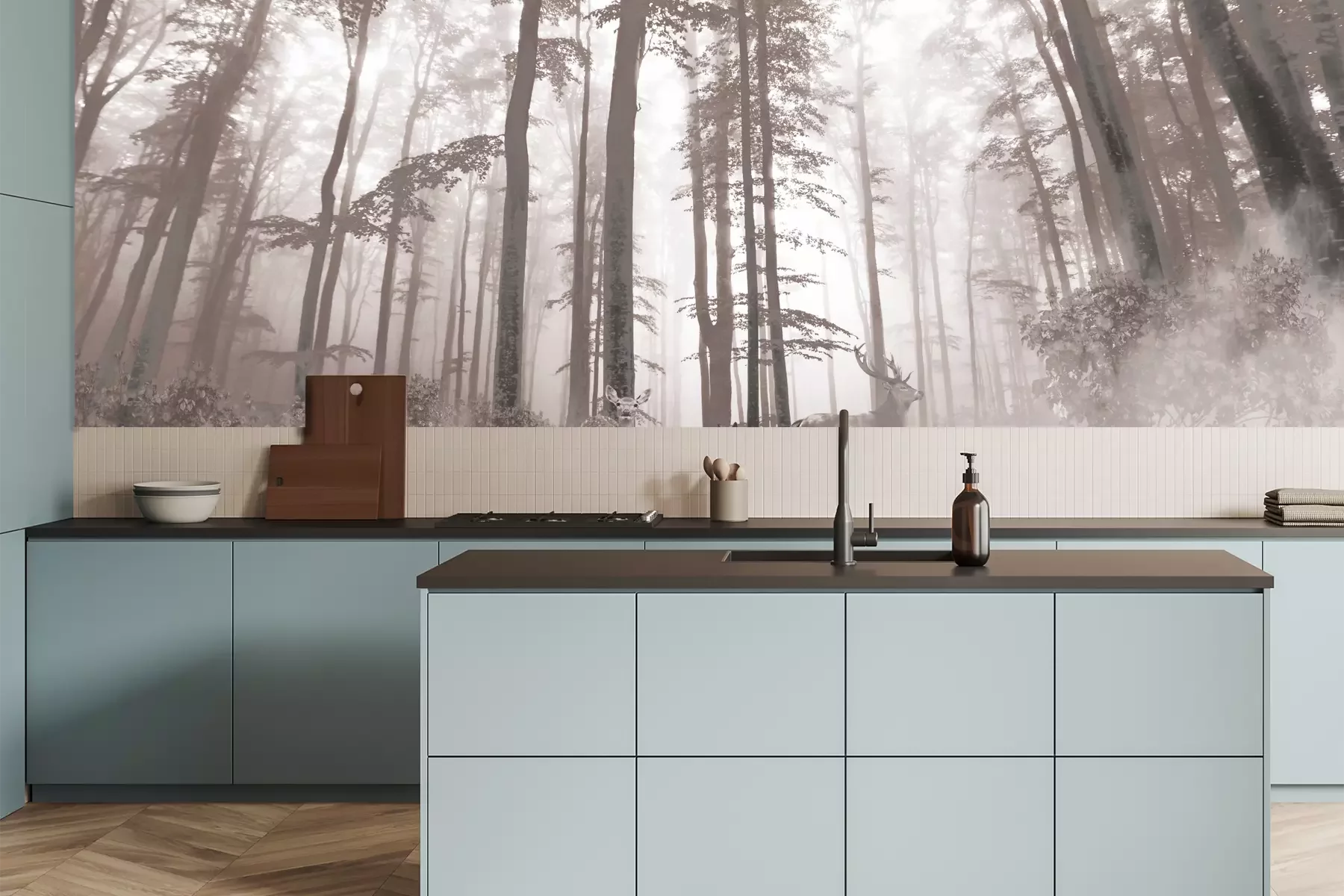Das Material Premium+ besteht aus einer strukturierten Vinyl-Oberschicht und einem Trägermaterial (Vlies) mit einer Grammatur von 255 g/m², das kleine Unebenheiten der Wand zuverlässig kaschiert. Die feine Sandstruktur verleiht der Oberfläche eine luxuriöse Haptik, während das halbmatte Finish die Tiefe der Farben betont. Das Material ist dampfdurchlässig – so kann diese Fototapete auch in Küchen und Badezimmern eingesetzt werden. Die maximale Breite einer Tapetenbahn beträgt 100 cm. Bei größeren Abmessungen besteht die Fototapete aus mehreren gleich großen Bahnen. Der Kleber wird direkt auf die Wand aufgetragen, und die Fototapete wird auf Stoß angebracht, was für einen ästhetischen Effekt ohne sichtbare Fugen sorgt. Die Oberfläche ist pflegeleicht und kann bei Bedarf sanft mit einem feuchten Tuch abgewischt werden.