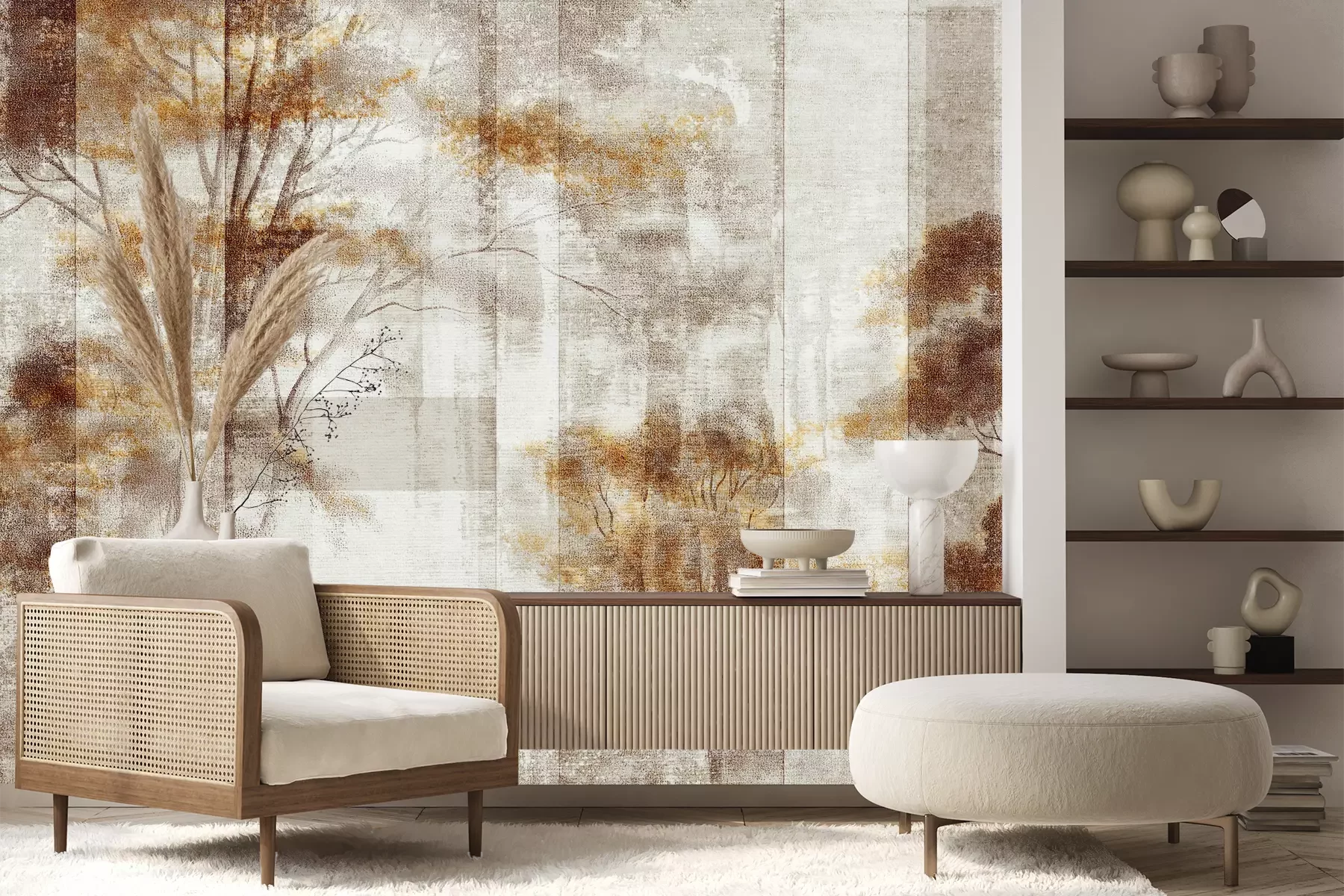 Das Material Premium+ besteht aus einer strukturierten Vinyl-Oberschicht und einem Trägermaterial (Vlies) mit einer Grammatur von 255 g/m², das kleine Unebenheiten der Wand zuverlässig kaschiert. Die feine Sandstruktur verleiht der Oberfläche eine luxuriöse Haptik, während das halbmatte Finish die Tiefe der Farben betont. Das Material ist dampfdurchlässig – so kann diese Fototapete auch in Küchen und Badezimmern eingesetzt werden. Die maximale Breite einer Tapetenbahn beträgt 100 cm. Bei größeren Abmessungen besteht die Fototapete aus mehreren gleich großen Bahnen. Der Kleber wird direkt auf die Wand aufgetragen, und die Fototapete wird auf Stoß angebracht, was für einen ästhetischen Effekt ohne sichtbare Fugen sorgt. Die Oberfläche ist pflegeleicht und kann bei Bedarf sanft mit einem feuchten Tuch abgewischt werden.