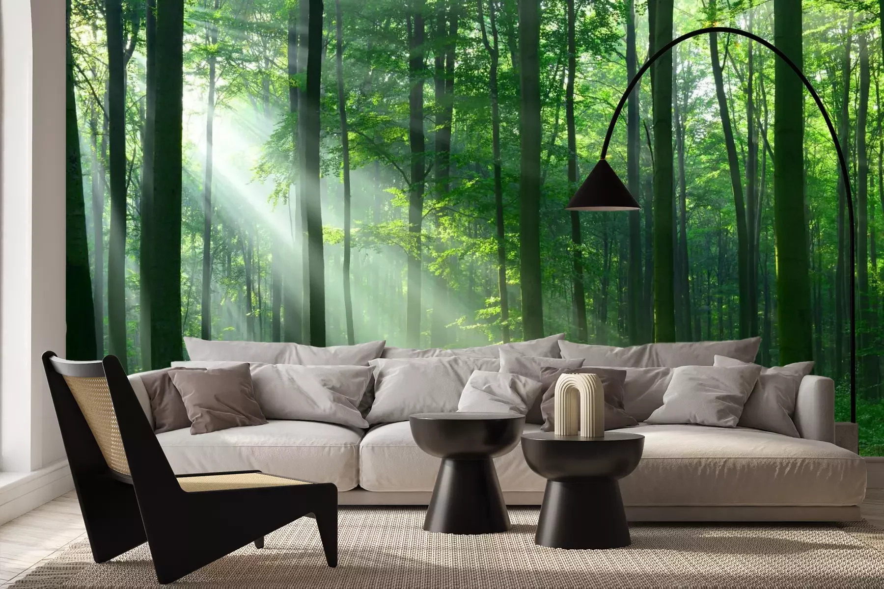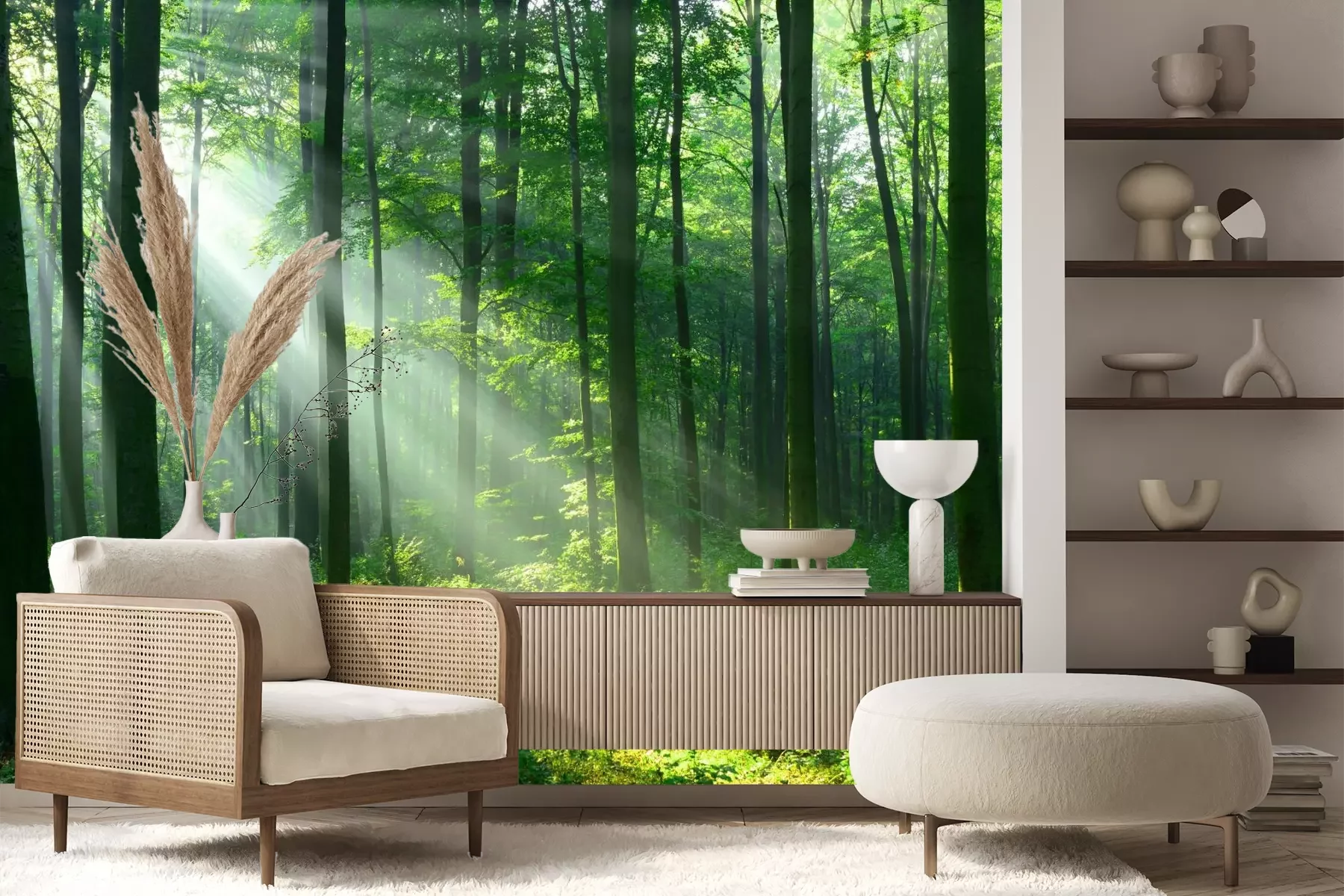 Das Material Premium+ besteht aus einer strukturierten Vinyl-Oberschicht und einem Trägermaterial (Vlies) mit einer Grammatur von 255 g/m², das kleine Unebenheiten der Wand zuverlässig kaschiert. Die feine Sandstruktur verleiht der Oberfläche eine luxuriöse Haptik, während das halbmatte Finish die Tiefe der Farben betont. Das Material ist dampfdurchlässig – so kann diese Fototapete auch in Küchen und Badezimmern eingesetzt werden. Die maximale Breite einer Tapetenbahn beträgt 100 cm. Bei größeren Abmessungen besteht die Fototapete aus mehreren gleich großen Bahnen. Der Kleber wird direkt auf die Wand aufgetragen, und die Fototapete wird auf Stoß angebracht, was für einen ästhetischen Effekt ohne sichtbare Fugen sorgt. Die Oberfläche ist pflegeleicht und kann bei Bedarf sanft mit einem feuchten Tuch abgewischt werden.