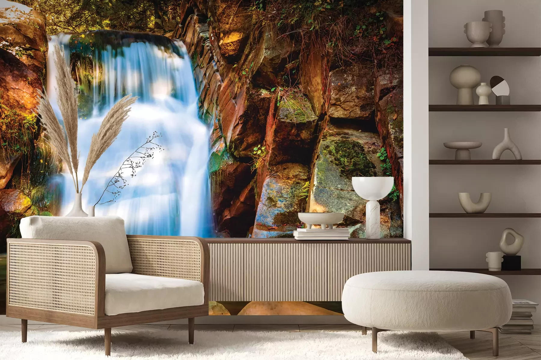 Das Material Premium+ besteht aus einer strukturierten Vinyl-Oberschicht und einem Trägermaterial (Vlies) mit einer Grammatur von 255 g/m², das kleine Unebenheiten der Wand zuverlässig kaschiert. Die feine Sandstruktur verleiht der Oberfläche eine luxuriöse Haptik, während das halbmatte Finish die Tiefe der Farben betont. Das Material ist dampfdurchlässig – so kann diese Fototapete auch in Küchen und Badezimmern eingesetzt werden. Die maximale Breite einer Tapetenbahn beträgt 100 cm. Bei größeren Abmessungen besteht die Fototapete aus mehreren gleich großen Bahnen. Der Kleber wird direkt auf die Wand aufgetragen, und die Fototapete wird auf Stoß angebracht, was für einen ästhetischen Effekt ohne sichtbare Fugen sorgt. Die Oberfläche ist pflegeleicht und kann bei Bedarf sanft mit einem feuchten Tuch abgewischt werden.