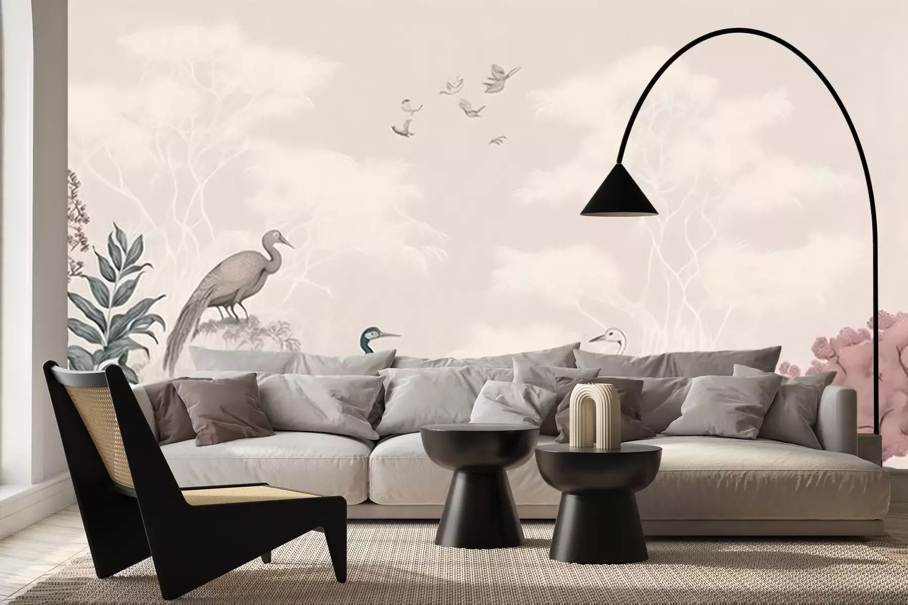 Fototapete Wallpaper jungle and leaves tropical forest peacock