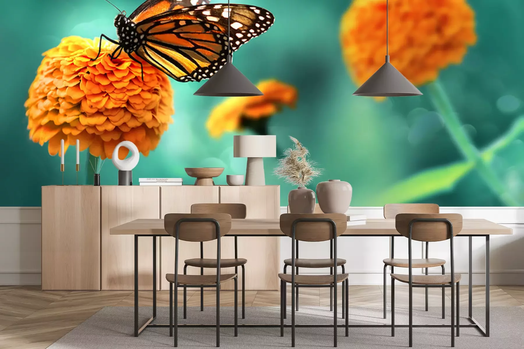 Fototapete Wanderfalter Schmetterling auf einer orangefarbenen Blume