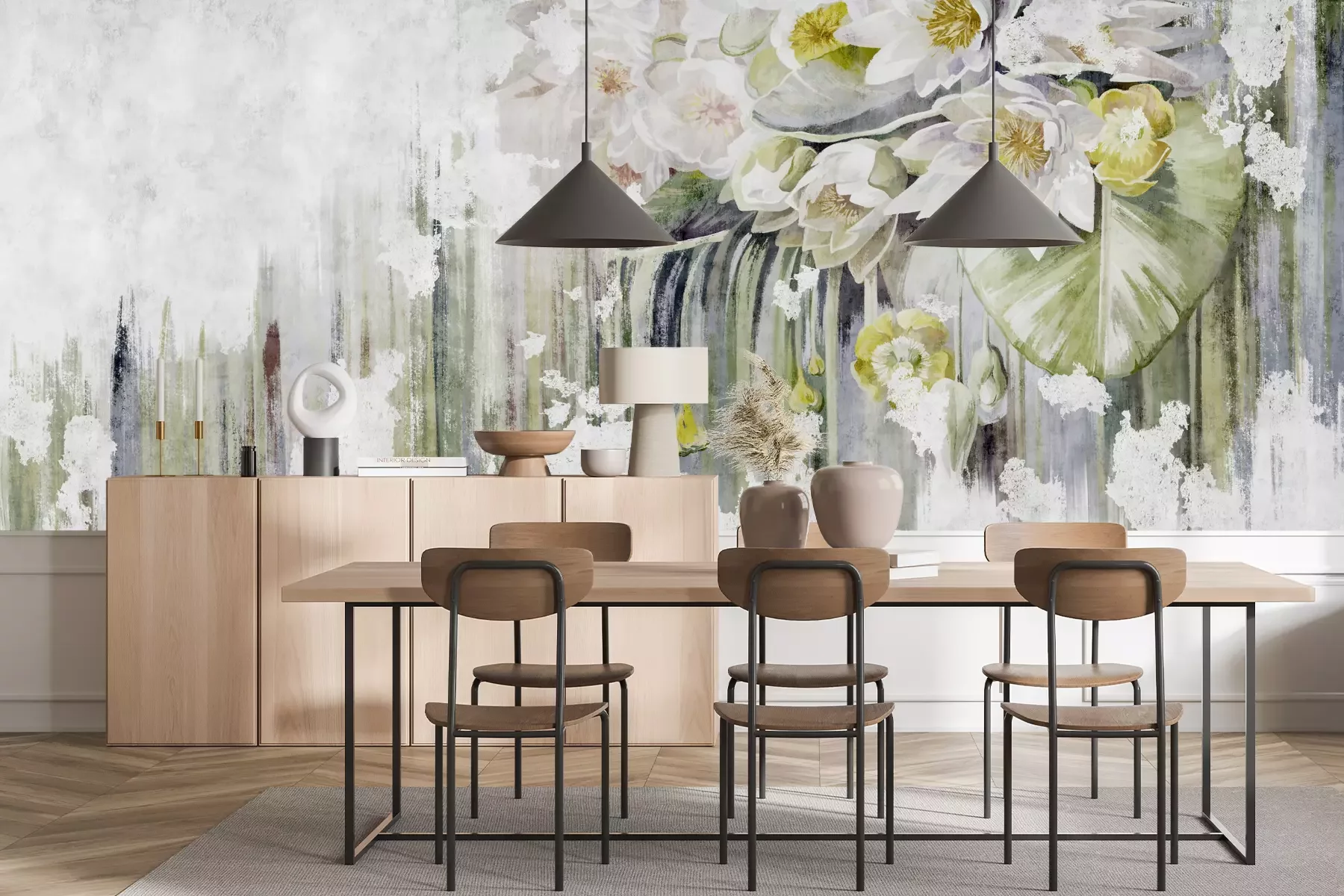 Das Material Premium+ besteht aus einer strukturierten Vinyl-Oberschicht und einem Trägermaterial (Vlies) mit einer Grammatur von 255 g/m², das kleine Unebenheiten der Wand zuverlässig kaschiert. Die feine Sandstruktur verleiht der Oberfläche eine luxuriöse Haptik, während das halbmatte Finish die Tiefe der Farben betont. Das Material ist dampfdurchlässig – so kann diese Fototapete auch in Küchen und Badezimmern eingesetzt werden. Die maximale Breite einer Tapetenbahn beträgt 100 cm. Bei größeren Abmessungen besteht die Fototapete aus mehreren gleich großen Bahnen. Der Kleber wird direkt auf die Wand aufgetragen, und die Fototapete wird auf Stoß angebracht, was für einen ästhetischen Effekt ohne sichtbare Fugen sorgt. Die Oberfläche ist pflegeleicht und kann bei Bedarf sanft mit einem feuchten Tuch abgewischt werden.