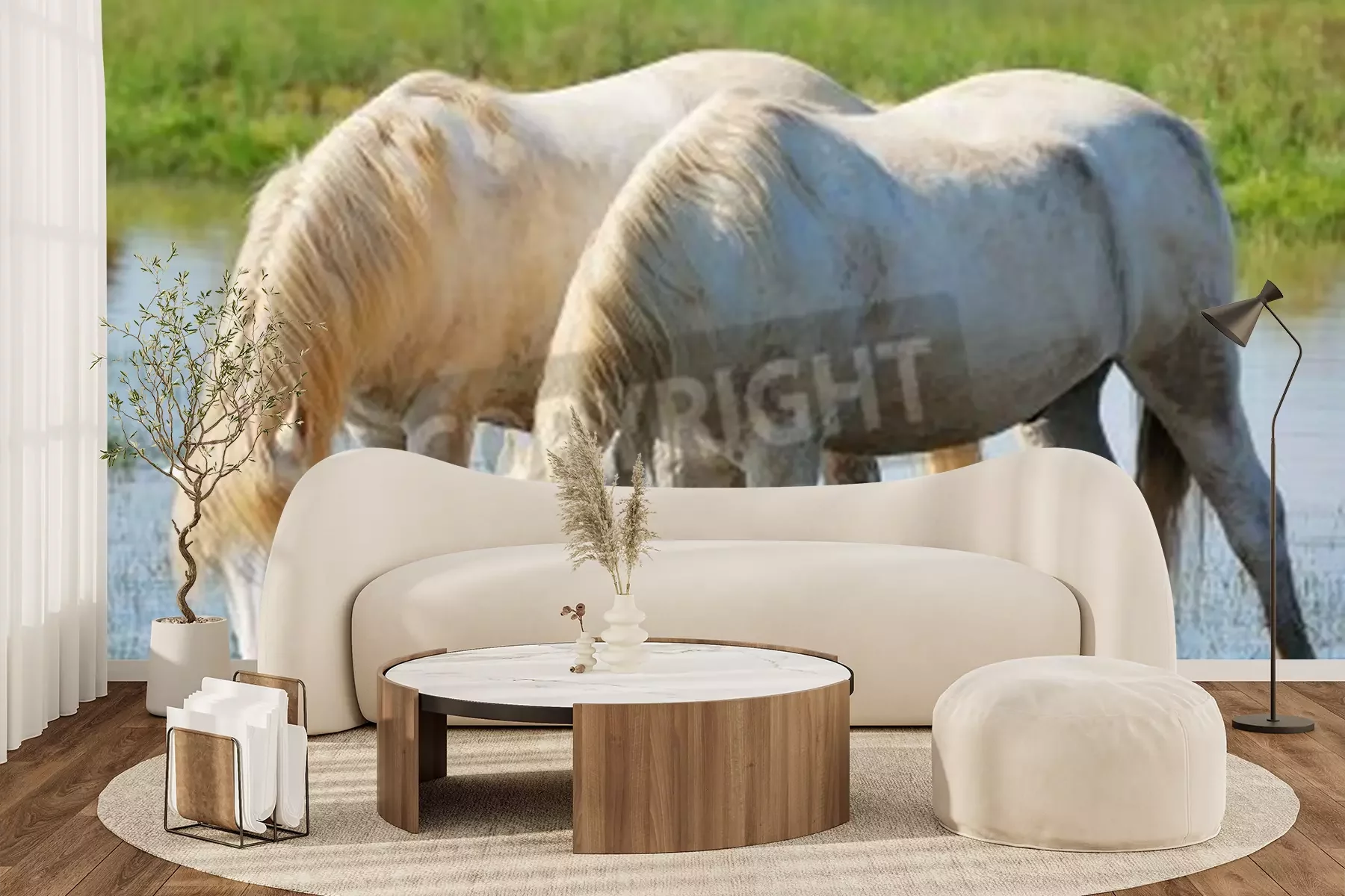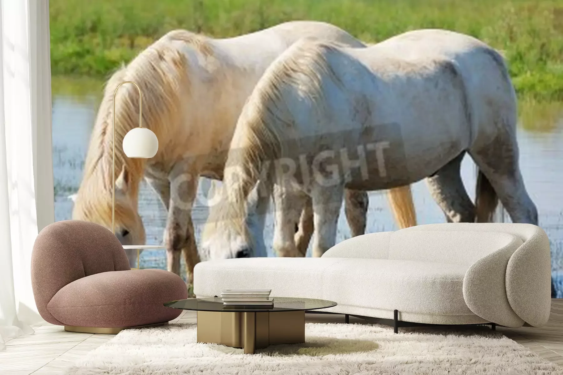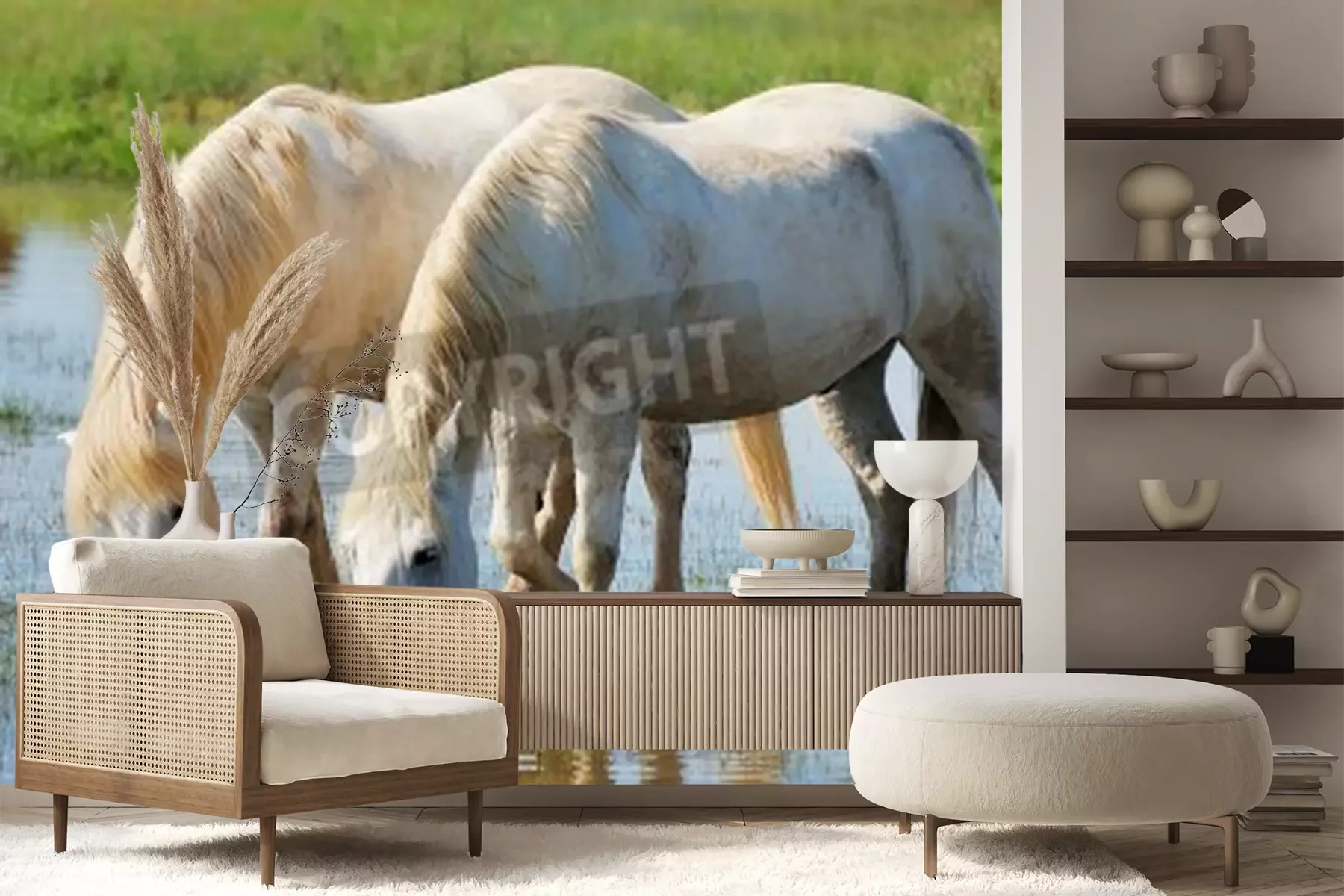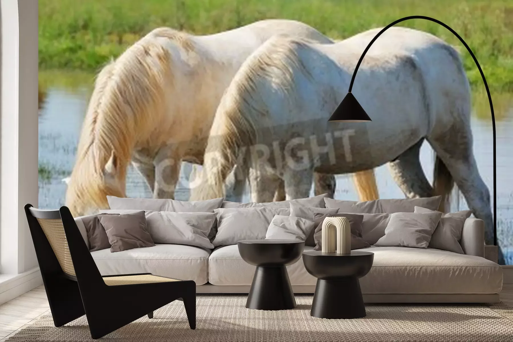 Fototapete Wasser trinkendes pferdepaar