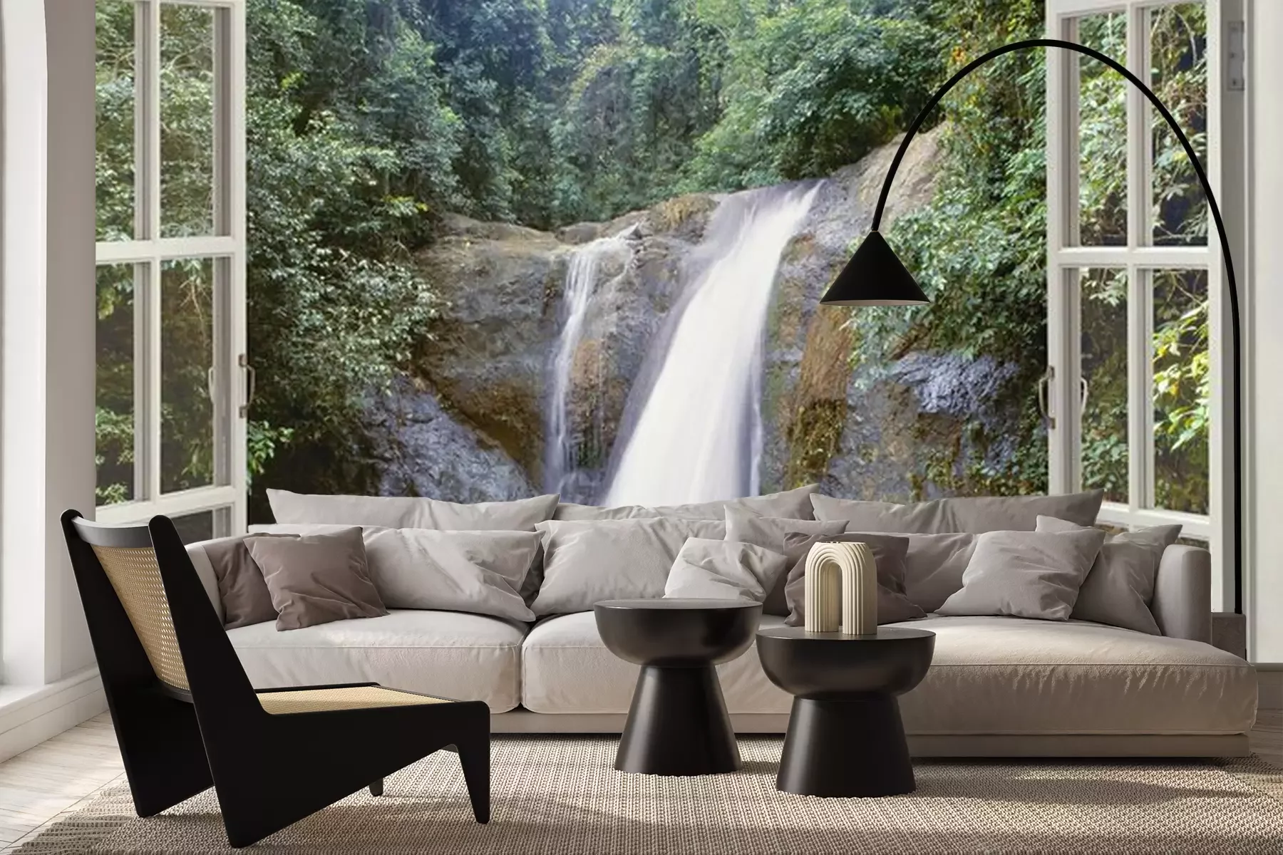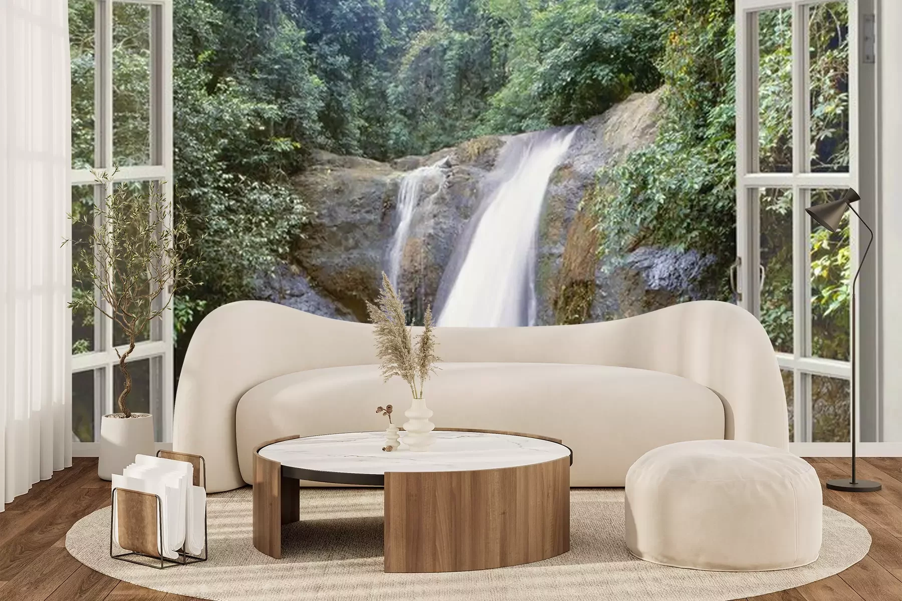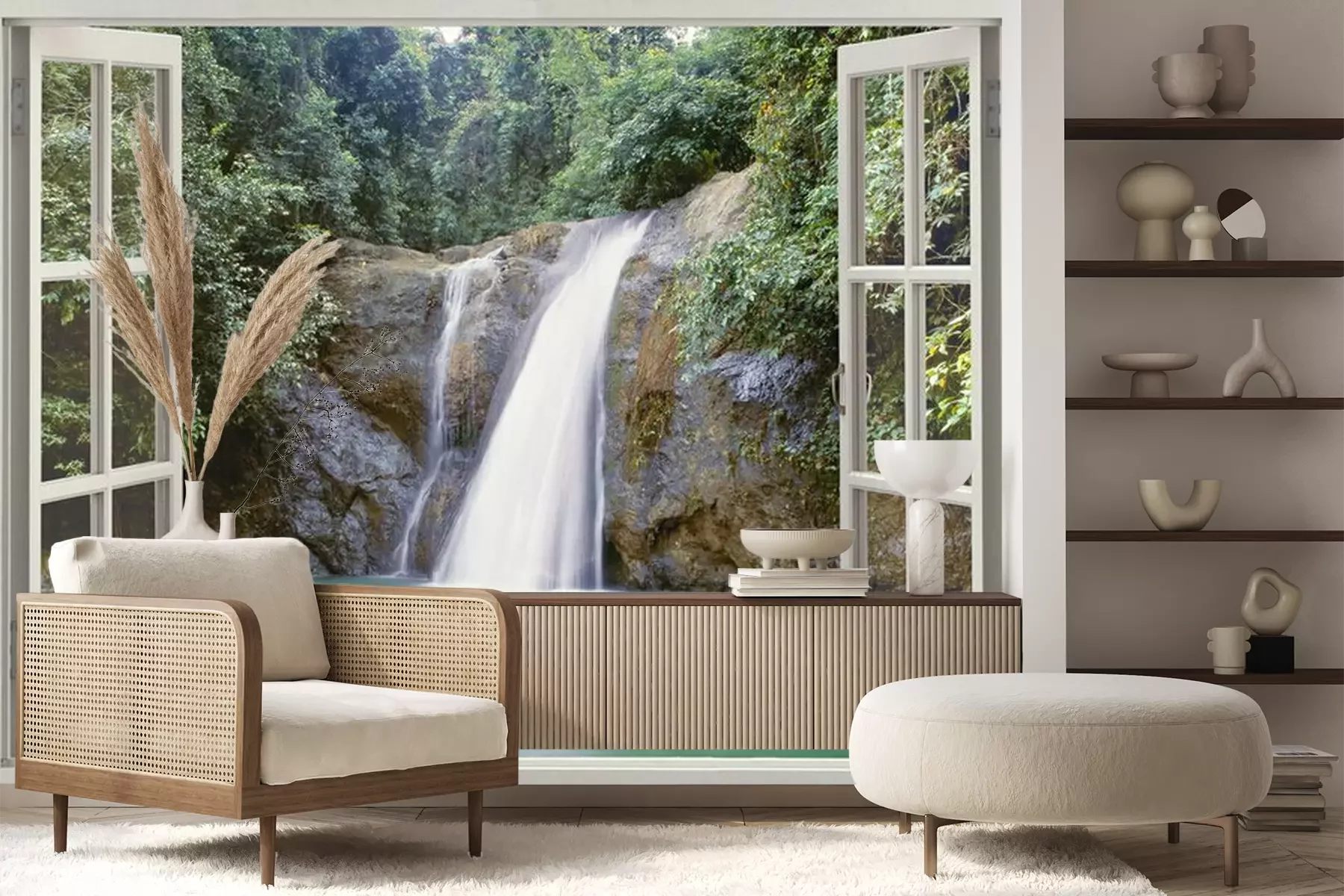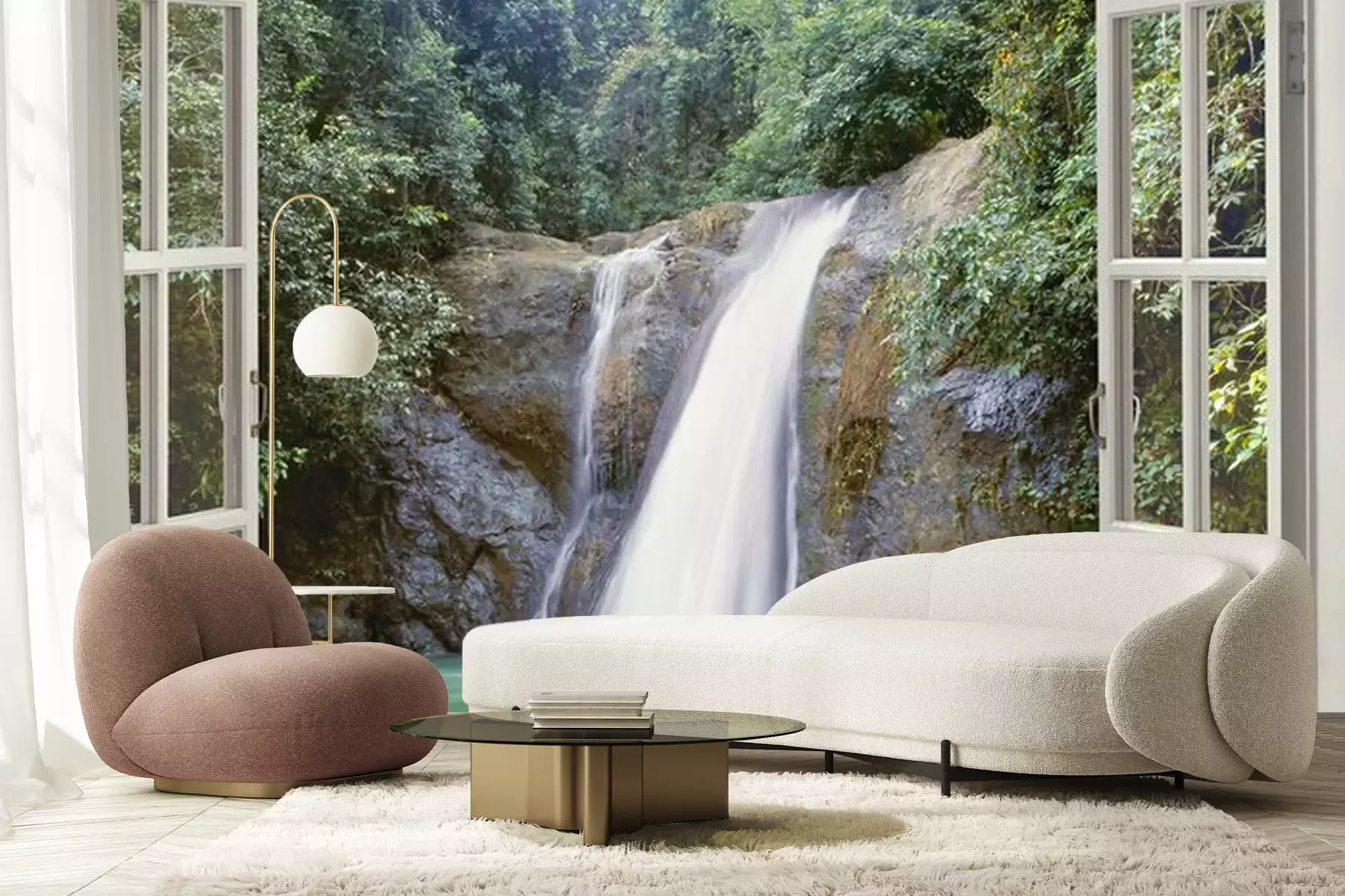 Wasserfälle vor dem FensterFototapete