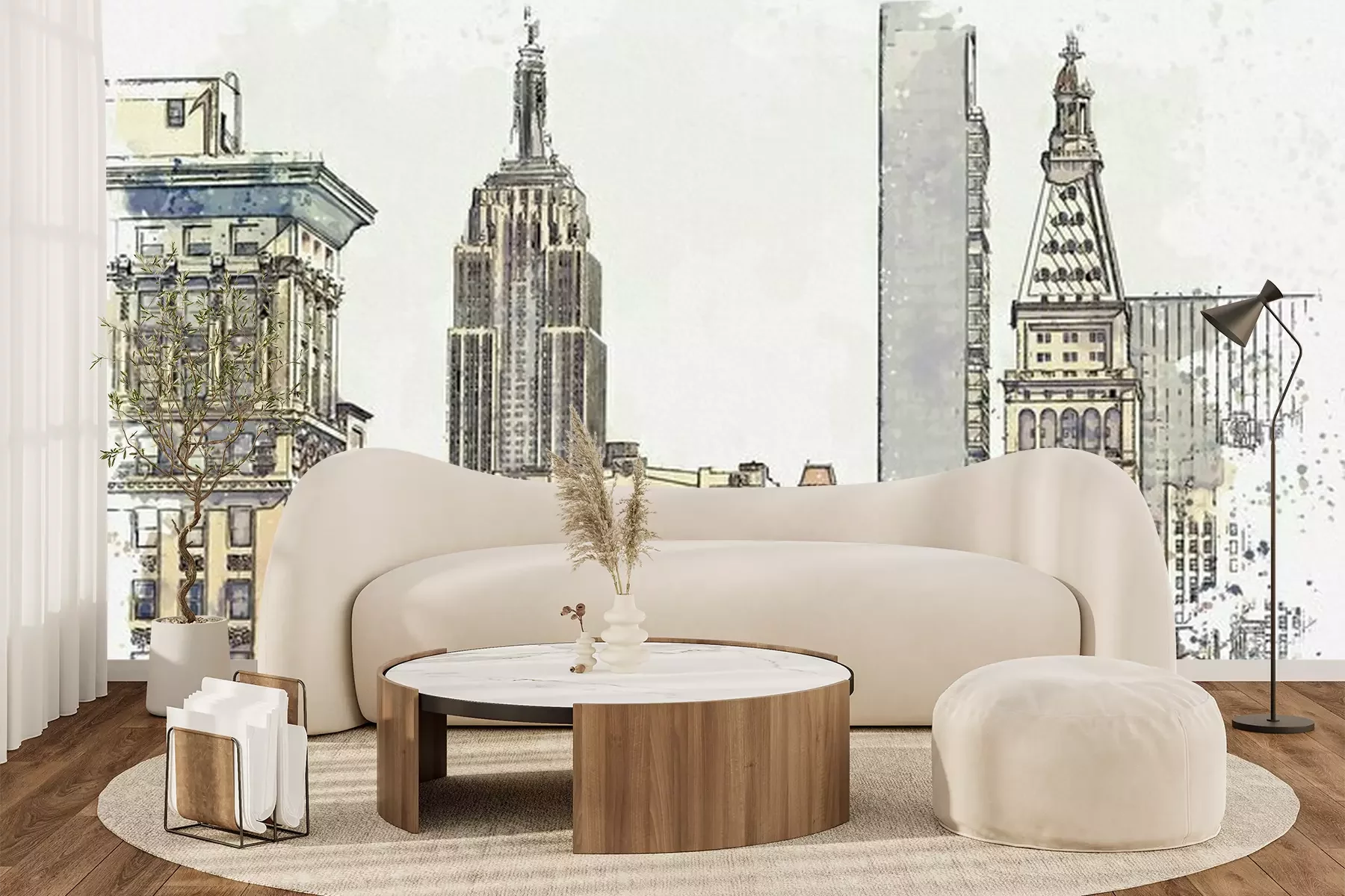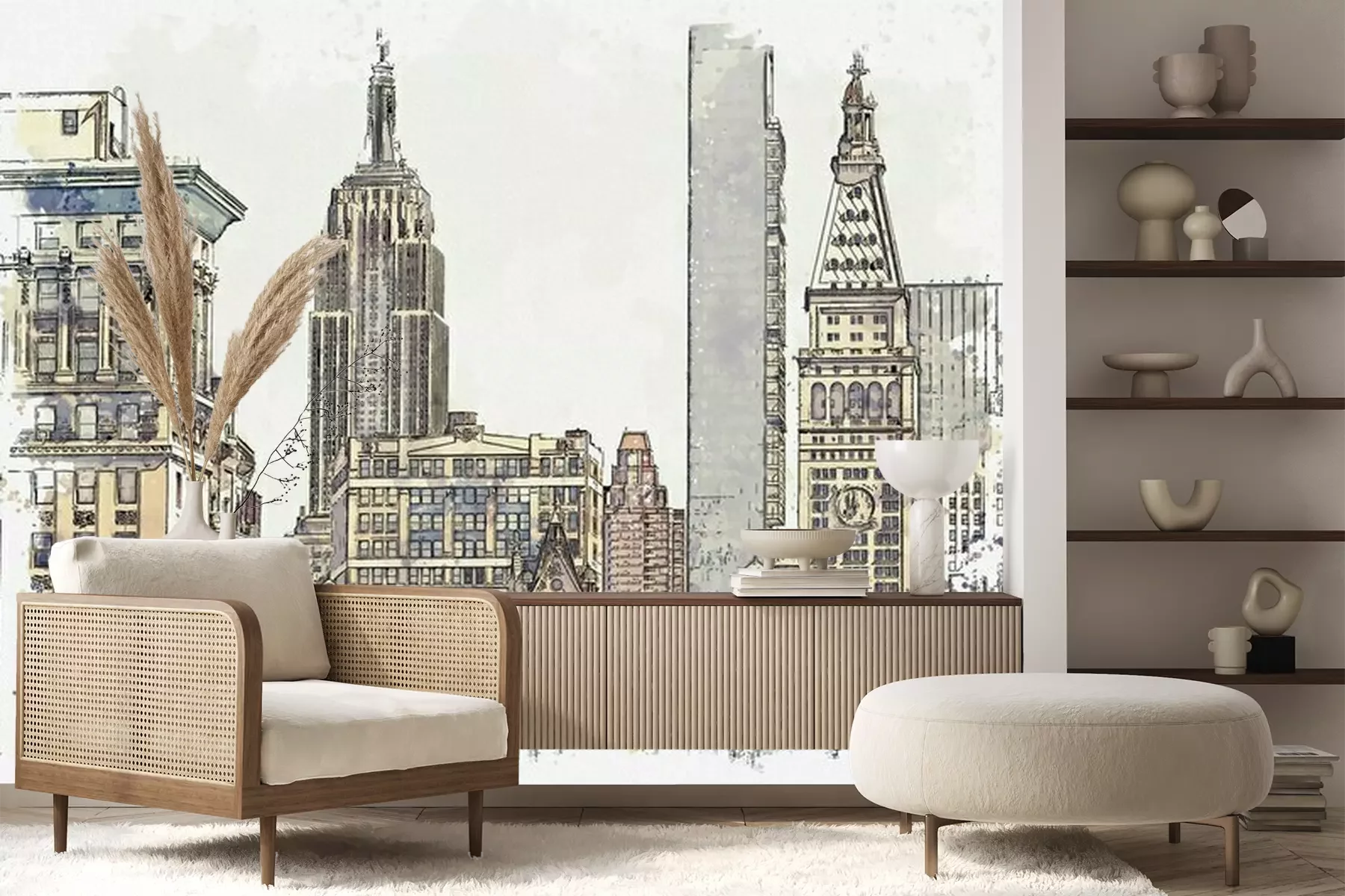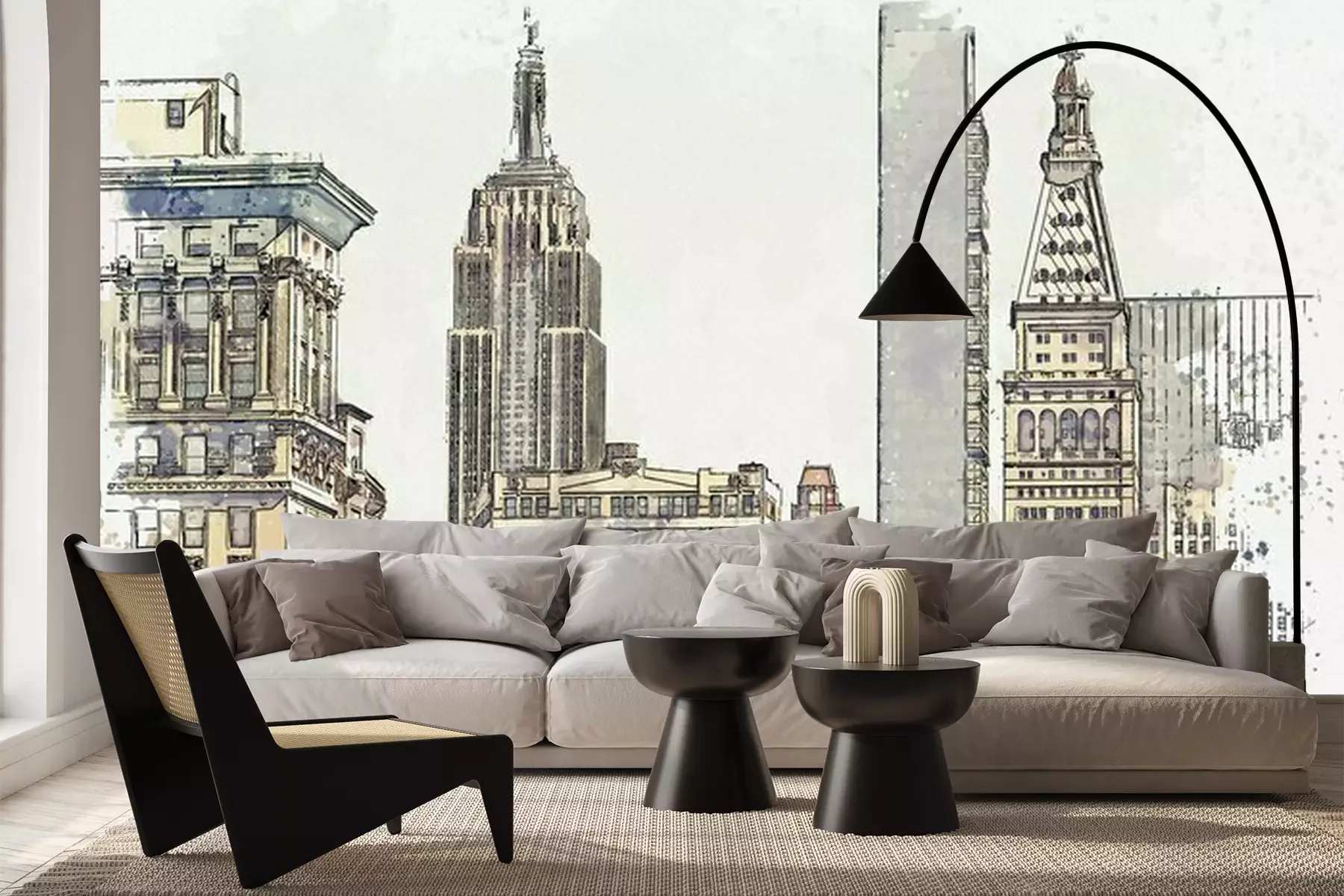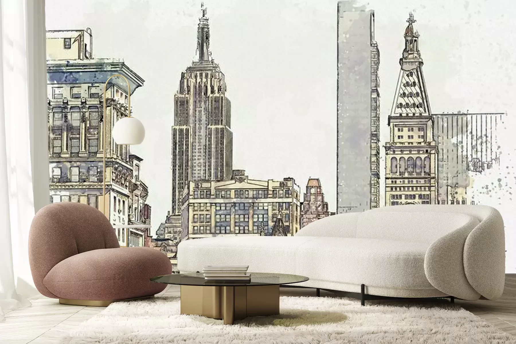 Fototapete Watercolor sketch or illustration of a beautiful view of the New York City with urban skyscrapers