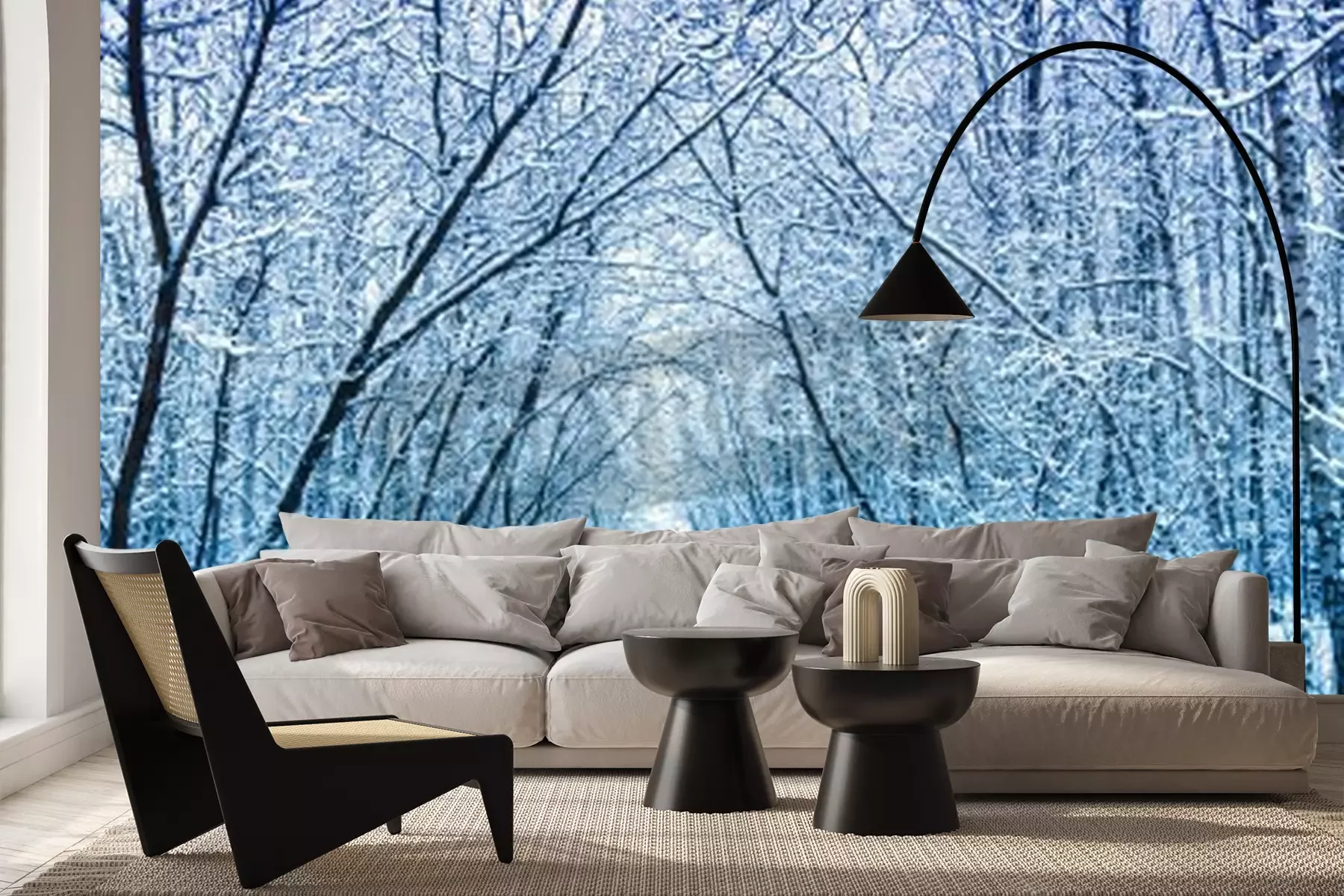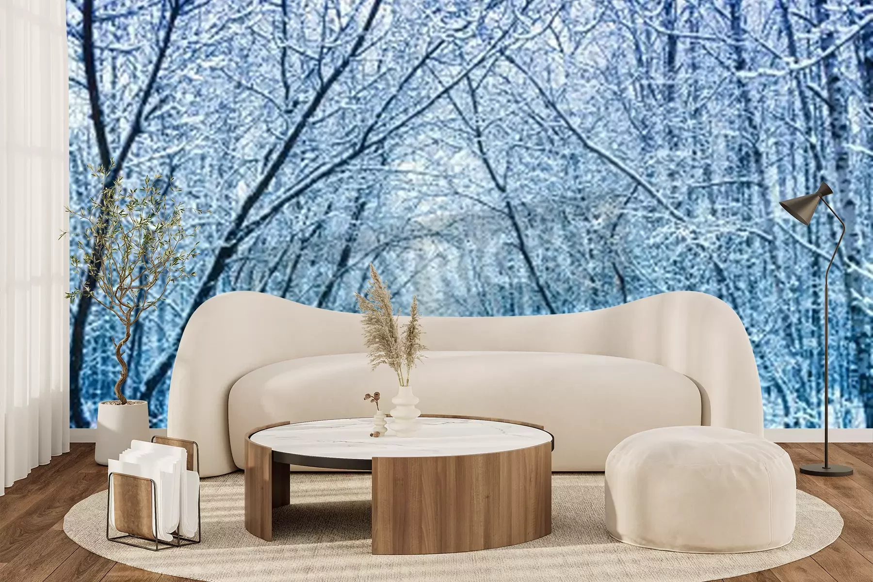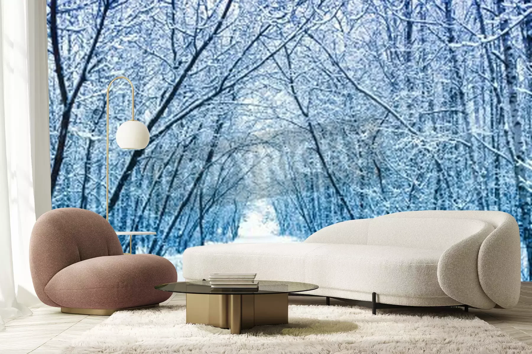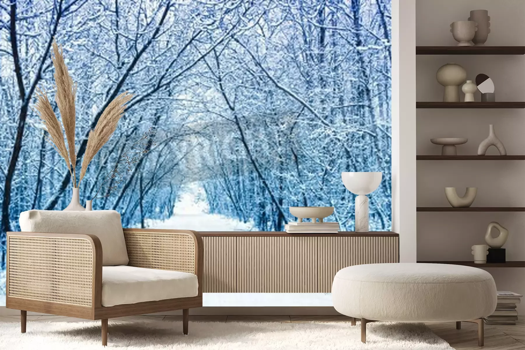 Fototapete Weg durch winterlichen Birkenwald