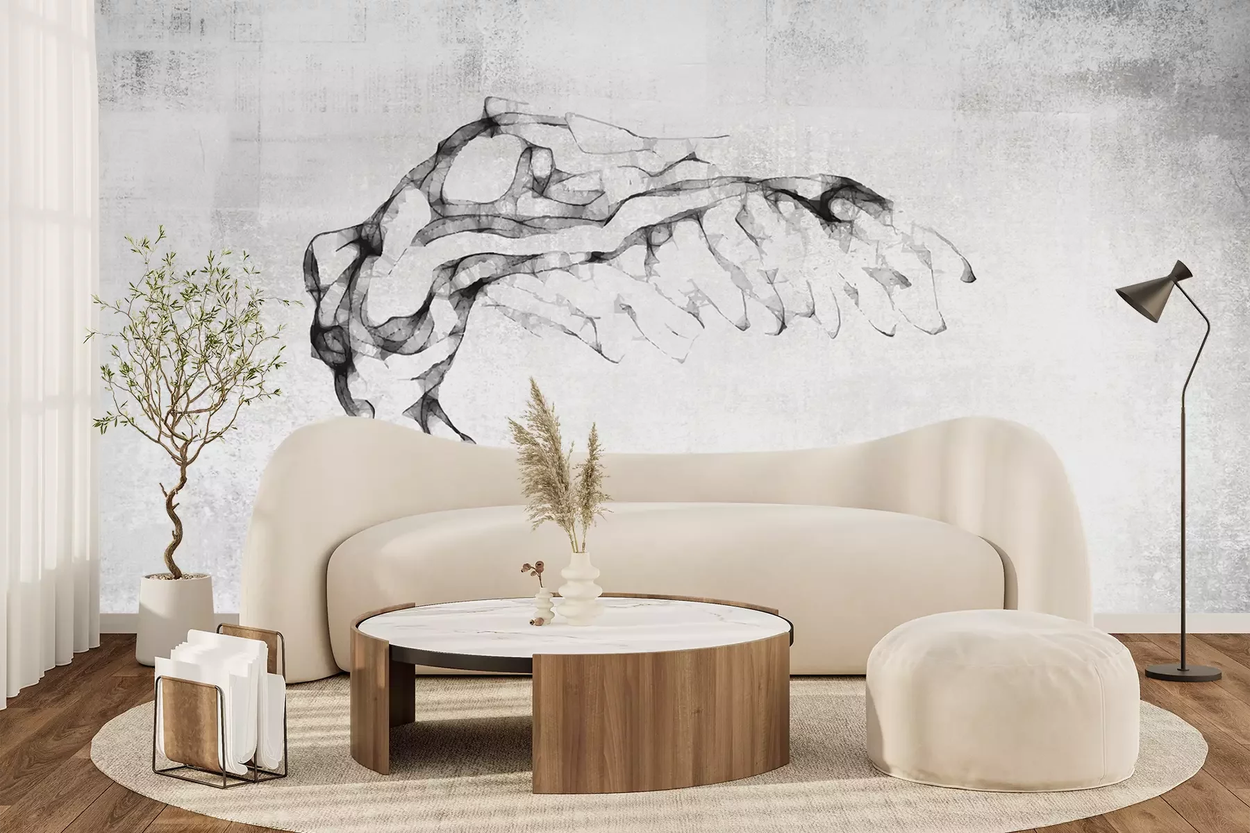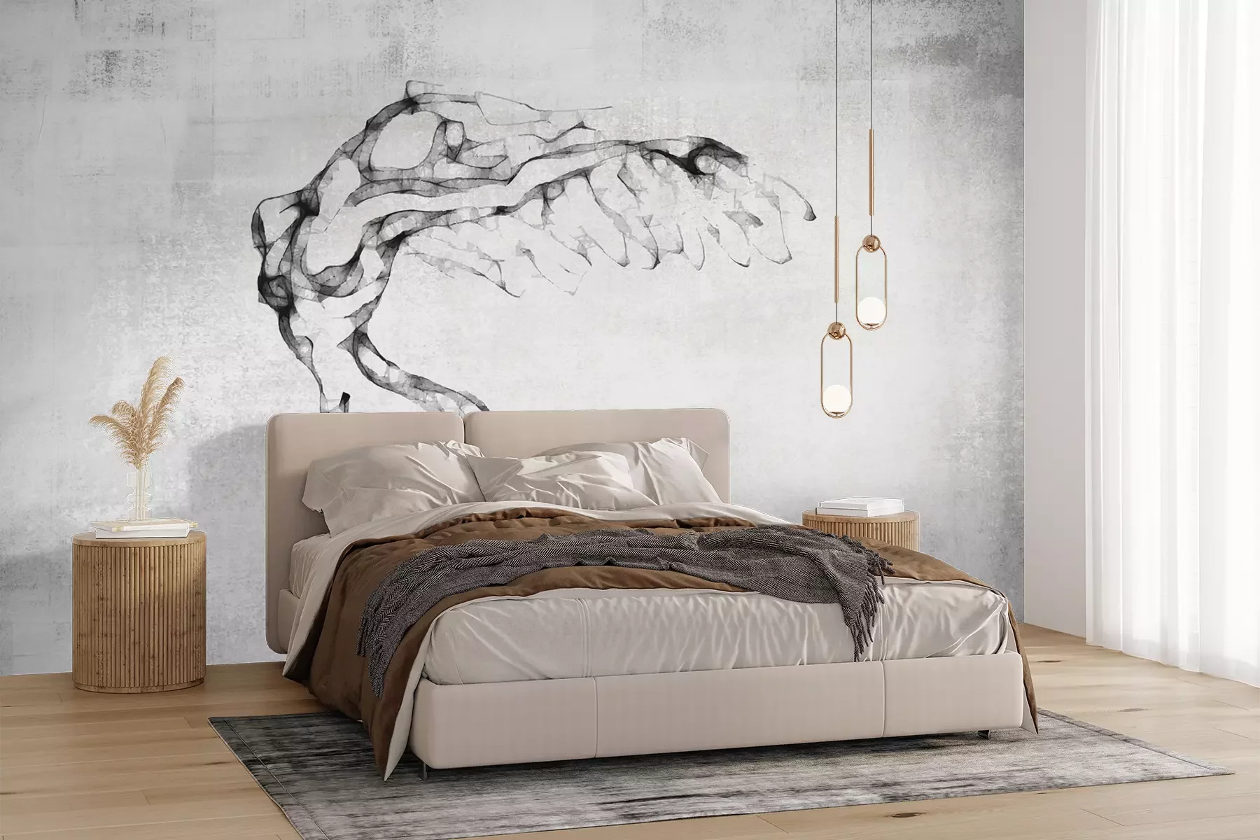 Das Material Premium+ besteht aus einer strukturierten Vinyl-Oberschicht und einem Trägermaterial (Vlies) mit einer Grammatur von 255 g/m², das kleine Unebenheiten der Wand zuverlässig kaschiert. Die feine Sandstruktur verleiht der Oberfläche eine luxuriöse Haptik, während das halbmatte Finish die Tiefe der Farben betont. Das Material ist dampfdurchlässig – so kann diese Fototapete auch in Küchen und Badezimmern eingesetzt werden. Die maximale Breite einer Tapetenbahn beträgt 100 cm. Bei größeren Abmessungen besteht die Fototapete aus mehreren gleich großen Bahnen. Der Kleber wird direkt auf die Wand aufgetragen, und die Fototapete wird auf Stoß angebracht, was für einen ästhetischen Effekt ohne sichtbare Fugen sorgt. Die Oberfläche ist pflegeleicht und kann bei Bedarf sanft mit einem feuchten Tuch abgewischt werden.