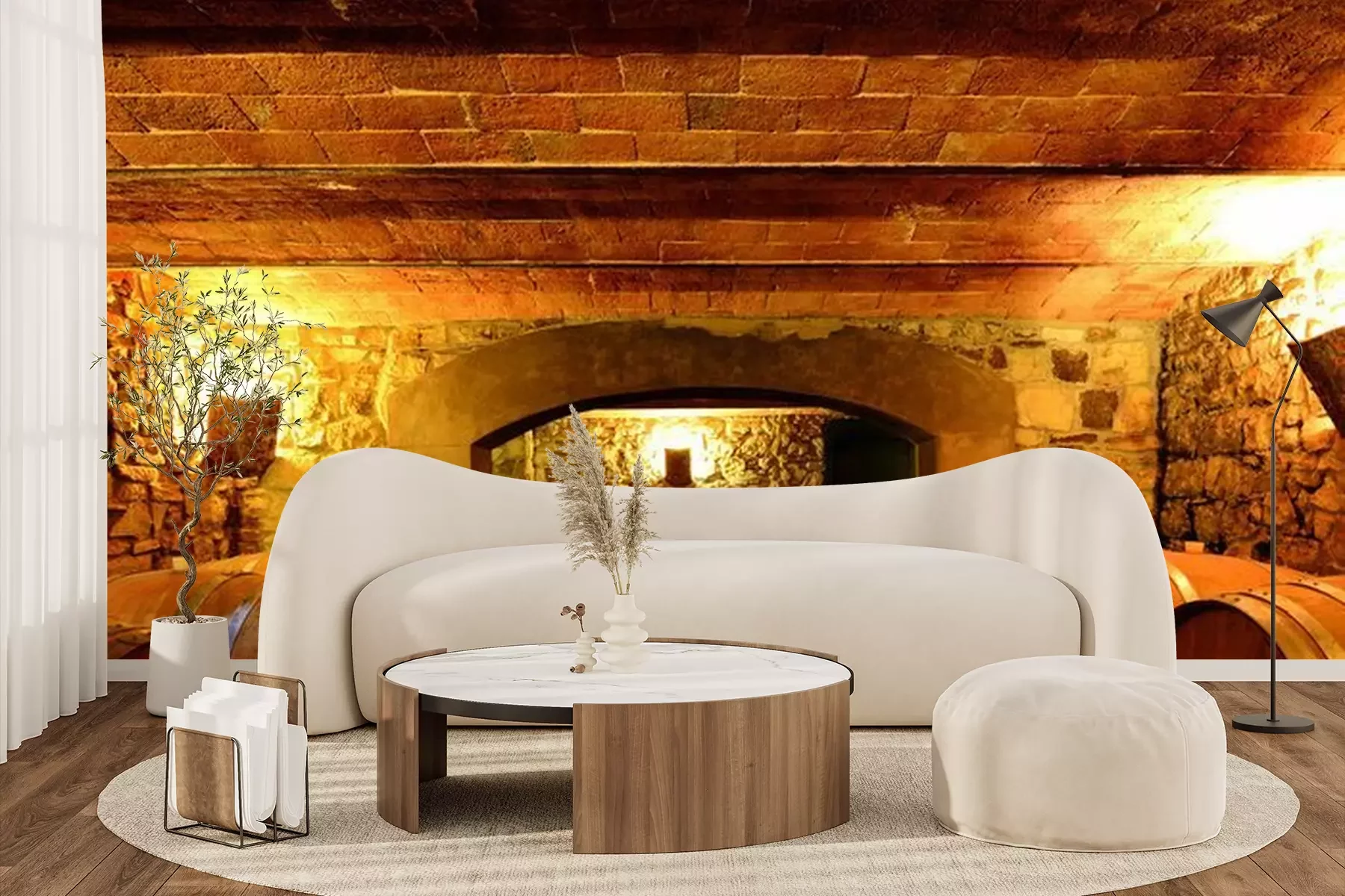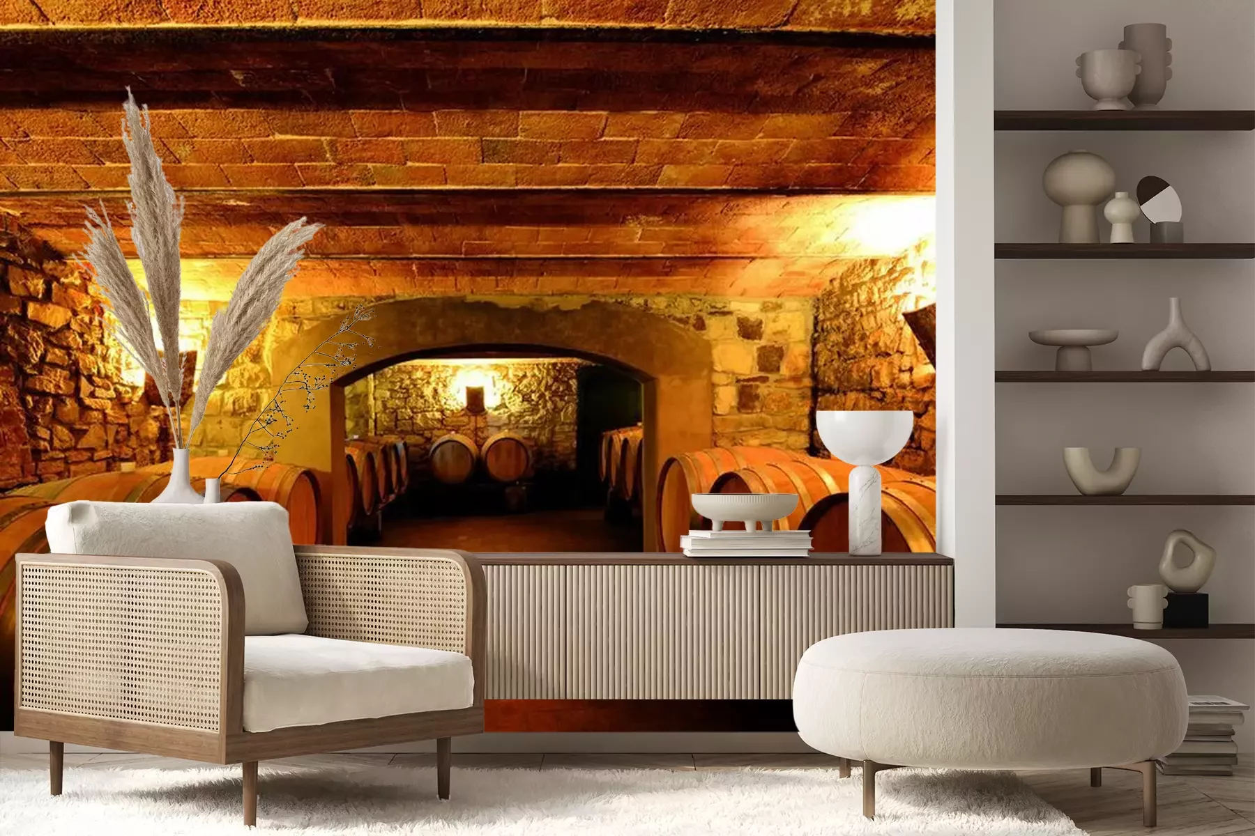 Fototapete Weinfässer im Weinberg