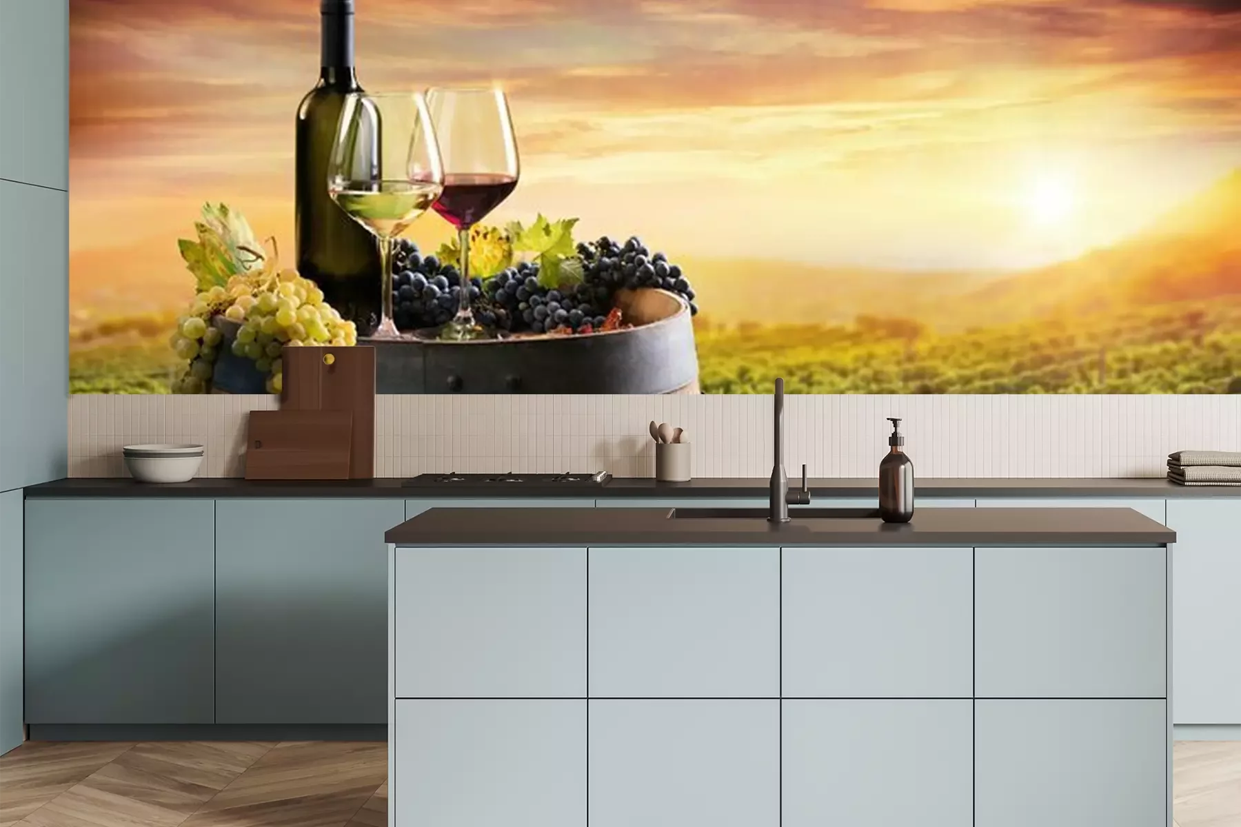 Weinfass und Weingläser vor einem WeinbergProblemlose Lieferung durch vertrauenswürdige Spediteure