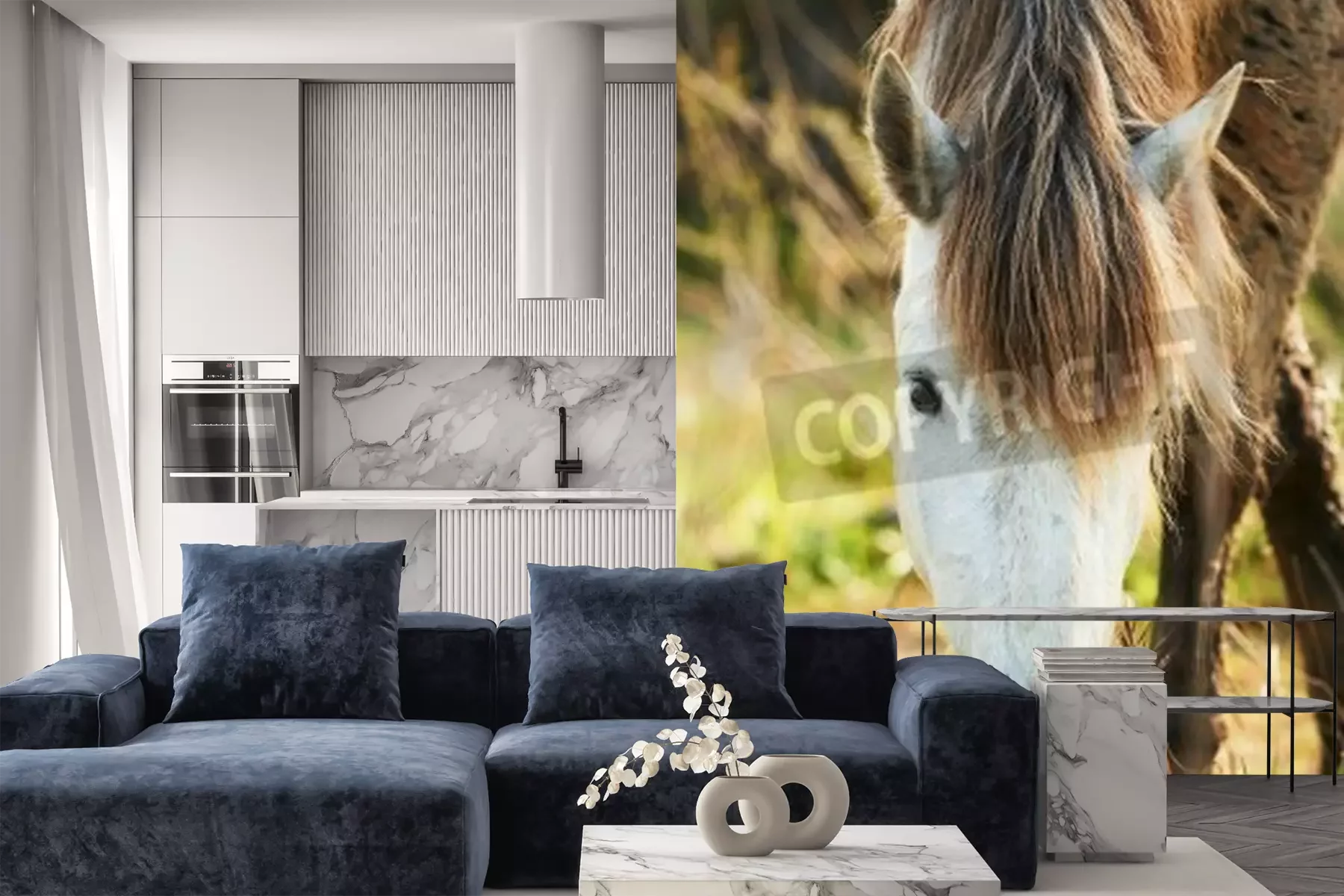 Fototapete Weiß-braunes camargue-pferd