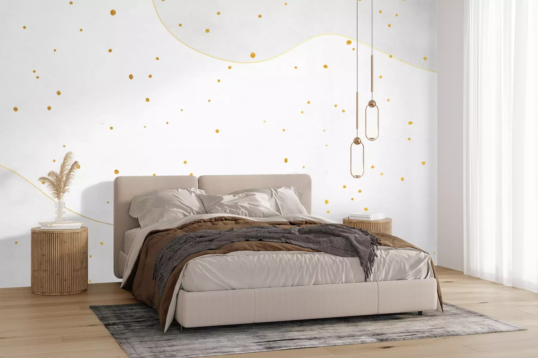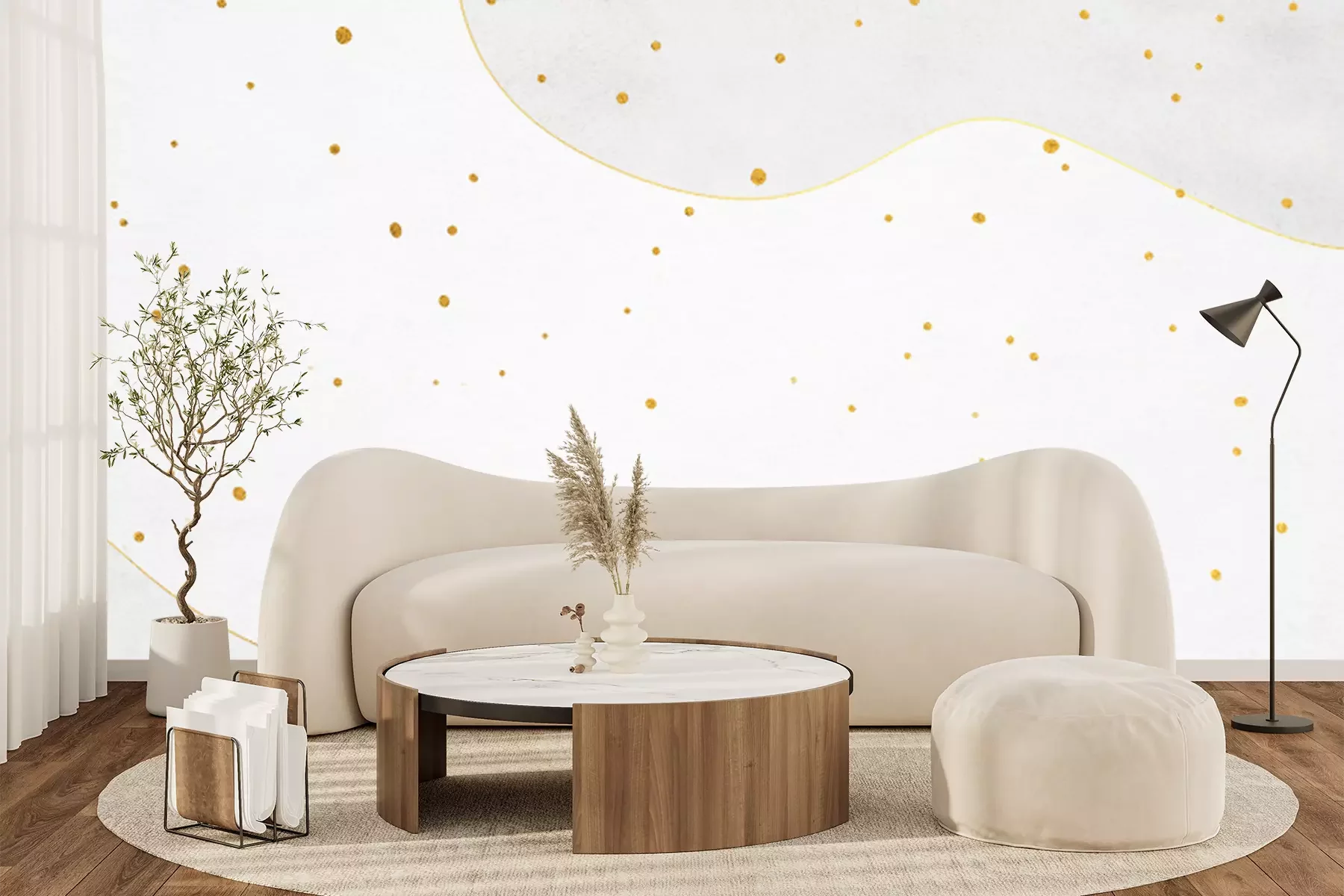 Fototapete Weiß gebrochen mit Grau und einem Muster aus Punkten