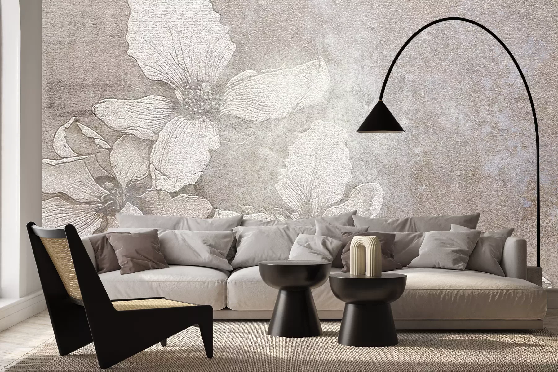 Das Material Premium+ besteht aus einer strukturierten Vinyl-Oberschicht und einem Trägermaterial (Vlies) mit einer Grammatur von 255 g/m², das kleine Unebenheiten der Wand zuverlässig kaschiert. Die feine Sandstruktur verleiht der Oberfläche eine luxuriöse Haptik, während das halbmatte Finish die Tiefe der Farben betont. Das Material ist dampfdurchlässig – so kann diese Fototapete auch in Küchen und Badezimmern eingesetzt werden. Die maximale Breite einer Tapetenbahn beträgt 100 cm. Bei größeren Abmessungen besteht die Fototapete aus mehreren gleich großen Bahnen. Der Kleber wird direkt auf die Wand aufgetragen, und die Fototapete wird auf Stoß angebracht, was für einen ästhetischen Effekt ohne sichtbare Fugen sorgt. Die Oberfläche ist pflegeleicht und kann bei Bedarf sanft mit einem feuchten Tuch abgewischt werden.