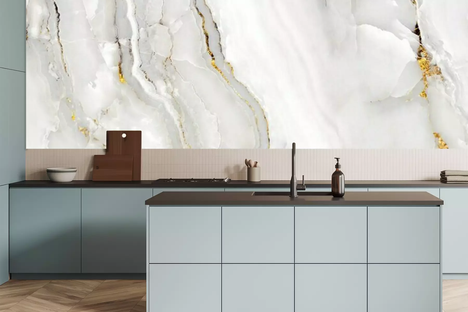 Super schöne Küchentapete, genau nach Maß, passt perfekt.