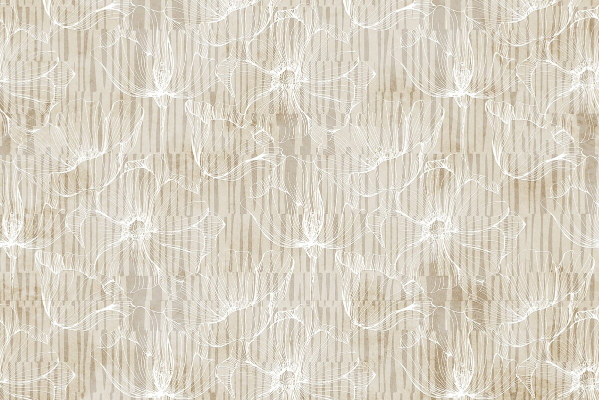 Fototapete: Weiße Mohnblumen im Line-Art-Stil auf geometrischem Hintergrund