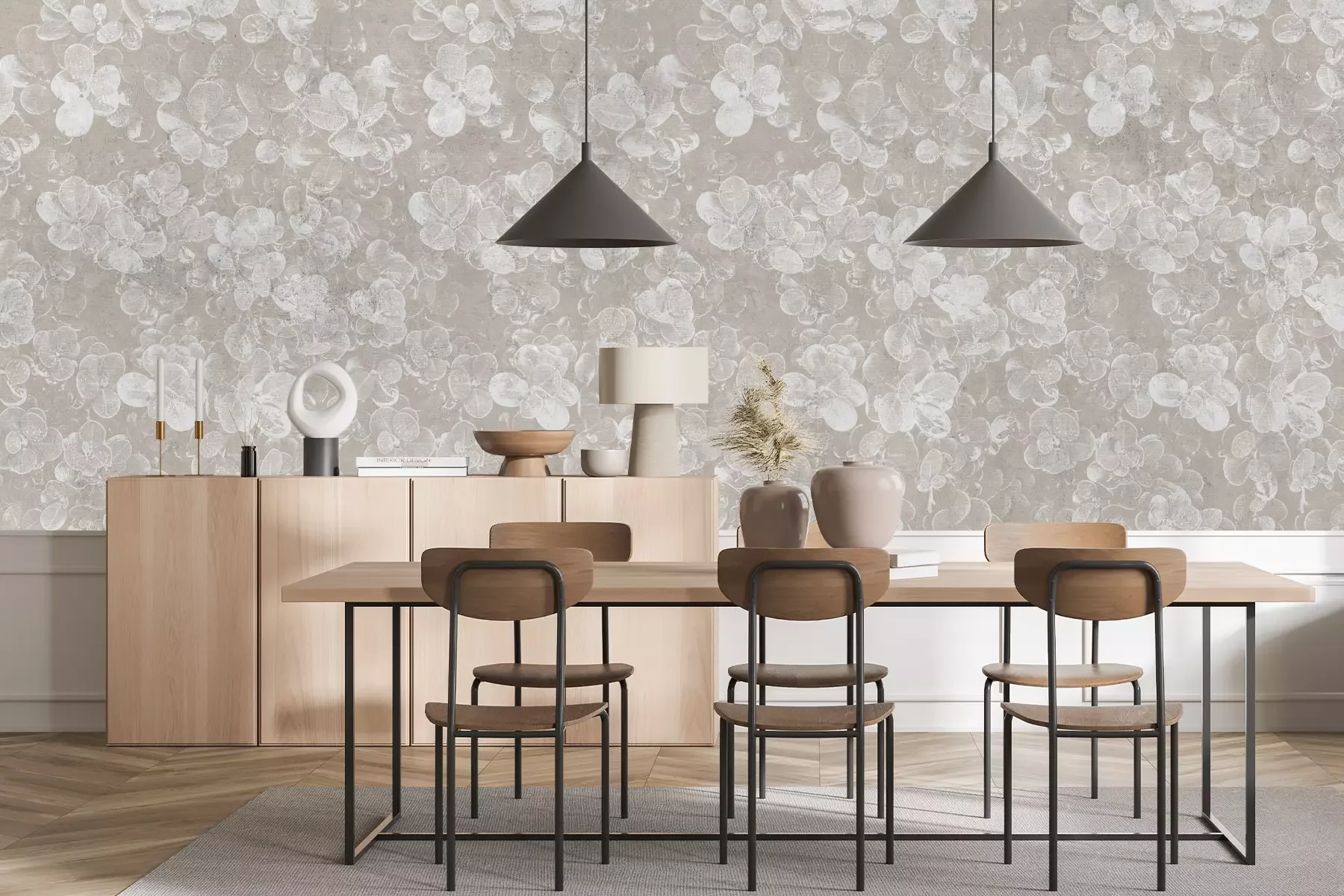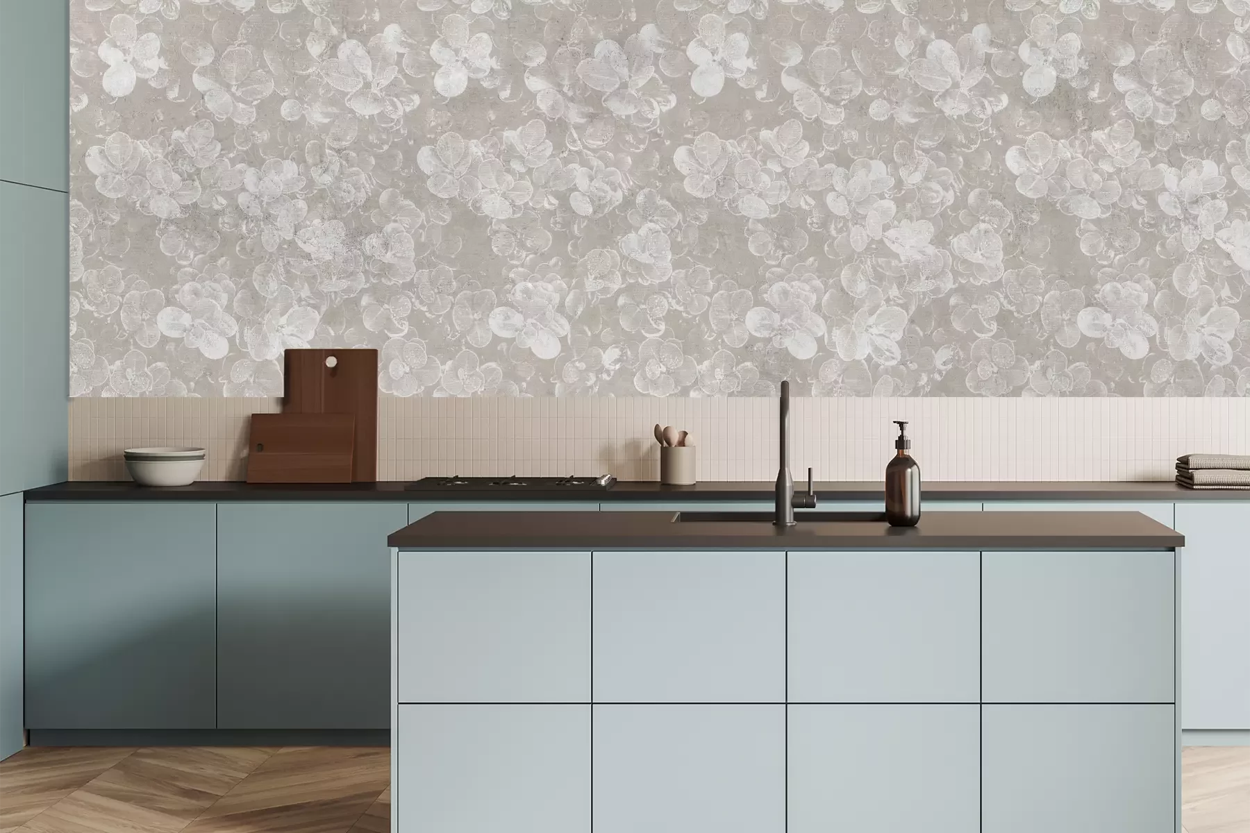 Das Material Premium+ besteht aus einer strukturierten Vinyl-Oberschicht und einem Trägermaterial (Vlies) mit einer Grammatur von 255 g/m², das kleine Unebenheiten der Wand zuverlässig kaschiert. Die feine Sandstruktur verleiht der Oberfläche eine luxuriöse Haptik, während das halbmatte Finish die Tiefe der Farben betont. Das Material ist dampfdurchlässig – so kann diese Fototapete auch in Küchen und Badezimmern eingesetzt werden. Die maximale Breite einer Tapetenbahn beträgt 100 cm. Bei größeren Abmessungen besteht die Fototapete aus mehreren gleich großen Bahnen. Der Kleber wird direkt auf die Wand aufgetragen, und die Fototapete wird auf Stoß angebracht, was für einen ästhetischen Effekt ohne sichtbare Fugen sorgt. Die Oberfläche ist pflegeleicht und kann bei Bedarf sanft mit einem feuchten Tuch abgewischt werden.