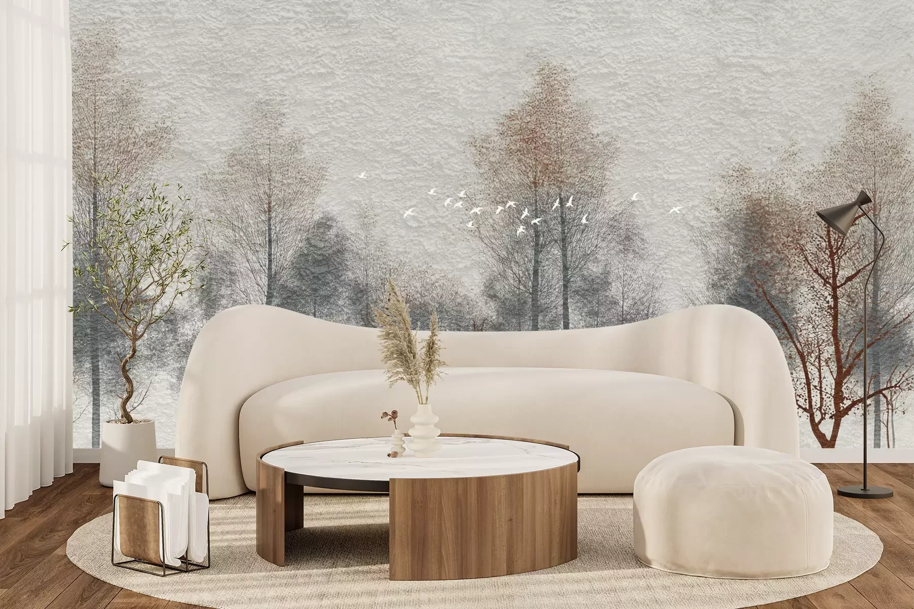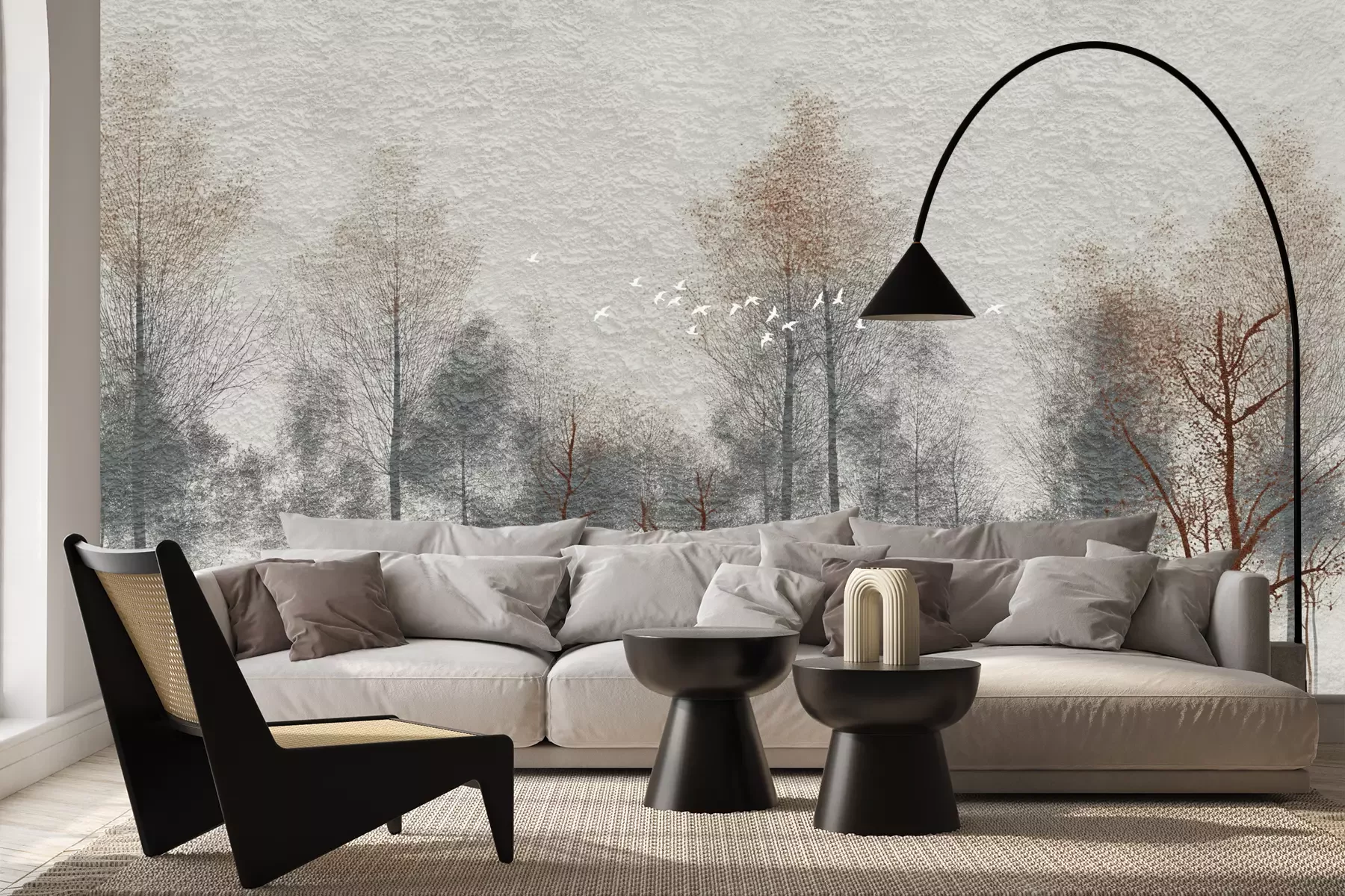 Das Material Premium+ besteht aus einer strukturierten Vinyl-Oberschicht und einem Trägermaterial (Vlies) mit einer Grammatur von 255 g/m², das kleine Unebenheiten der Wand zuverlässig kaschiert. Die feine Sandstruktur verleiht der Oberfläche eine luxuriöse Haptik, während das halbmatte Finish die Tiefe der Farben betont. Das Material ist dampfdurchlässig – so kann diese Fototapete auch in Küchen und Badezimmern eingesetzt werden. Die maximale Breite einer Tapetenbahn beträgt 100 cm. Bei größeren Abmessungen besteht die Fototapete aus mehreren gleich großen Bahnen. Der Kleber wird direkt auf die Wand aufgetragen, und die Fototapete wird auf Stoß angebracht, was für einen ästhetischen Effekt ohne sichtbare Fugen sorgt. Die Oberfläche ist pflegeleicht und kann bei Bedarf sanft mit einem feuchten Tuch abgewischt werden.