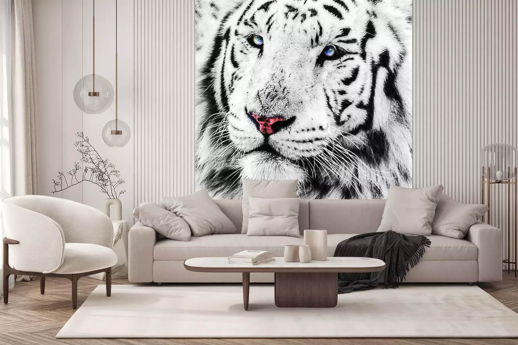 Die Fototapeten werden in Bahnen geliefert. Die Größe und die Anzahl der Bahnen, aus denen die gesamte Fototapete besteht, hängen vom gewählten Material ab. Wenn die Größe die maximale Breite des Materials überschreitet, besteht der Ausdruck aus mehreren gleich großen Bahnen.