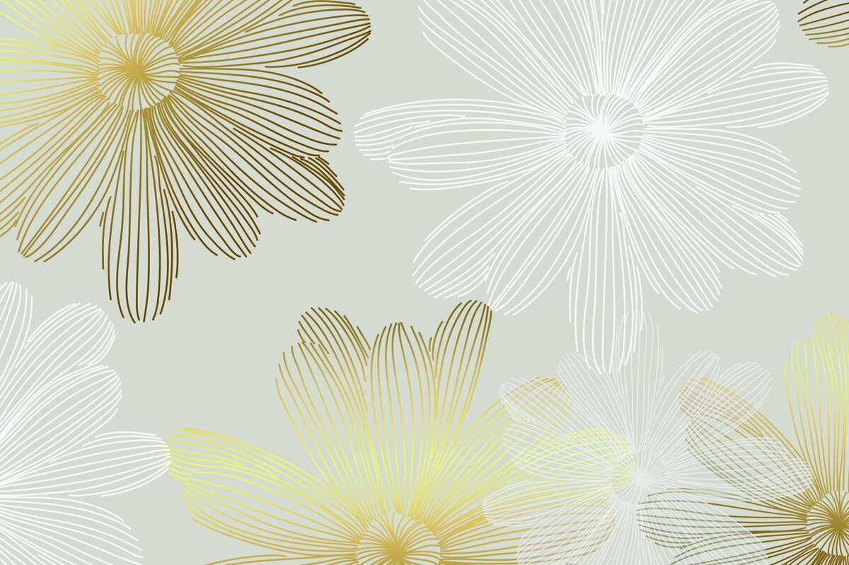 Fototapete: Weißer und goldener Skizze von Gänseblümchen