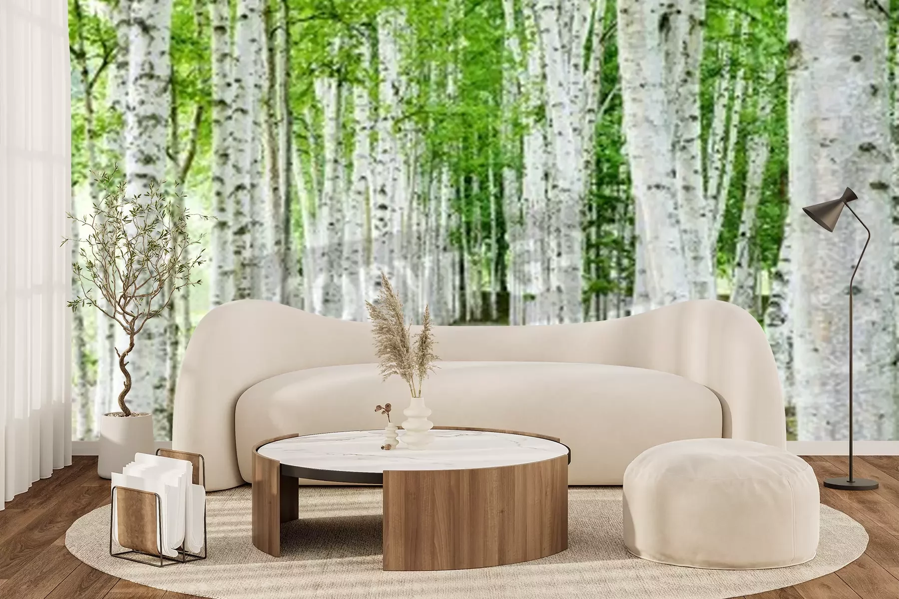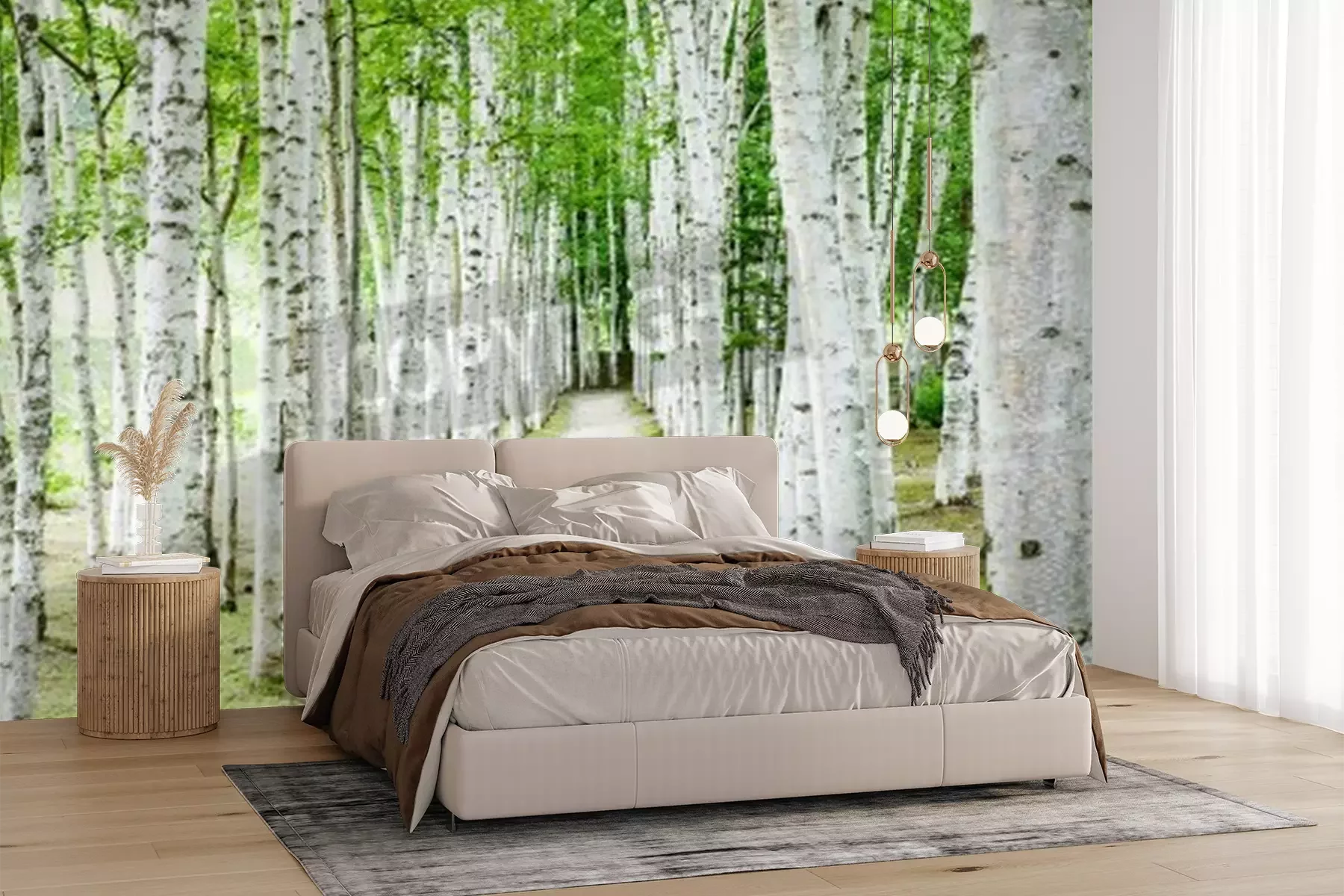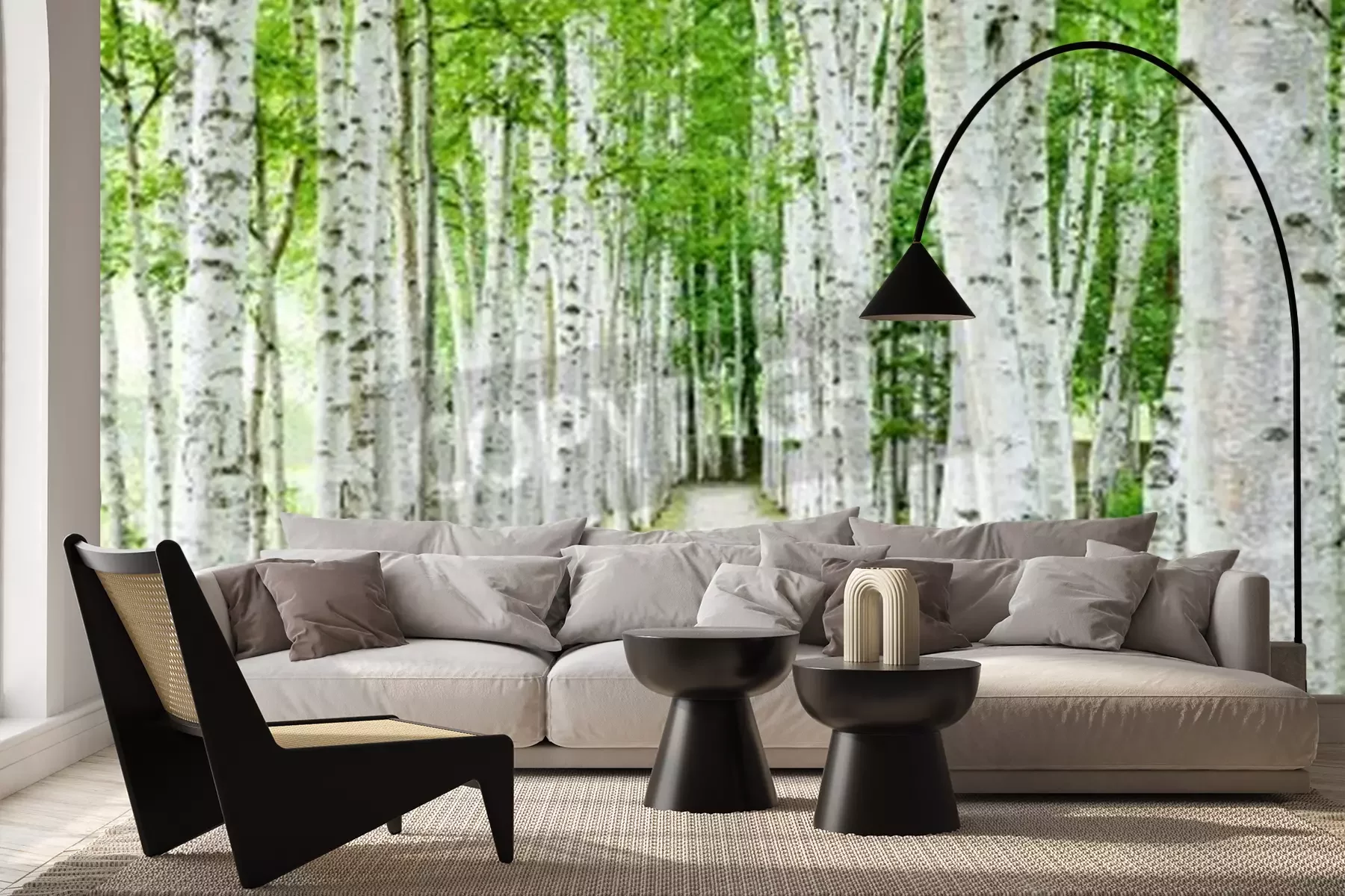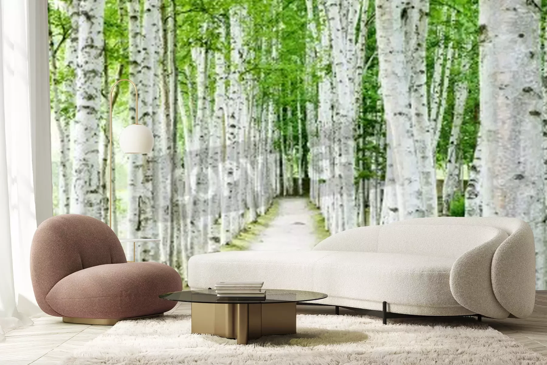 Fototapete Weißer Weg an Birken