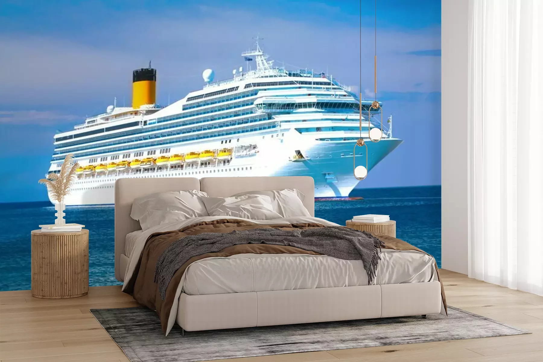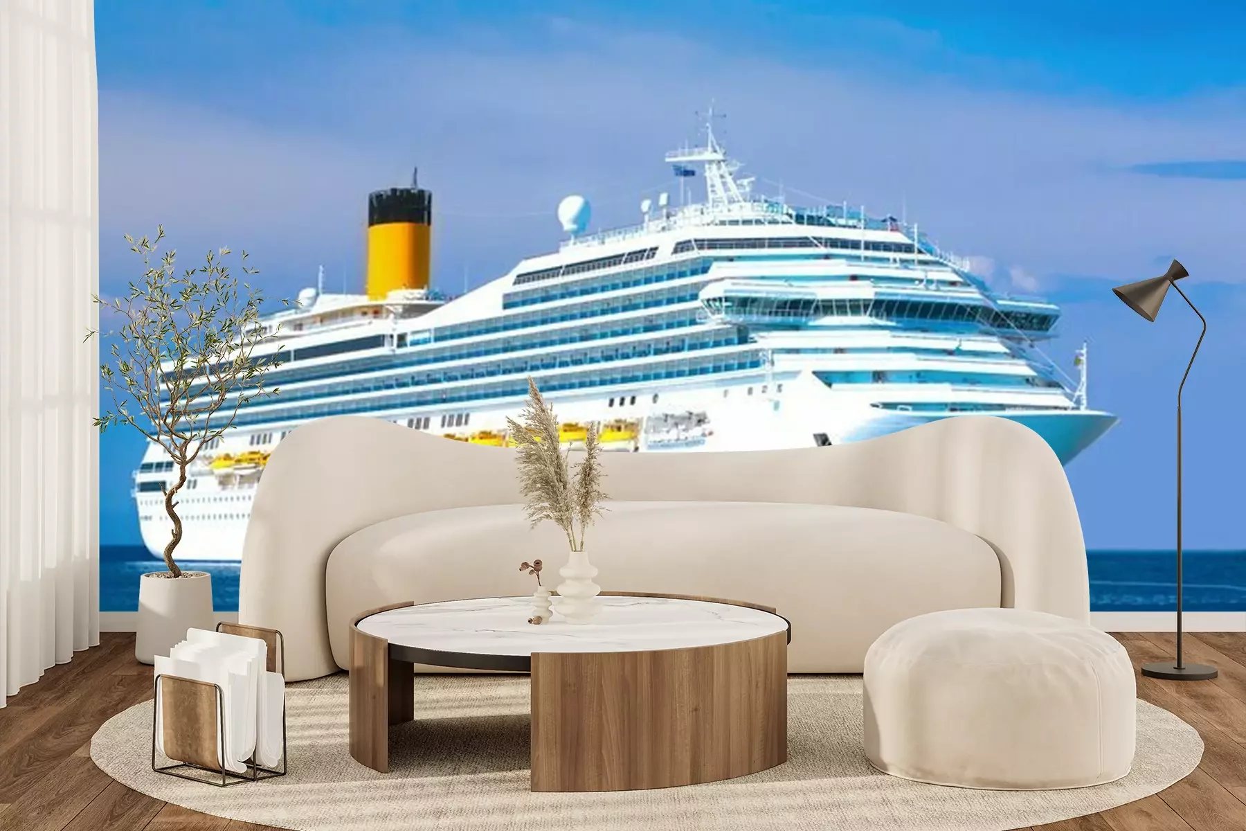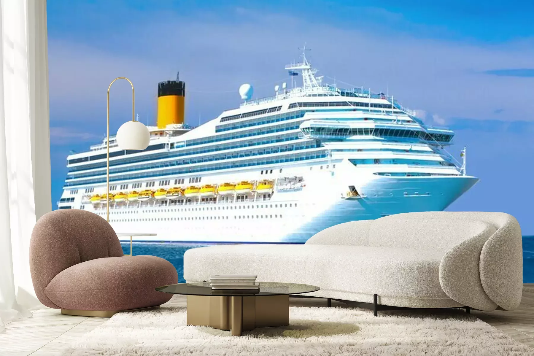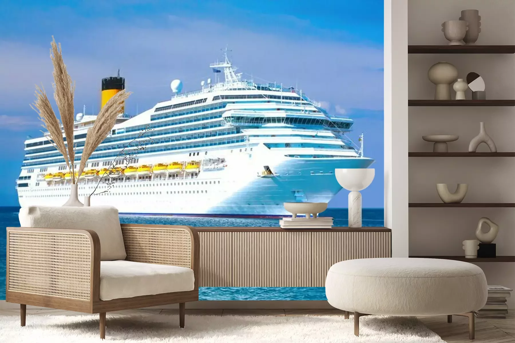 Fototapete Weißes Kreuzfahrtschiff auf See