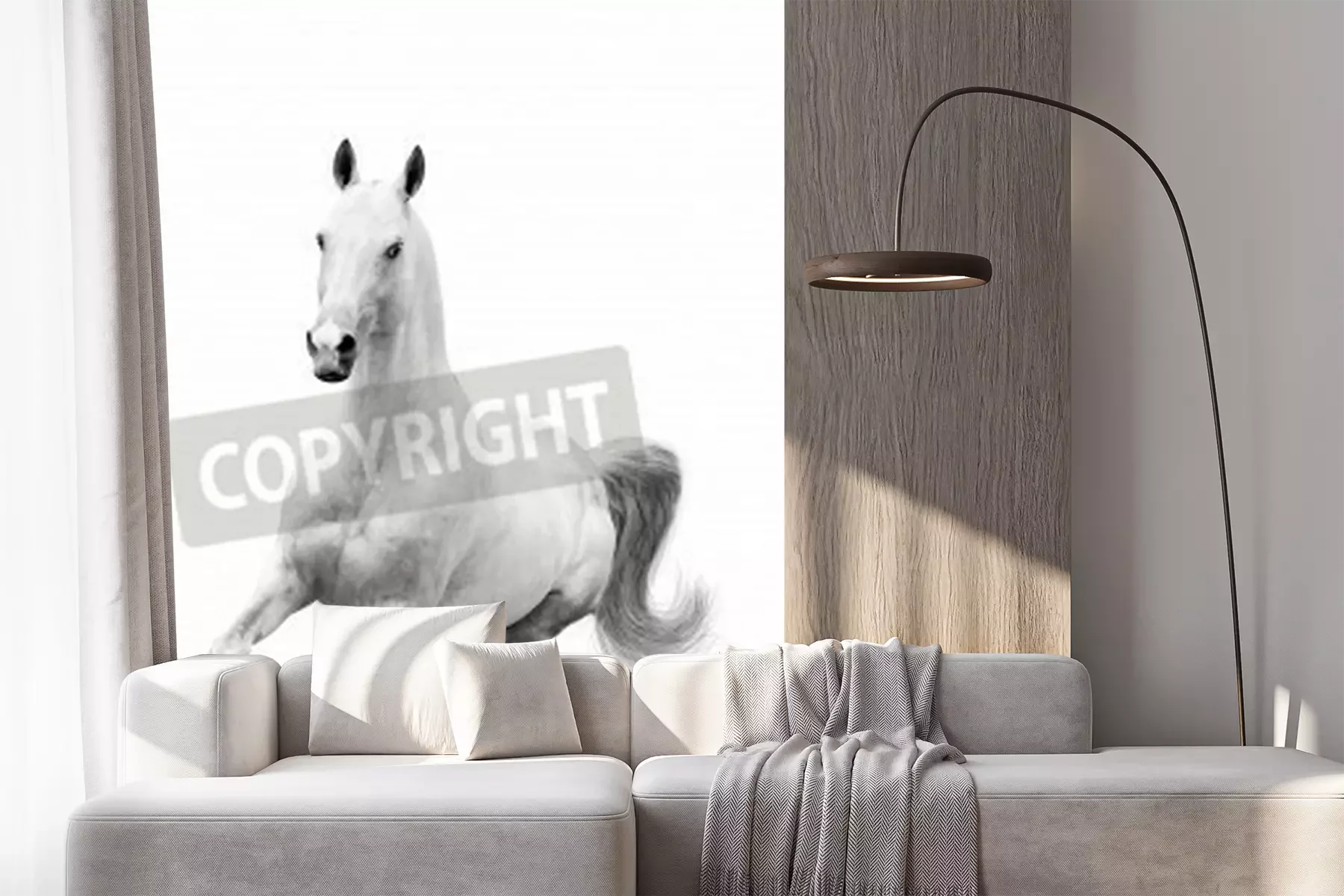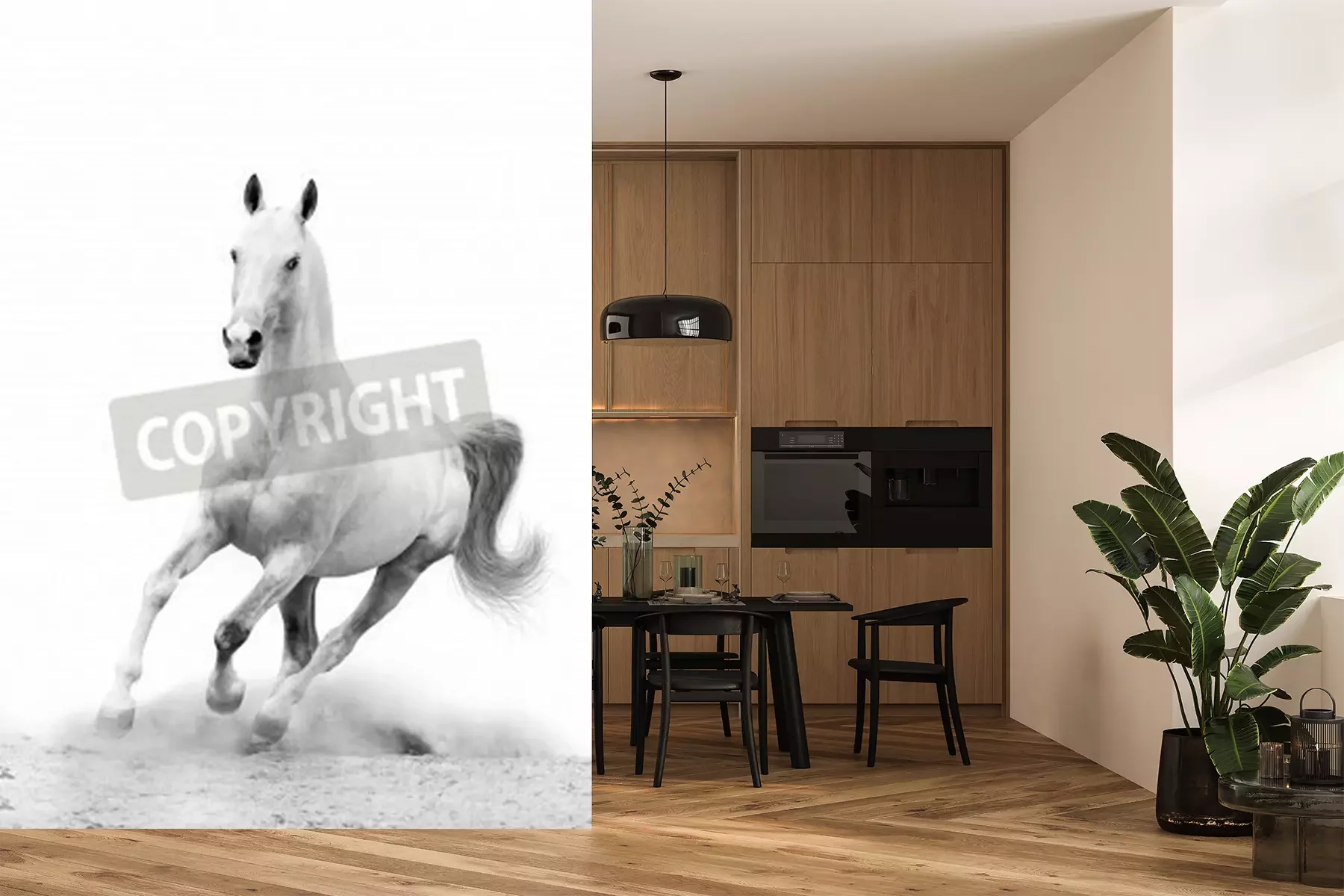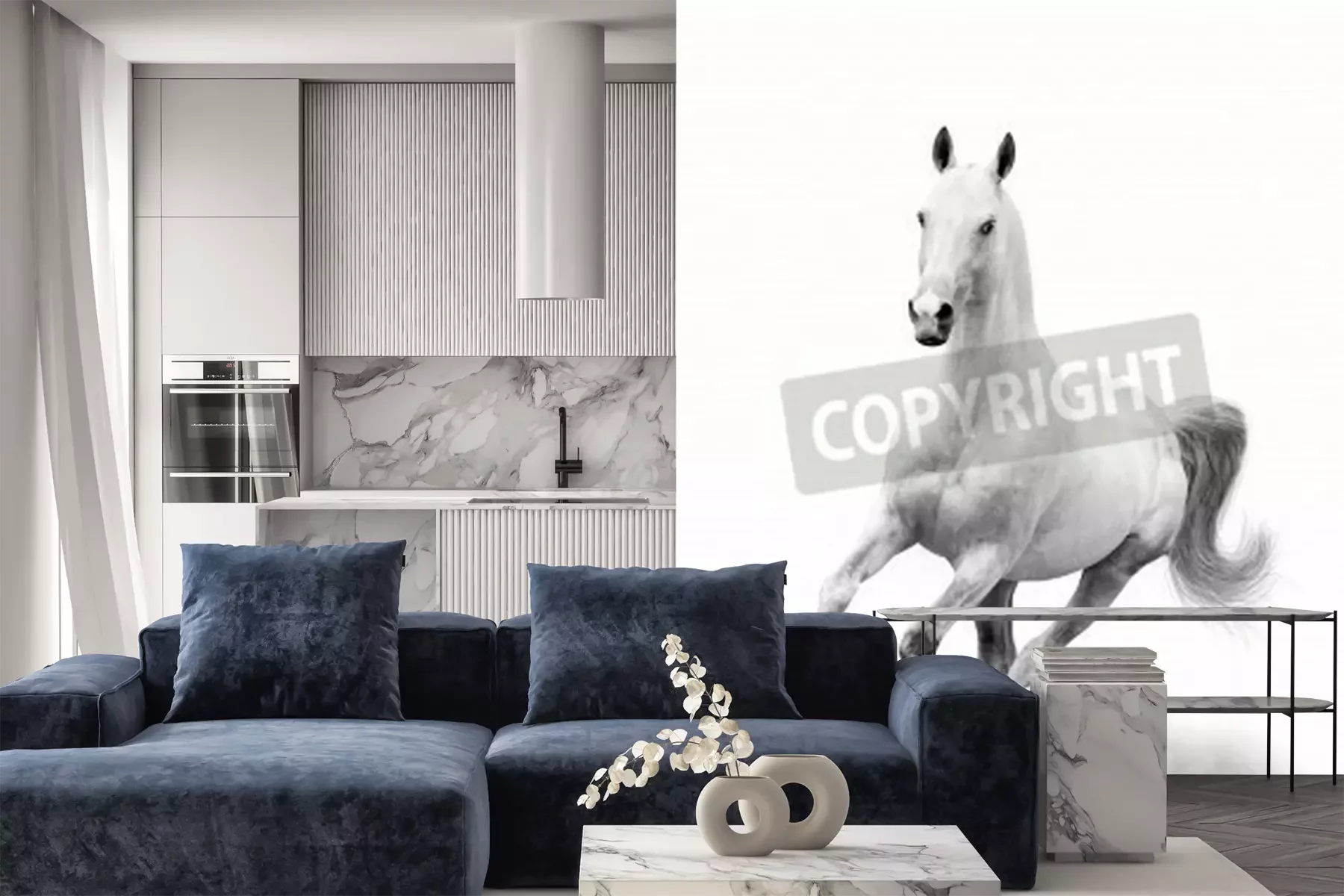 Fototapete Weißes pferd auf einer sandigen straße