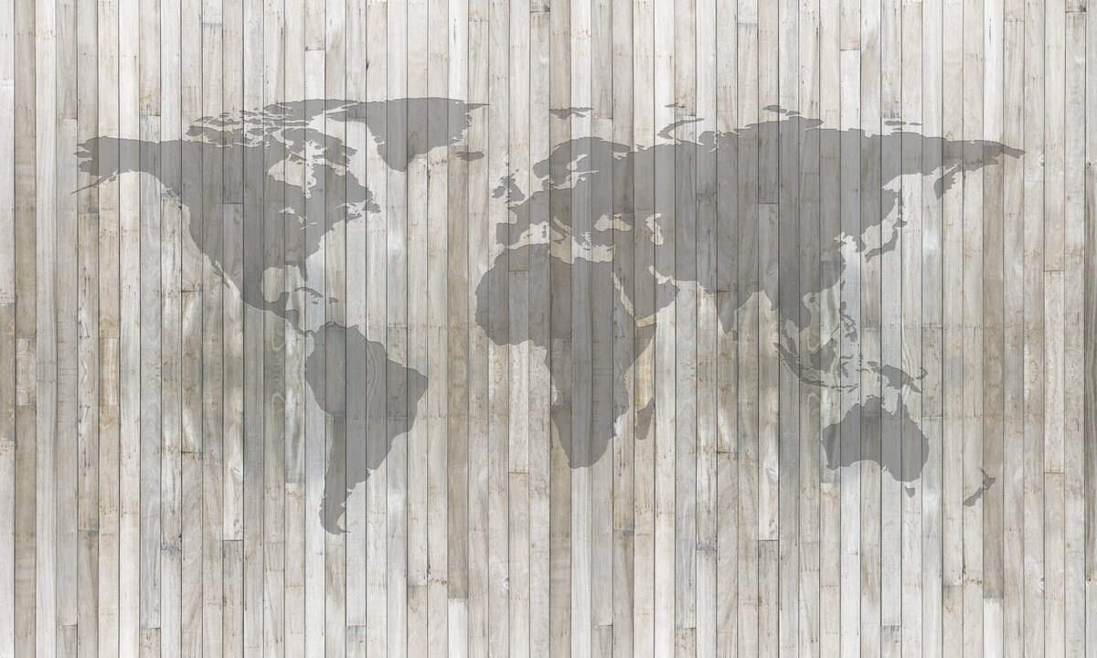 Fototapete: Weltkarte auf einem hölzernen Hintergrund