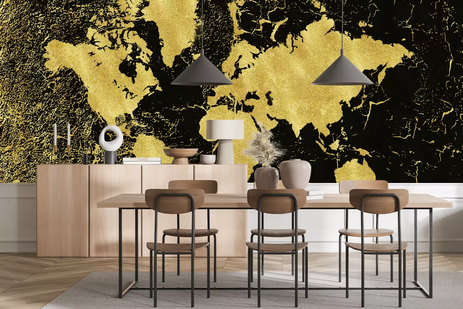 Das Material Standard ist ein hochwertiges Latexmaterial mit einer glatten, matten Oberfläche. Durch den Einsatz von HP-Latex-Drucktechnologie sind die Farben satt, langlebig und UV-beständig. So bleibt das Muster über Jahre hinweg makellos schön. Die verschmutzte Oberfläche dieses Materials kann sanft mit einem trockenen Tuch abgewischt werden. Die maximale Breite einer einzelnen Bahn beträgt 95 cm oder 105 cm – je nach Breite der bestellten Fototapete. Bei Fototapeten mit größeren Abmessungen besteht der Ausdruck aus mehreren gleich großen Tapetenbahnen. Die Fototapete wird auf Stoß angebracht, wodurch die Fugen nahezu unsichtbar sind.