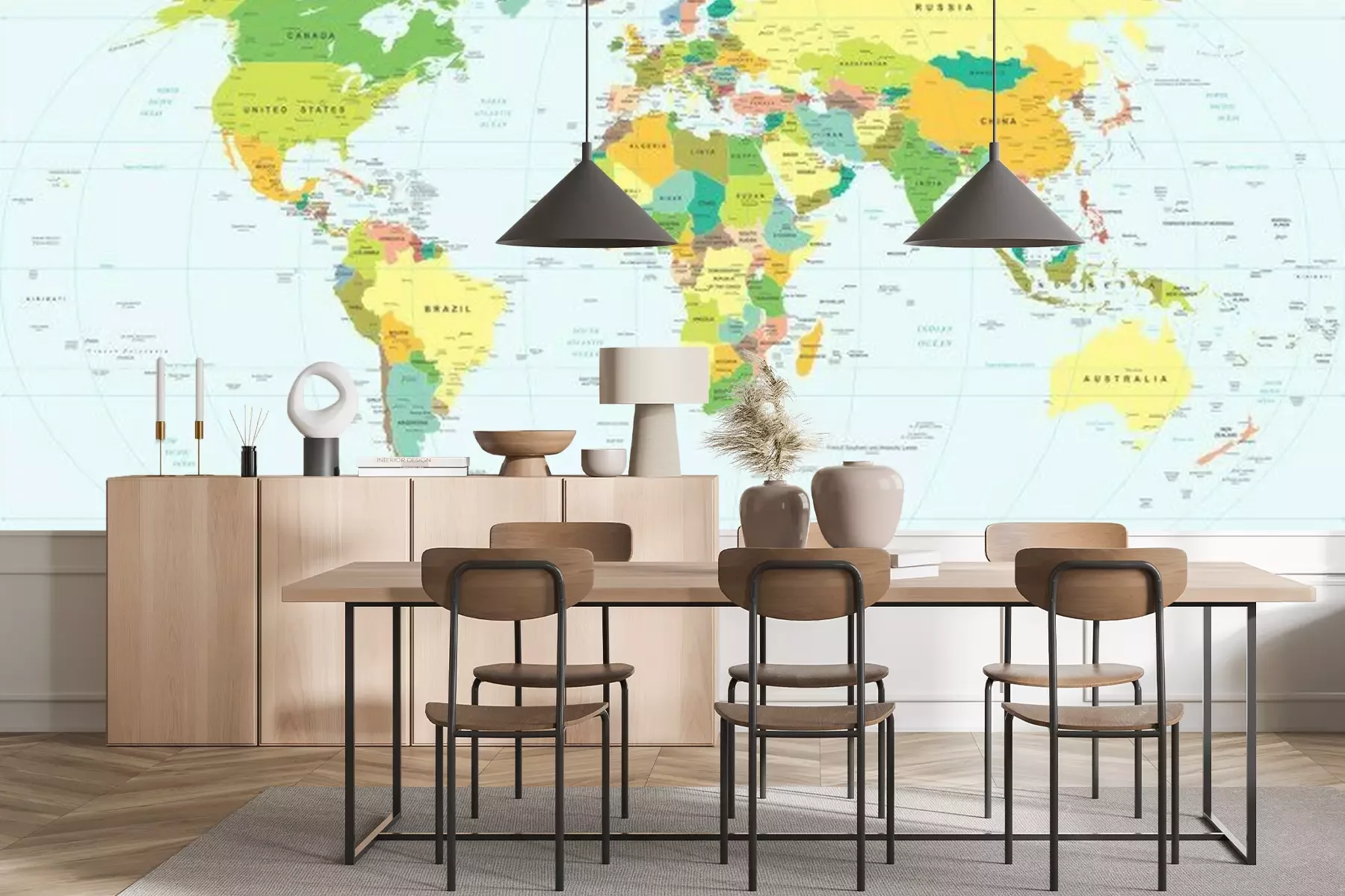 Weltkarte mit Ländernamen in PastellfarbenFototapete