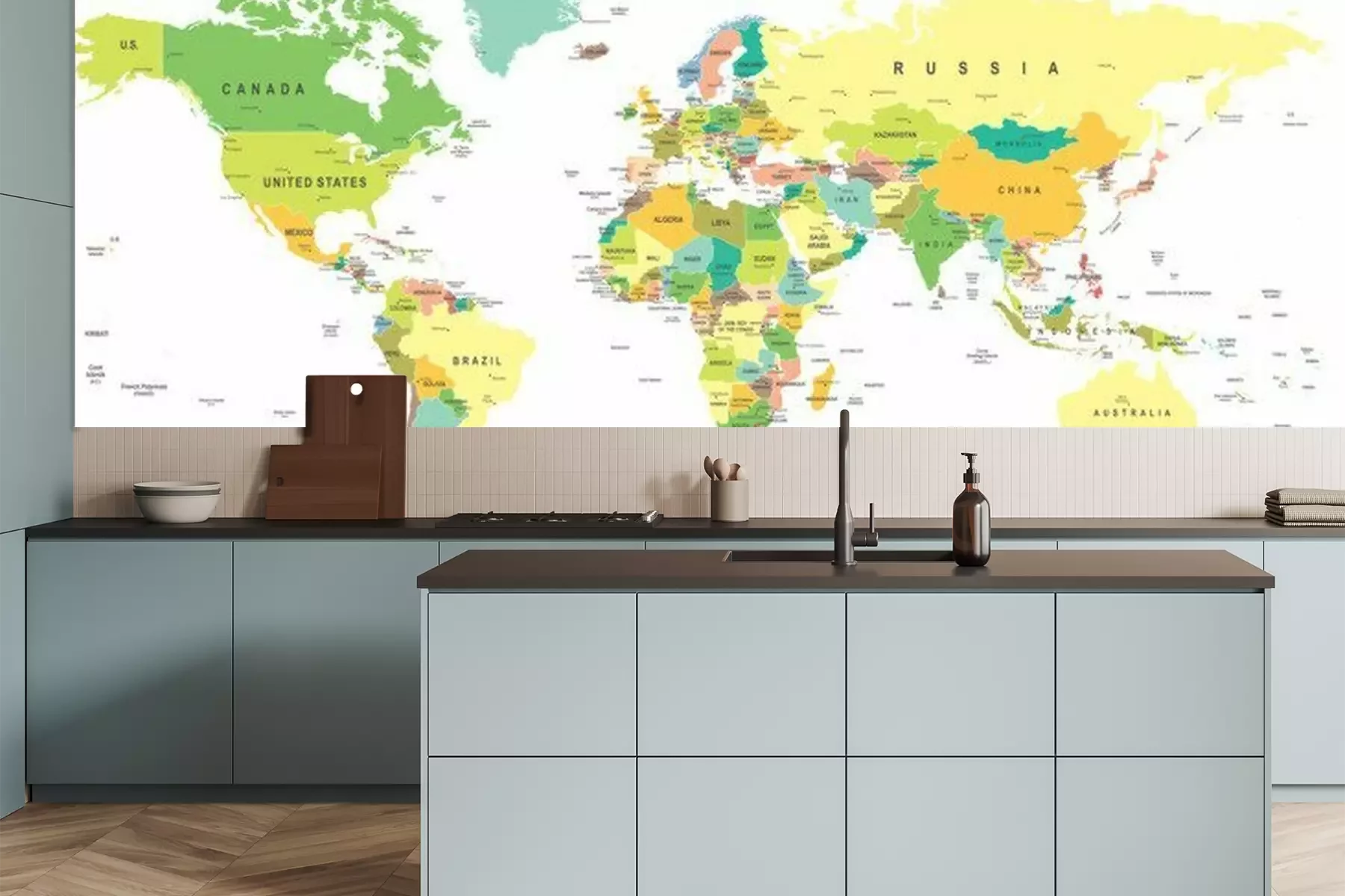 Weltkarte in verschiedenen BlautönenFototapete
