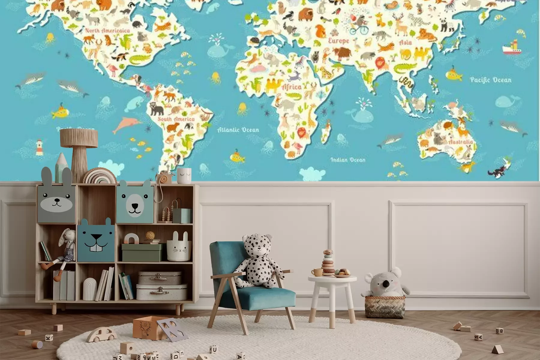 Tiere auf einer KinderweltkarteFototapete
