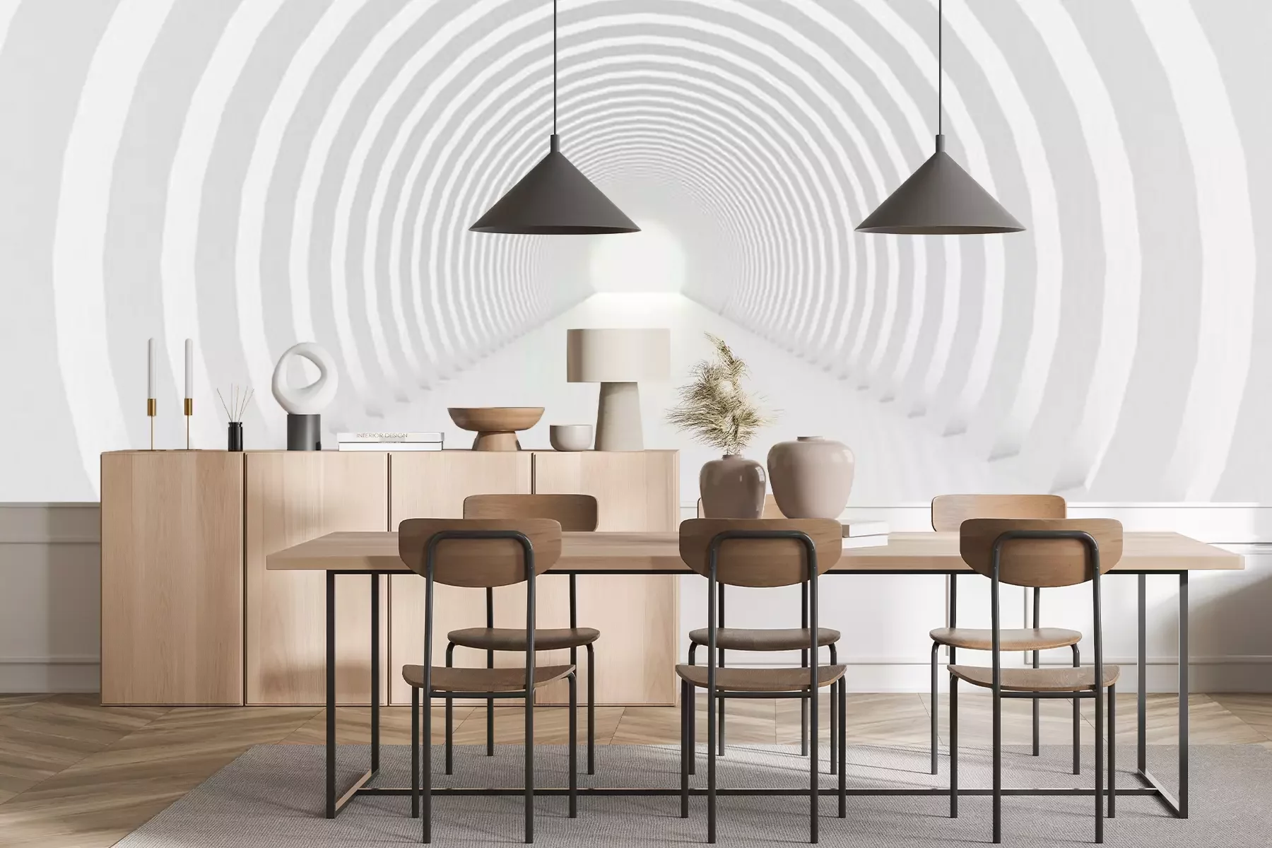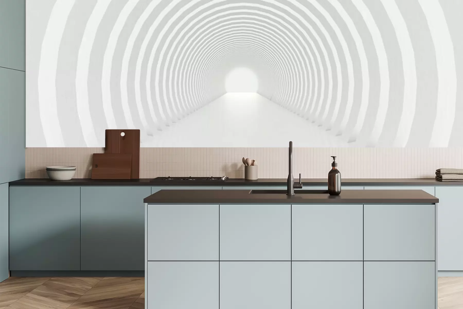 Fototapete White tunnel and light. 3d illustration, 3d rendering.
