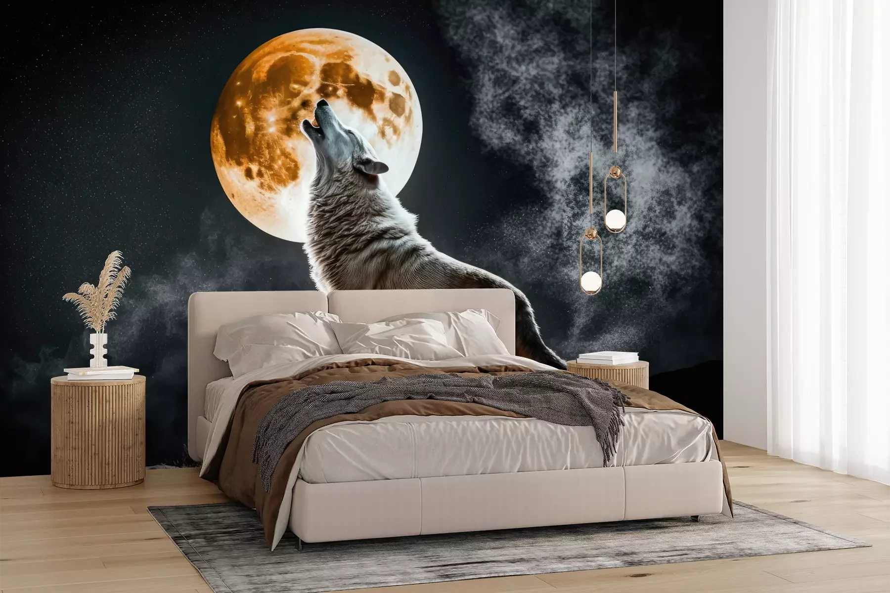 Das Material Premium+ besteht aus einer strukturierten Vinyl-Oberschicht und einem Trägermaterial (Vlies) mit einer Grammatur von 255 g/m², das kleine Unebenheiten der Wand zuverlässig kaschiert. Die feine Sandstruktur verleiht der Oberfläche eine luxuriöse Haptik, während das halbmatte Finish die Tiefe der Farben betont. Das Material ist dampfdurchlässig – so kann diese Fototapete auch in Küchen und Badezimmern eingesetzt werden. Die maximale Breite einer Tapetenbahn beträgt 100 cm. Bei größeren Abmessungen besteht die Fototapete aus mehreren gleich großen Bahnen. Der Kleber wird direkt auf die Wand aufgetragen, und die Fototapete wird auf Stoß angebracht, was für einen ästhetischen Effekt ohne sichtbare Fugen sorgt. Die Oberfläche ist pflegeleicht und kann bei Bedarf sanft mit einem feuchten Tuch abgewischt werden.