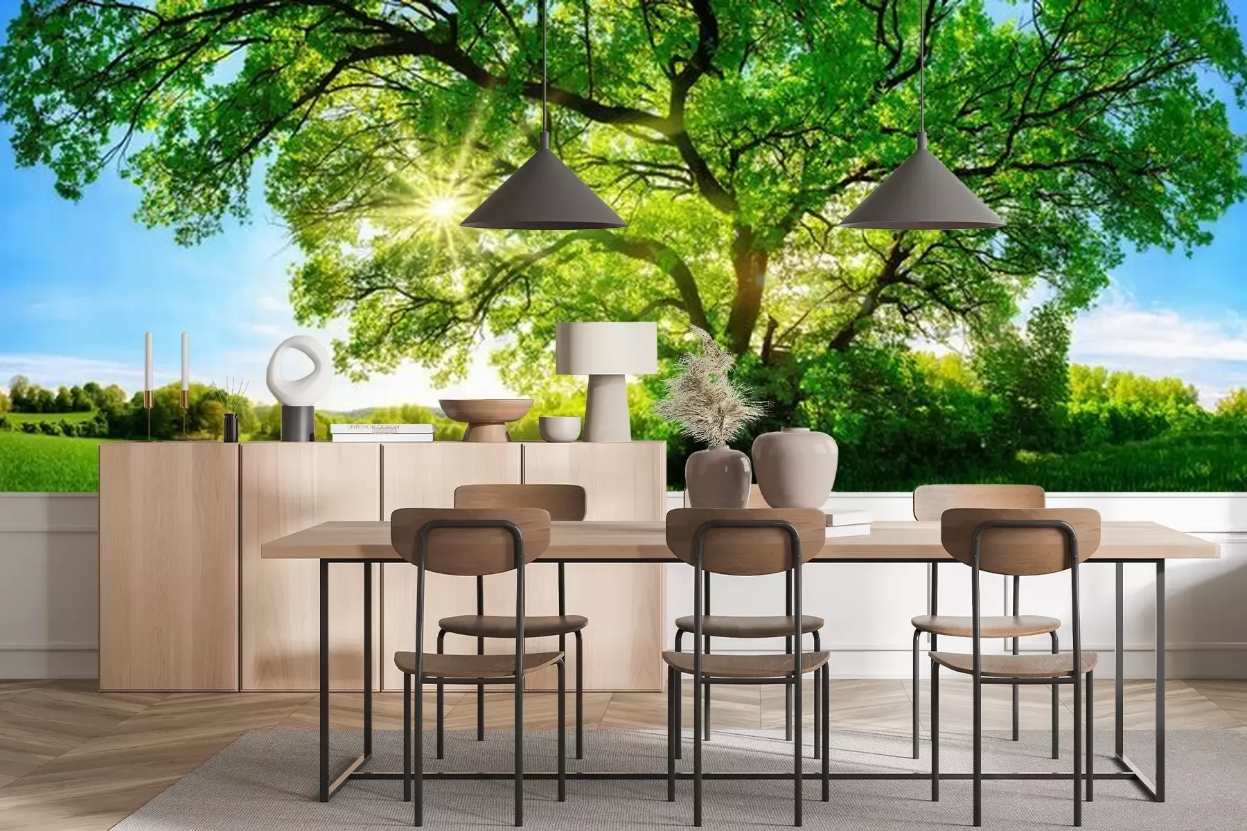 Das Material Premium+ besteht aus einer strukturierten Vinyl-Oberschicht und einem Trägermaterial (Vlies) mit einer Grammatur von 255 g/m², das kleine Unebenheiten der Wand zuverlässig kaschiert. Die feine Sandstruktur verleiht der Oberfläche eine luxuriöse Haptik, während das halbmatte Finish die Tiefe der Farben betont. Das Material ist dampfdurchlässig – so kann diese Fototapete auch in Küchen und Badezimmern eingesetzt werden. Die maximale Breite einer Tapetenbahn beträgt 100 cm. Bei größeren Abmessungen besteht die Fototapete aus mehreren gleich großen Bahnen. Der Kleber wird direkt auf die Wand aufgetragen, und die Fototapete wird auf Stoß angebracht, was für einen ästhetischen Effekt ohne sichtbare Fugen sorgt. Die Oberfläche ist pflegeleicht und kann bei Bedarf sanft mit einem feuchten Tuch abgewischt werden.