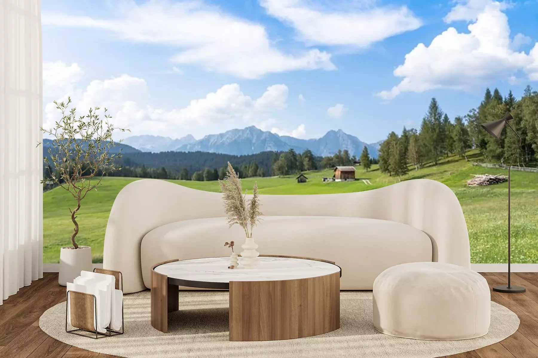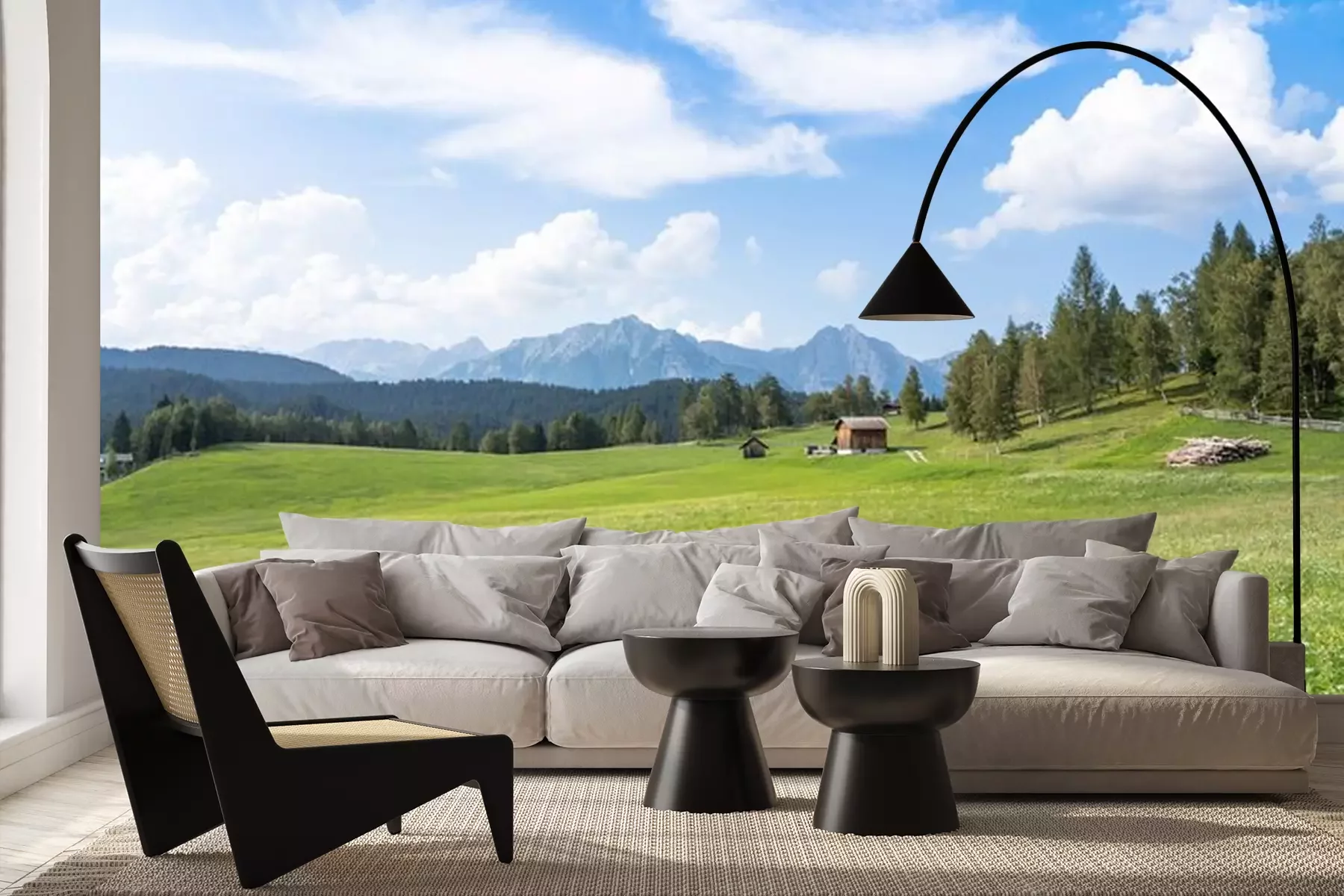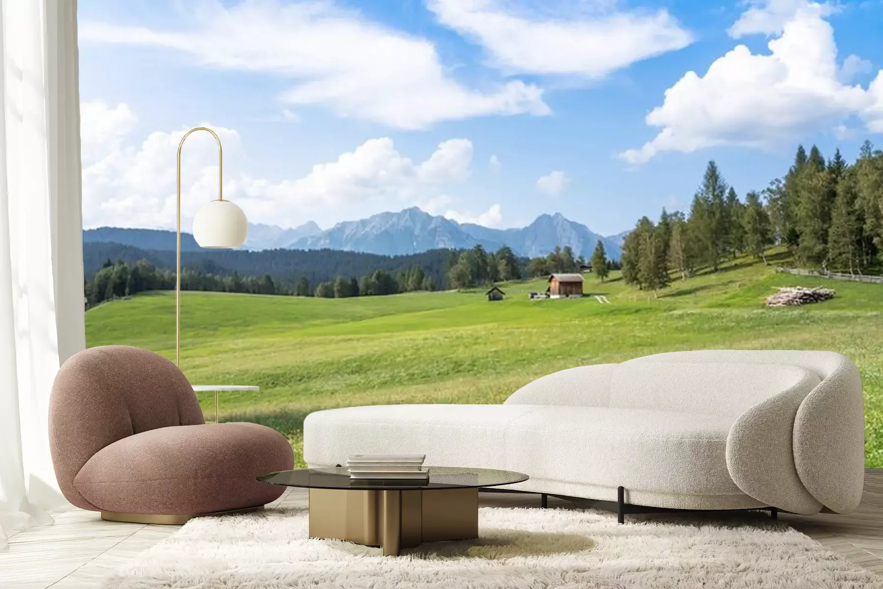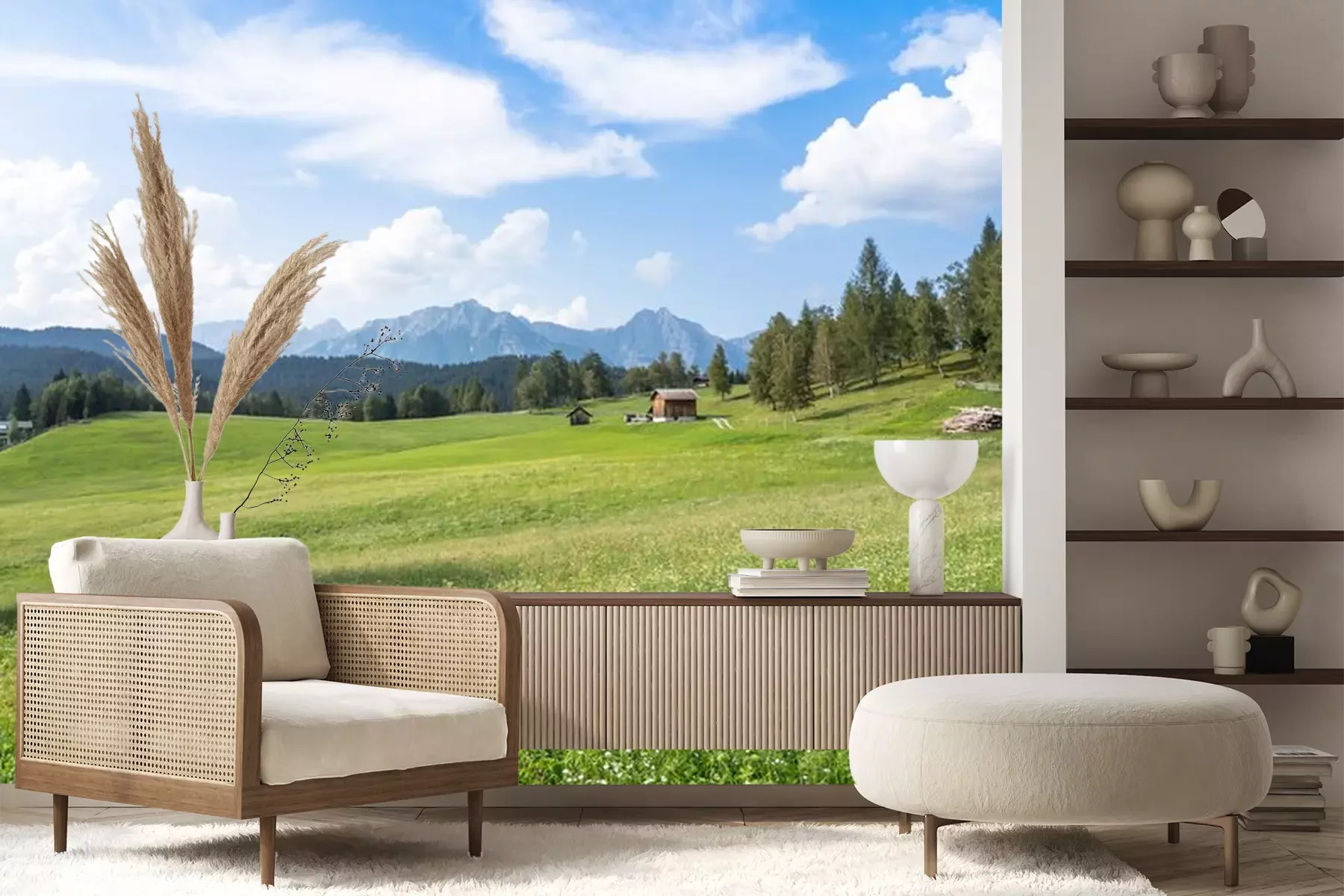 Fototapete Wiese vor dem Hintergrund der Alpen