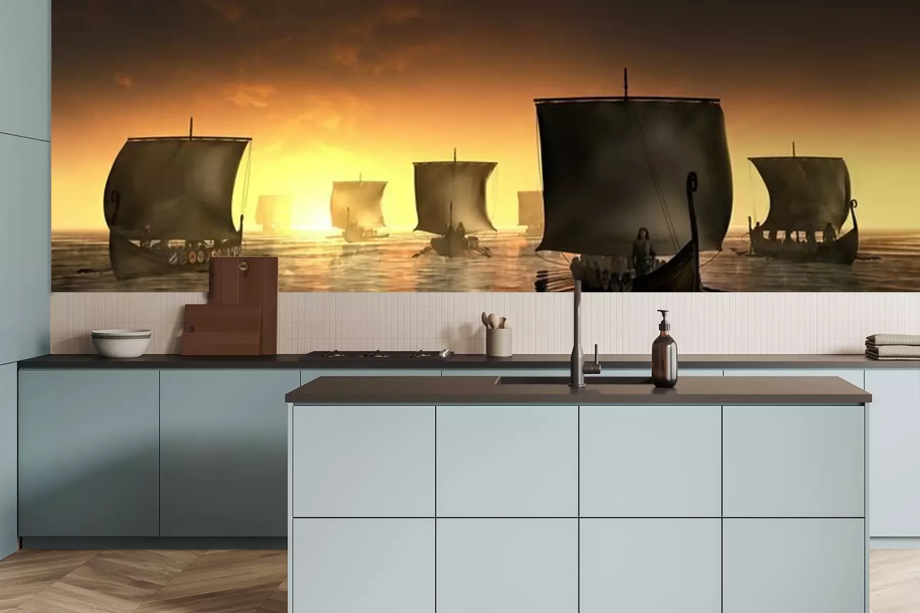 Schiffe in der untergehenden Sonne