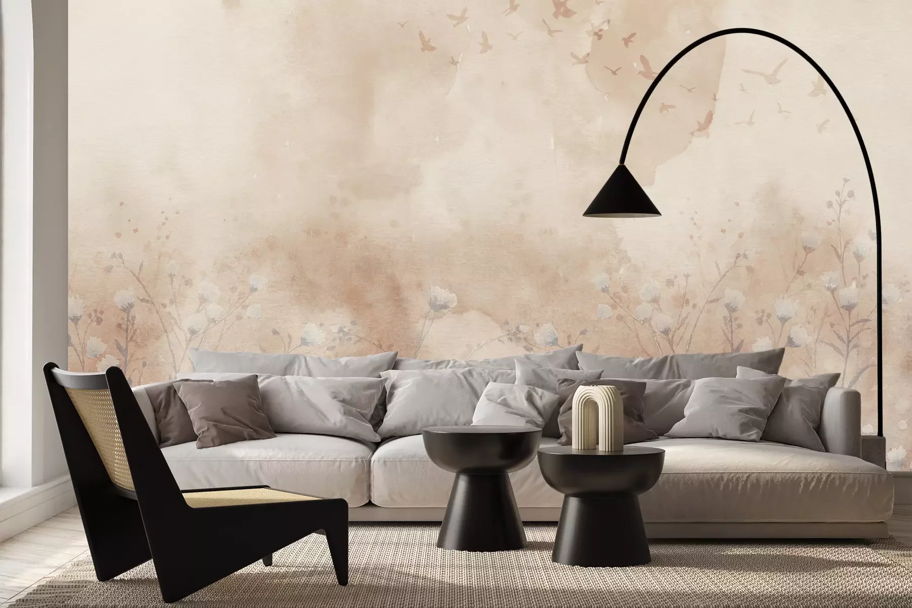 Das Material Premium+ besteht aus einer strukturierten Vinyl-Oberschicht und einem Trägermaterial (Vlies) mit einer Grammatur von 255 g/m², das kleine Unebenheiten der Wand zuverlässig kaschiert. Die feine Sandstruktur verleiht der Oberfläche eine luxuriöse Haptik, während das halbmatte Finish die Tiefe der Farben betont. Das Material ist dampfdurchlässig – so kann diese Fototapete auch in Küchen und Badezimmern eingesetzt werden. Die maximale Breite einer Tapetenbahn beträgt 100 cm. Bei größeren Abmessungen besteht die Fototapete aus mehreren gleich großen Bahnen. Der Kleber wird direkt auf die Wand aufgetragen, und die Fototapete wird auf Stoß angebracht, was für einen ästhetischen Effekt ohne sichtbare Fugen sorgt. Die Oberfläche ist pflegeleicht und kann bei Bedarf sanft mit einem feuchten Tuch abgewischt werden.