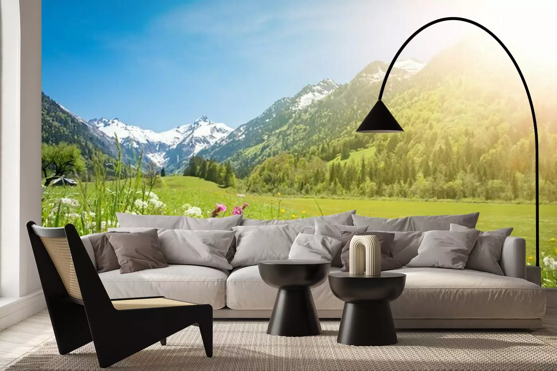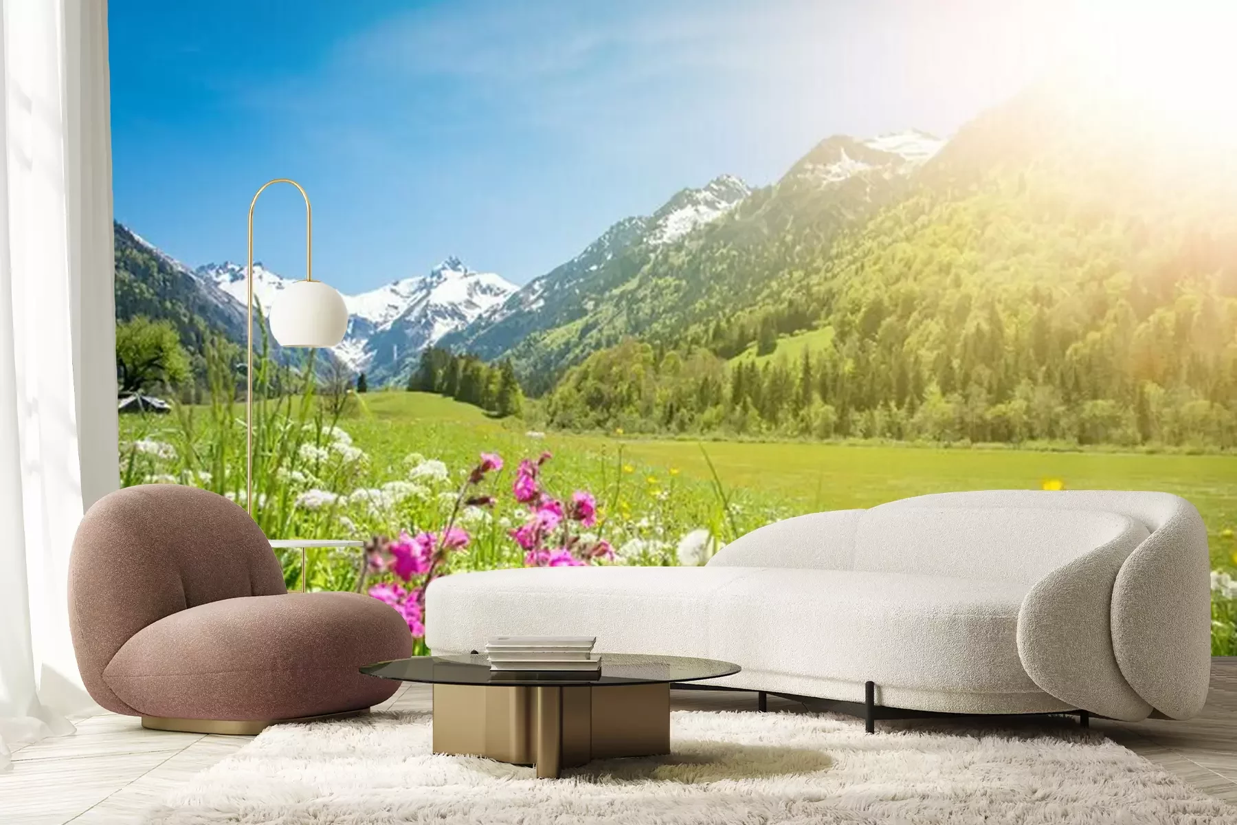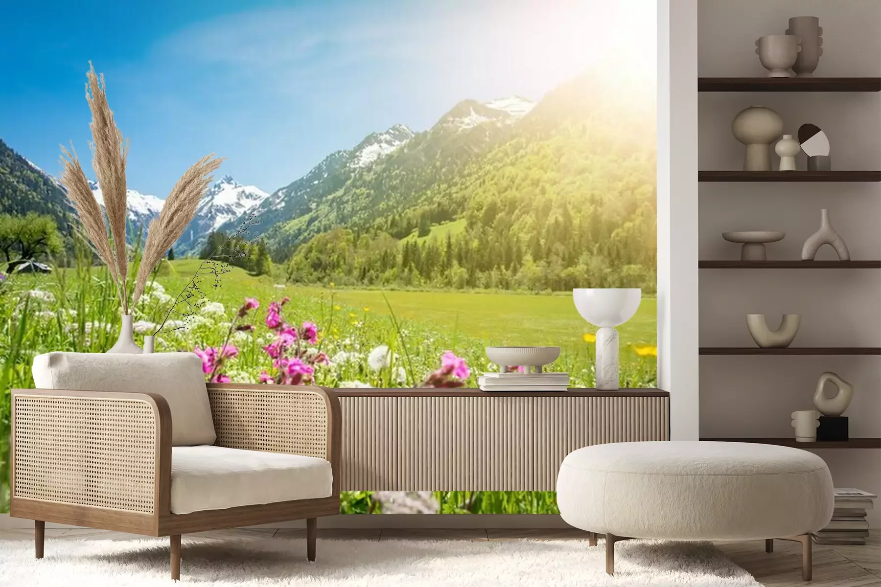 Fototapete Wildblumen vor dem Hintergrund der Berge