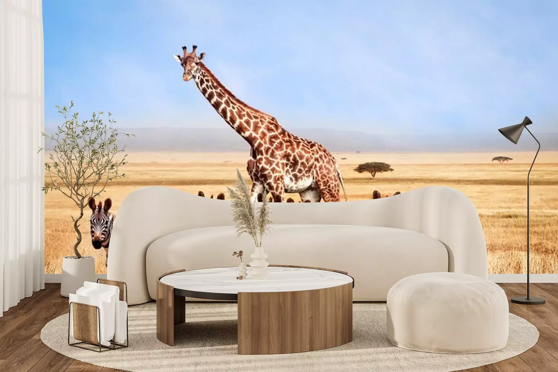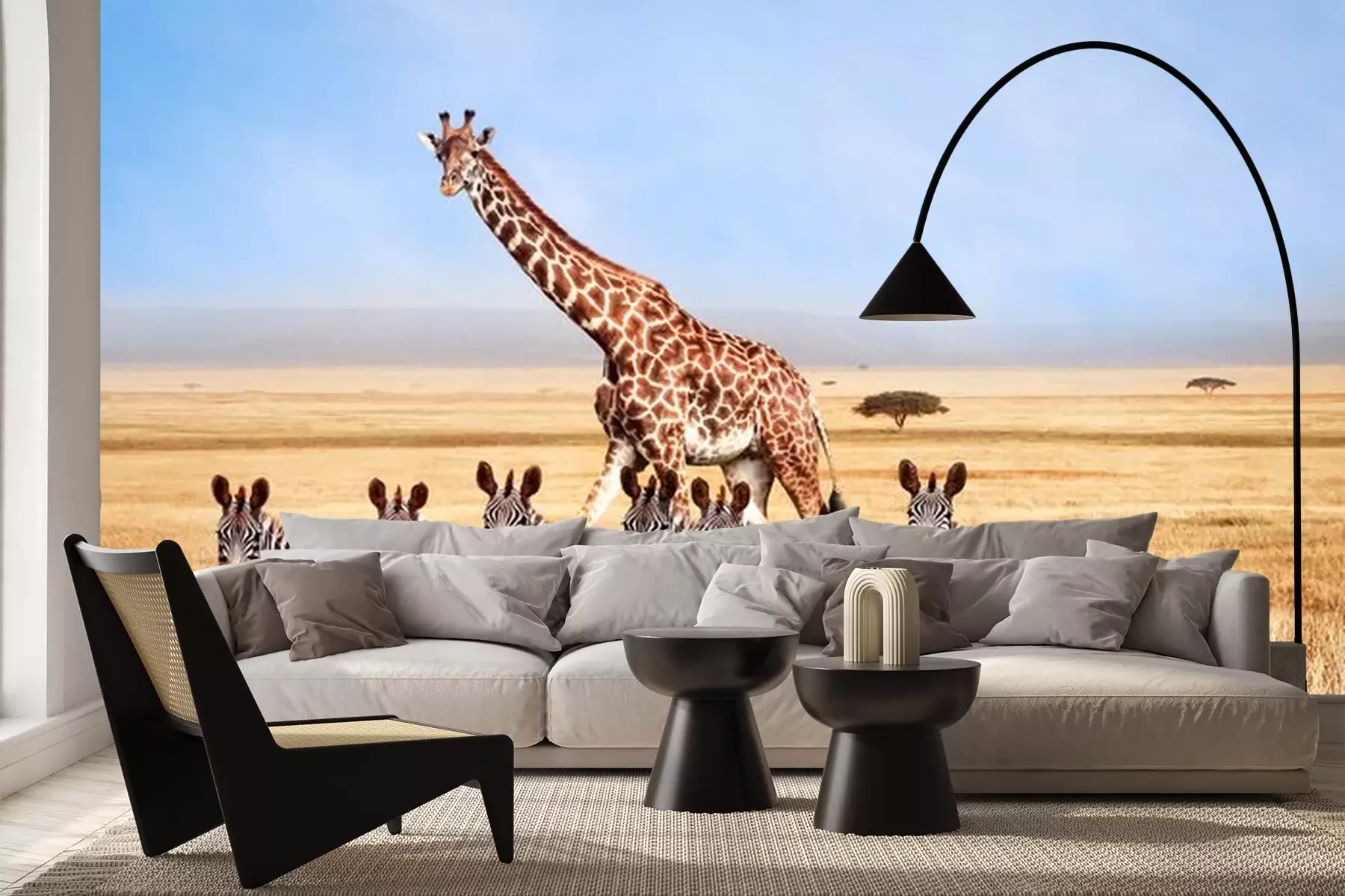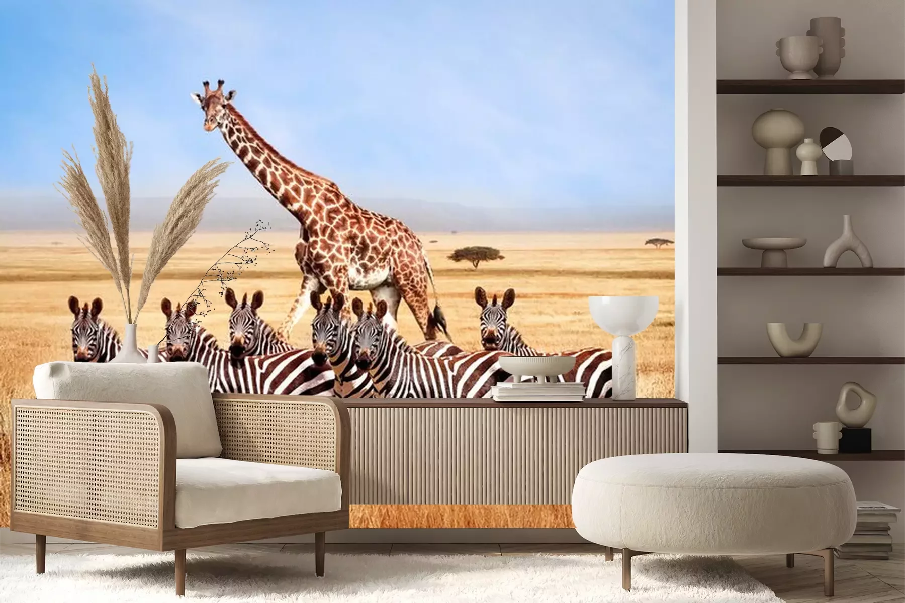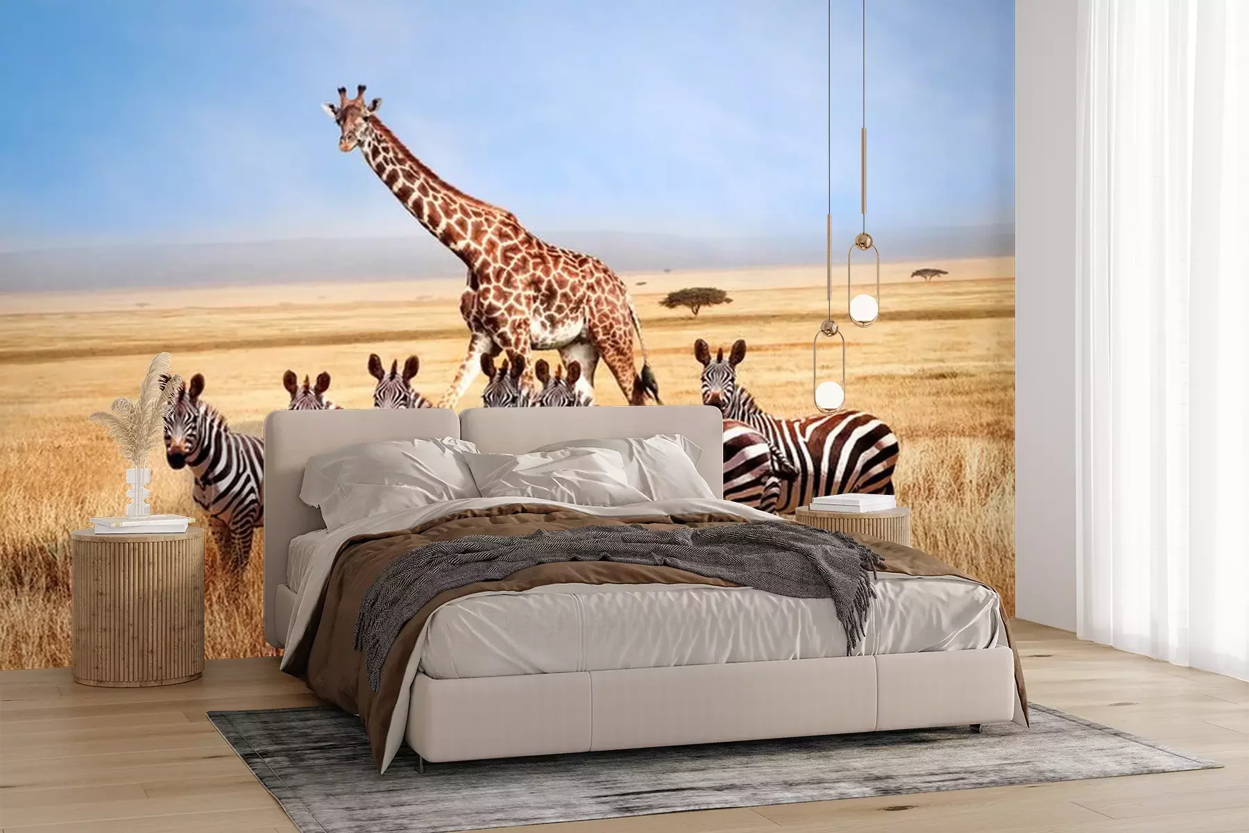 Fototapete Wilde Giraffen und Zebras in Tansania