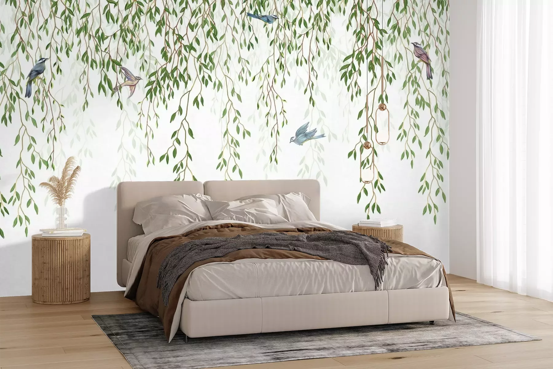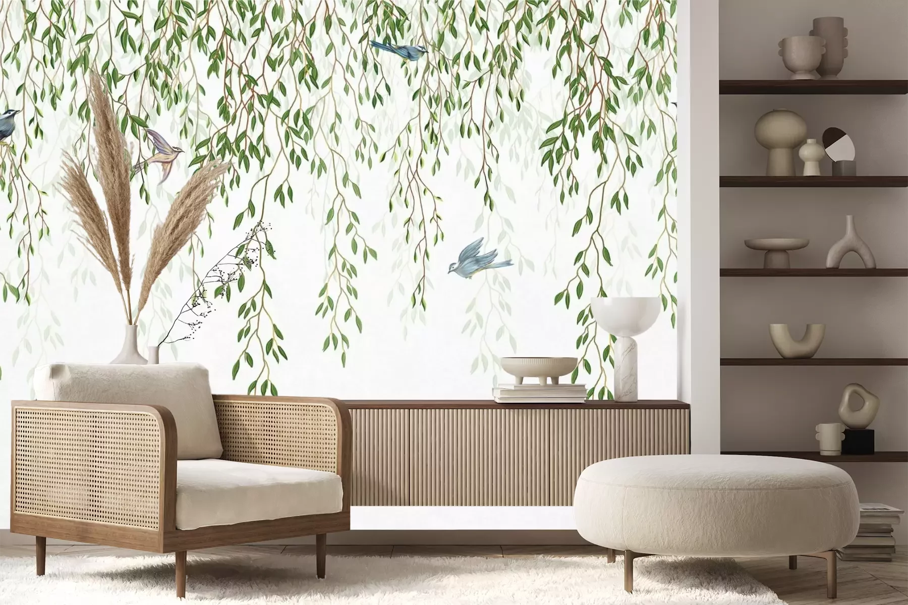 Tropische Blätter in gedeckten GrüntönenFototapete