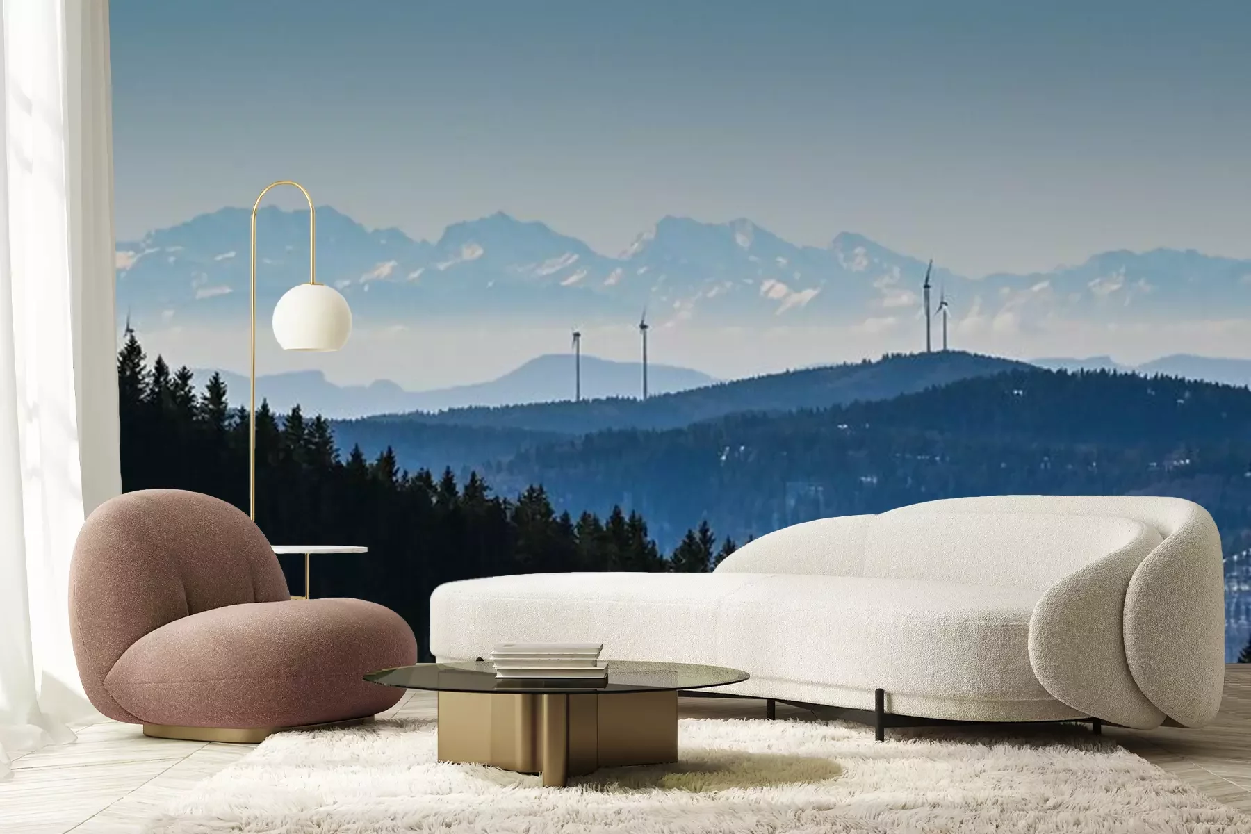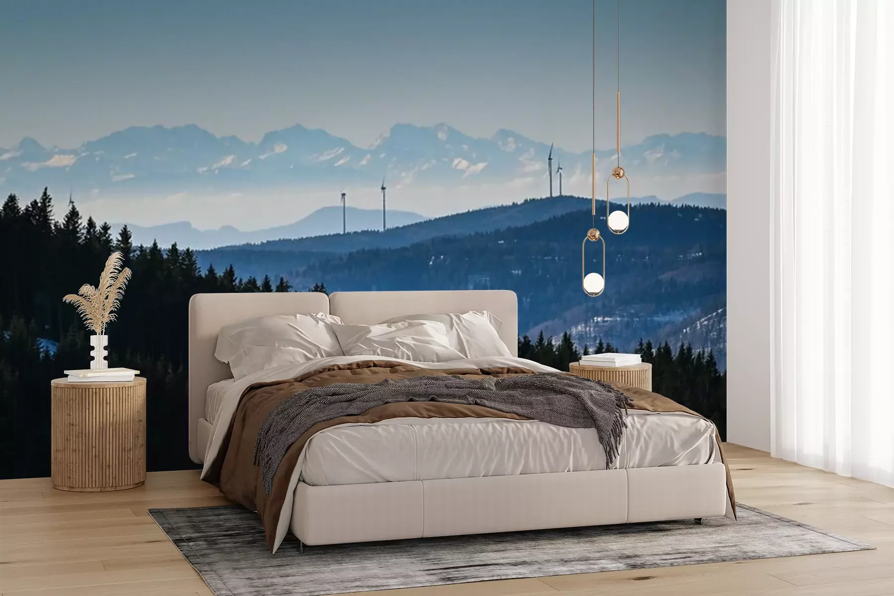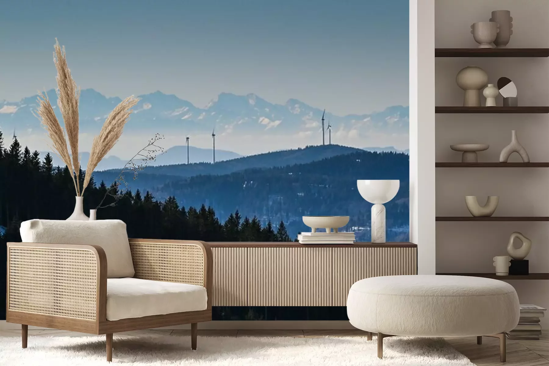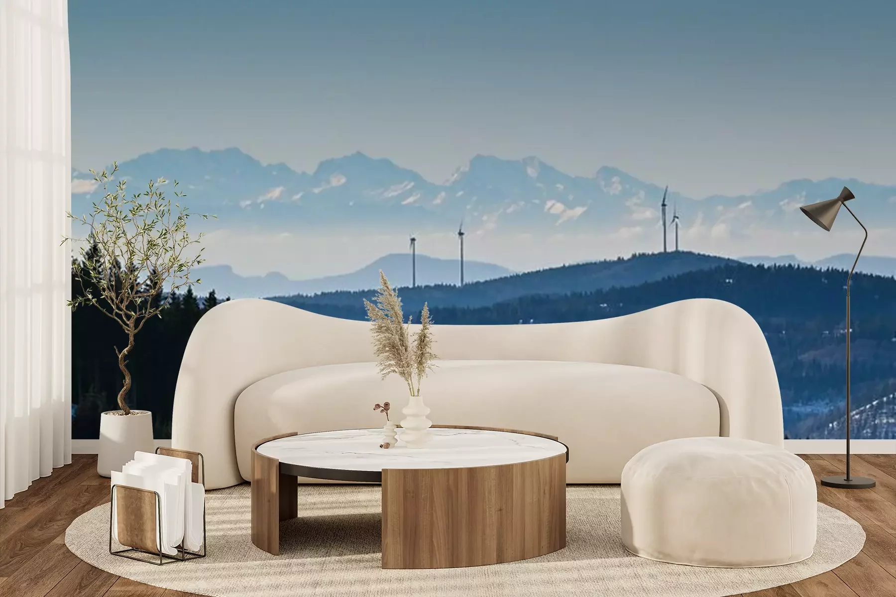 Fototapete Windkraft im Südschwarzwald mit Alpenpanorama