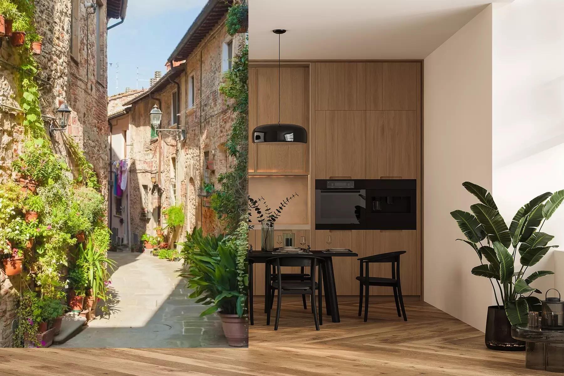 Das Material Premium+ besteht aus einer strukturierten Vinyl-Oberschicht und einem Trägermaterial (Vlies) mit einer Grammatur von 255 g/m², das kleine Unebenheiten der Wand zuverlässig kaschiert. Die feine Sandstruktur verleiht der Oberfläche eine luxuriöse Haptik, während das halbmatte Finish die Tiefe der Farben betont. Das Material ist dampfdurchlässig – so kann diese Fototapete auch in Küchen und Badezimmern eingesetzt werden. Die maximale Breite einer Tapetenbahn beträgt 100 cm. Bei größeren Abmessungen besteht die Fototapete aus mehreren gleich großen Bahnen. Der Kleber wird direkt auf die Wand aufgetragen, und die Fototapete wird auf Stoß angebracht, was für einen ästhetischen Effekt ohne sichtbare Fugen sorgt. Die Oberfläche ist pflegeleicht und kann bei Bedarf sanft mit einem feuchten Tuch abgewischt werden.