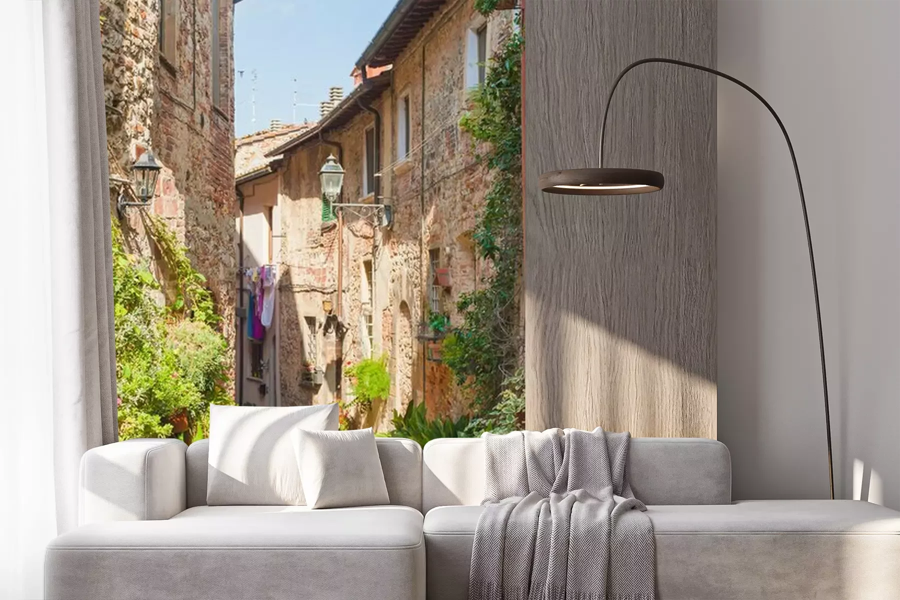 Sonnige Gasse in italienischem DorfProblemlose Lieferung durch vertrauenswürdige Spediteure
