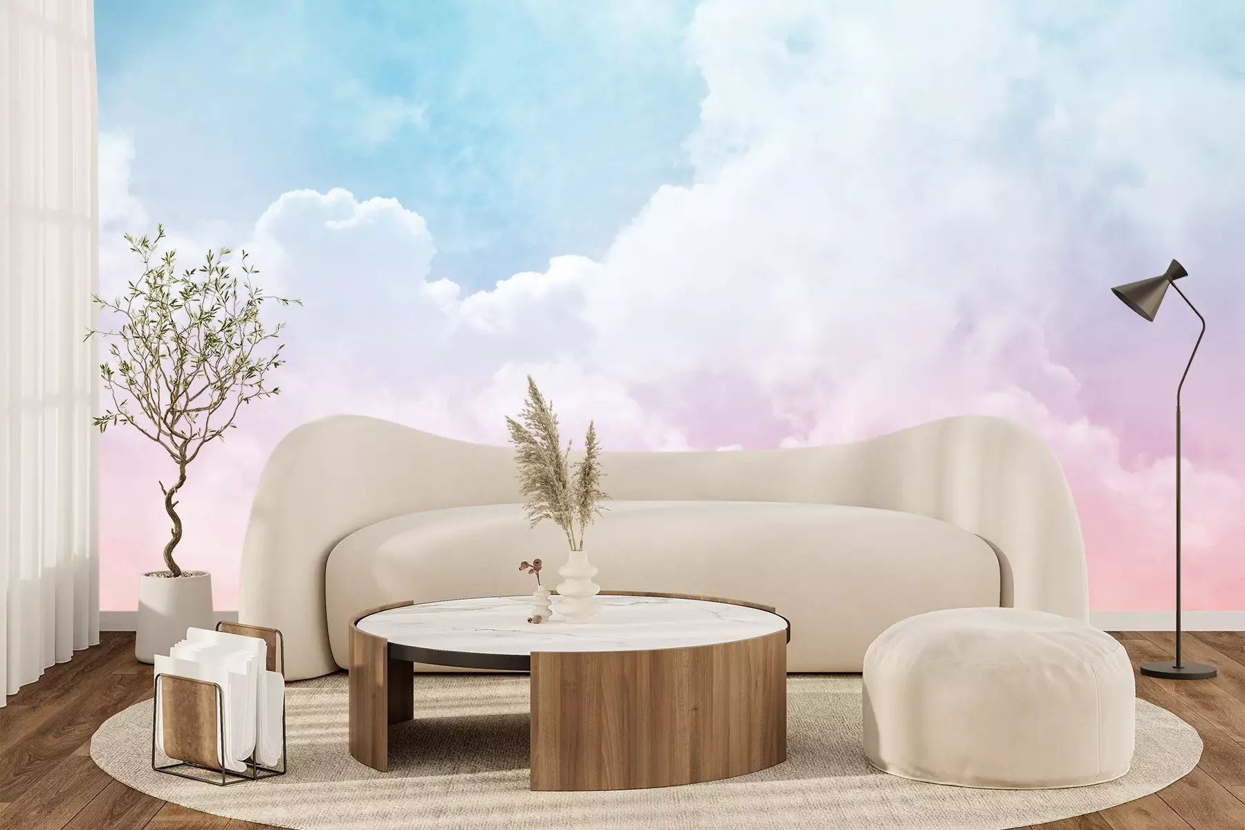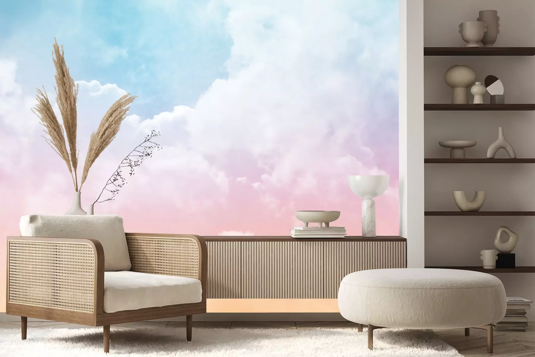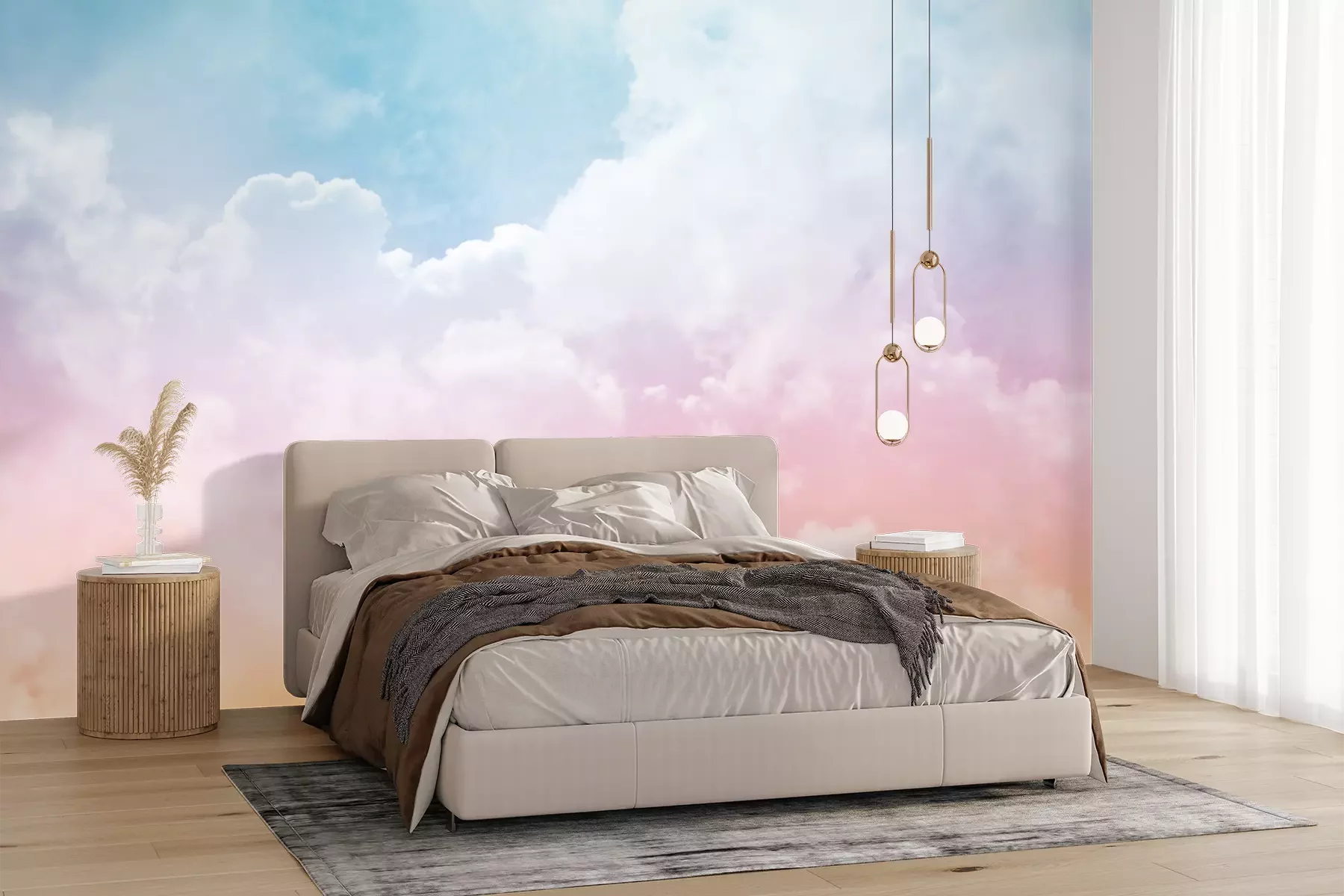 *Der Rabatt gilt nicht für Klebstoffe, Zubehör und Geschenkkarten.Eine Pastell–Fototapete ist eine hervorragende Möglichkeit, einen gemütlichen Raum zu schaffen, der die Sinne beruhigt – ideal zum Entspannen und um dem Trubel der Stadt zu entfliehen. Die sanfte, heitere Farbpalette bringt eine positive Atmosphäre ins Interieur und hellt gleichzeitig dunklere Räume auf, in die wenig natürliches Licht fällt. Wir haben einige Gestaltungsvorschläge für diese Fototapete. Wolken in Pastell-Regenbogenfarben sind die perfekte Wahl fürs Kinderzimmer – egal, ob für ein Mädchenzimmer oder ein Zimmer für Geschwister. Diese Pastell-Fototapete erdrückt das Raumdesign nicht, sondern dient als dezenter Hintergrund für Spielen, Lernen und Entspannen. Dieses Motiv ist auch eine großartige Wahl für das Jugendzimmer. Eine romantische Fototapete – Himmel, Wolken und zarte Regenbogenfarben – sorgt für eine leichte Raumgestaltung mit zeitlosem Charme. Die hohe Qualität der Materialien, aus denen unsere Wanddekorationen bestehen, ermöglicht einen bedenkenlosen Einsatz selbst im Badezimmer, auch an Wänden, an denen sich Badewanne oder Waschbecken befinden. In diesem Fall empfehlen wir eine laminierte Fototapete. Wolken, die auf eine schützende Folienoberfläche gedruckt sind, behalten auch in feuchten Räumen ihr makelloses Aussehen. Sie sind somit die ideale Wahl für alle, die entspannende Bäder lieben. Das sanfte, beruhigende Motiv schafft den perfekten Hintergrund, um nach einem langen Tag abzuschalten. Und wenn es um Entspannung geht, darf auch die stimmungsvolle Gestaltung des Schlafzimmers nicht unerwähnt bleiben – hier passt perfekt unsere Fototapete. Himmel mit Wolken im regenbogenfarbenen Licht und die Leichtigkeit der Komposition schaffen eine wahre Oase der Ruhe. Ein solches Design ist eine wunderbare Ergänzung für romantische, minimalistische oder Boho-Interieurs und bringt Harmonie und Charme in den Raum.