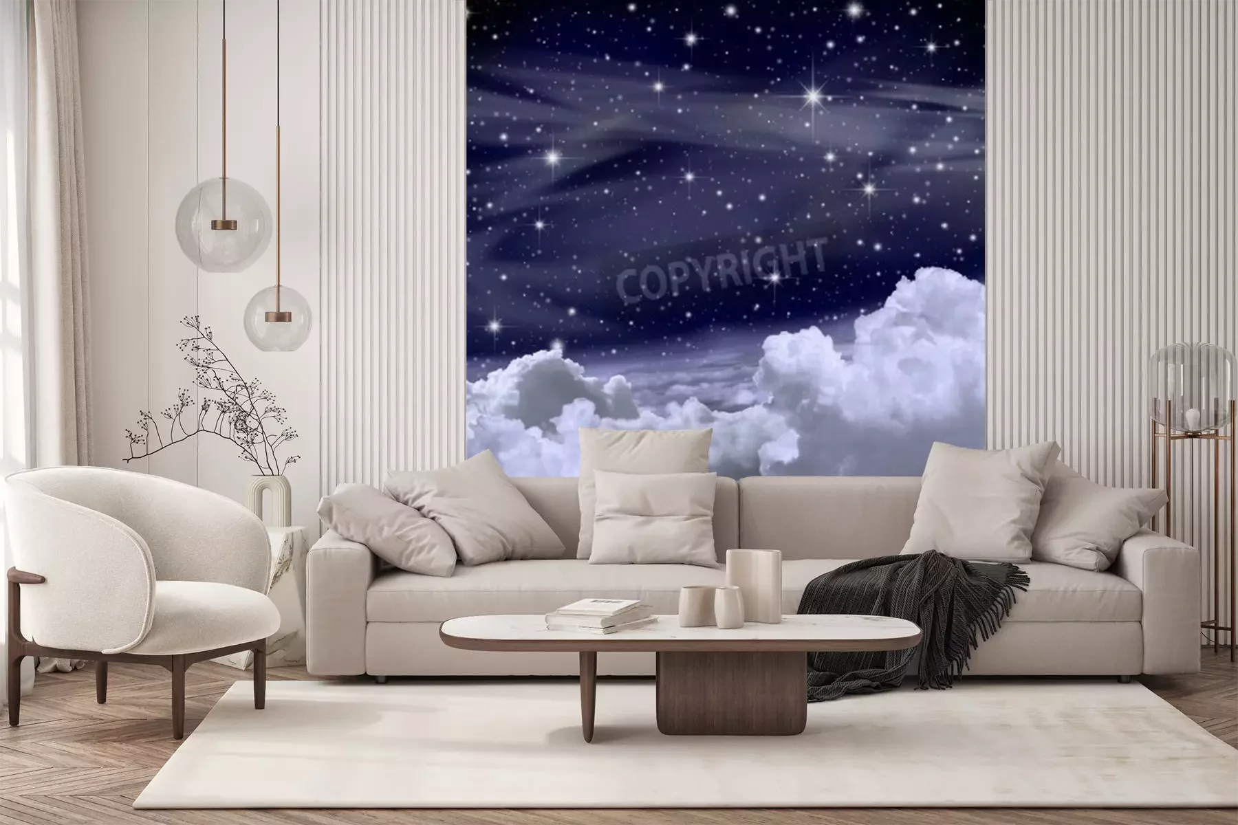 Das Material Standard ist ein hochwertiges Latexmaterial mit einer glatten, matten Oberfläche. Durch den Einsatz von HP-Latex-Drucktechnologie sind die Farben satt, langlebig und UV-beständig. So bleibt das Muster über Jahre hinweg makellos schön. Die verschmutzte Oberfläche dieses Materials kann sanft mit einem trockenen Tuch abgewischt werden. Die maximale Breite einer einzelnen Bahn beträgt 95 cm oder 105 cm – je nach Breite der bestellten Fototapete. Bei Fototapeten mit größeren Abmessungen besteht der Ausdruck aus mehreren gleich großen Tapetenbahnen. Die Fototapete wird auf Stoß angebracht, wodurch die Fugen nahezu unsichtbar sind.