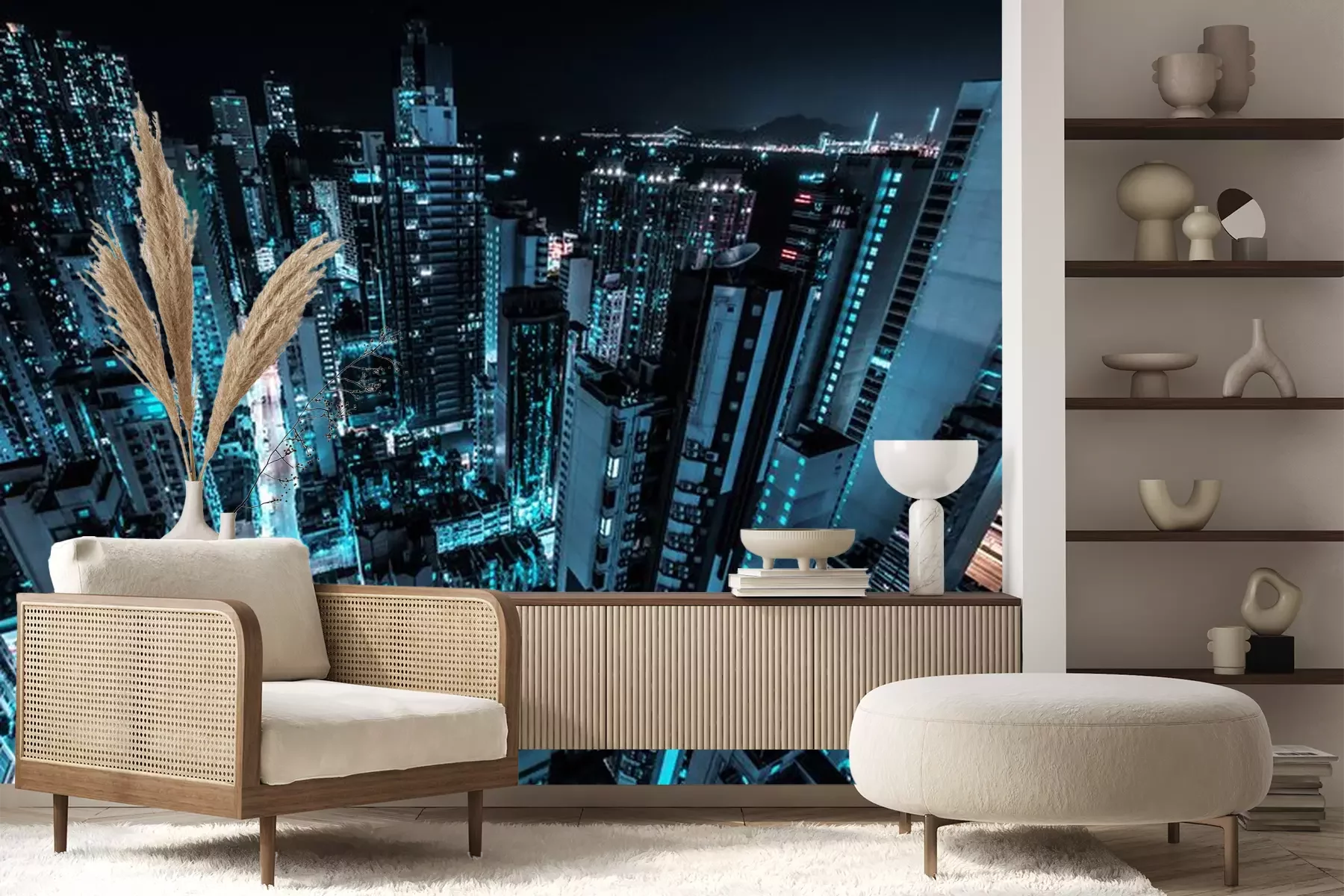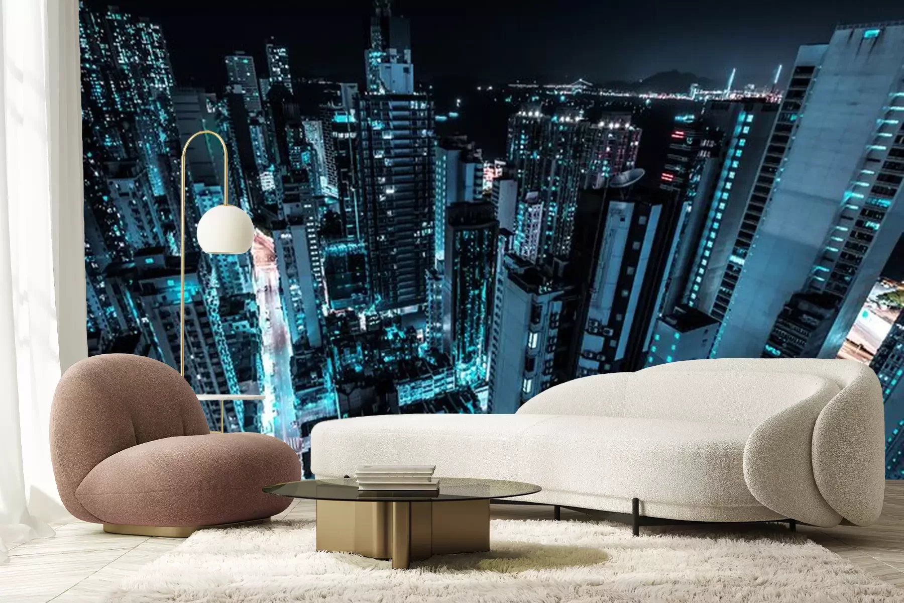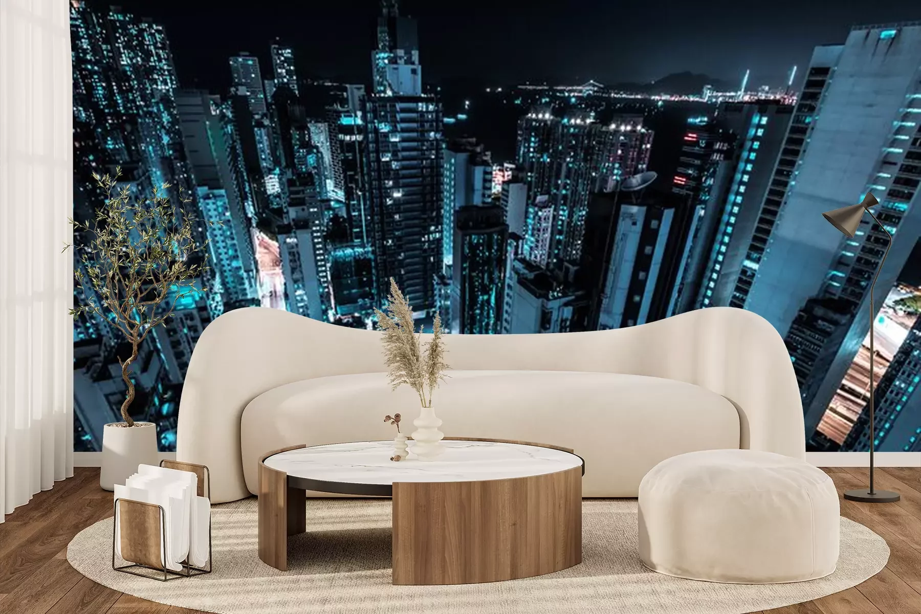 Fototapete Wolkenkratzer bei Nacht in Hongkong