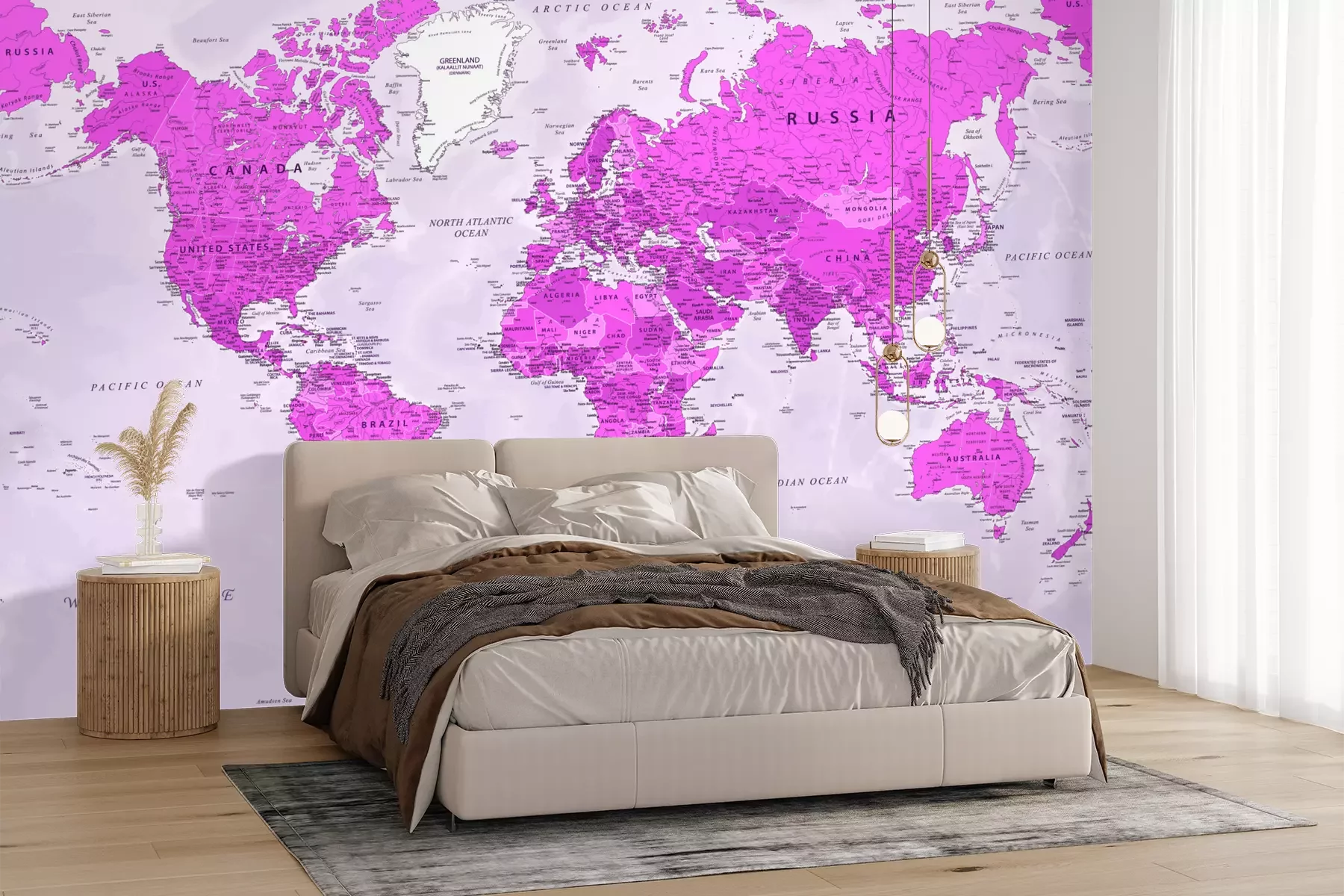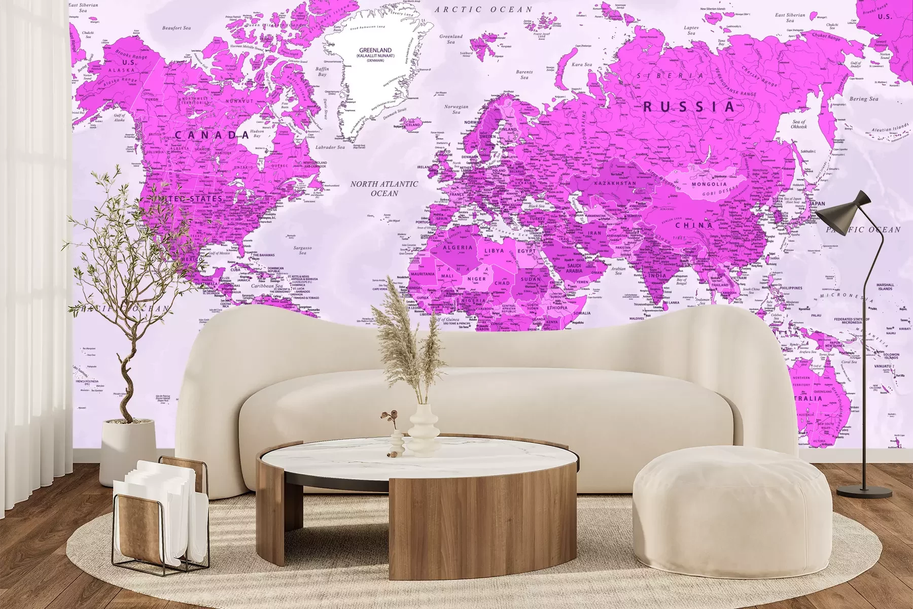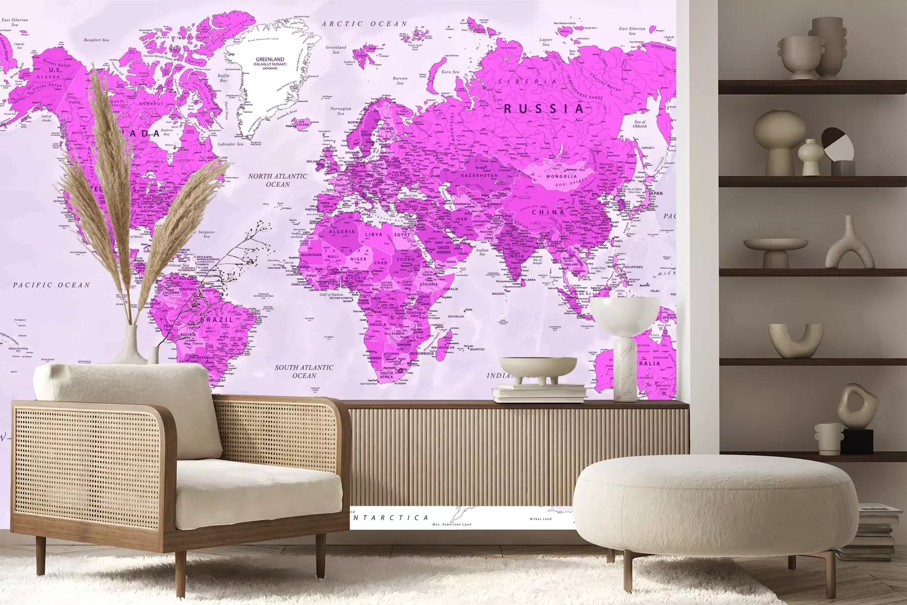 Weltkarte mit Ländernamen in PastellfarbenFototapete